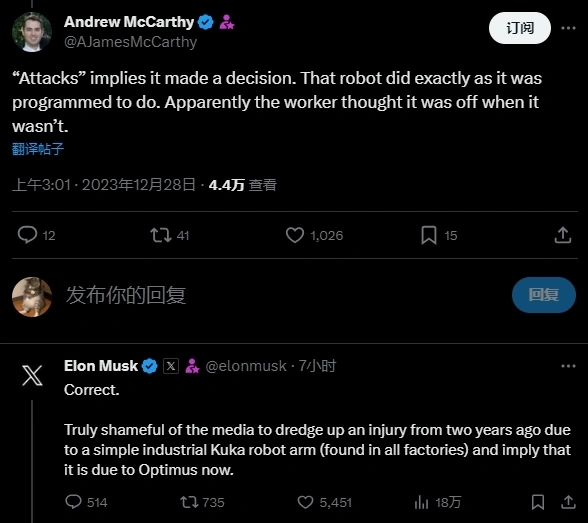 (观察者网讯)据英国《逐日邮报》12月26日报道,两年前,特斯拉位于美国得州奥斯汀的超等工厂曾发气愤器人“打击”工程师事故。一份提交给当地政府的陈诉表现,这名遇袭的工程师左手出现一个“开放性伤口”。英国《独立报》、美国《产业》杂志和科技媒体the Information也报道了这一消息。 美国特斯拉老板马斯克27日回应称,这起事故是由常见的工业库卡机器臂导致,并痛批媒体“无耻”。 特斯拉在美国德州的超等工厂(资料图) 报道称,特斯拉在一份于2021年提交给当地羁系部门的工伤陈诉中,披露了这一事故。 事故发生在2021年。其时,一名工程师正在为两个故障呆板人编写步调,却忽然被旁边的呆板人“打击”。据眼见者称,一个被操持用来处置惩罚汽车零件的呆板人忽然压倒这名工程师,并将金属爪伸向工程师的背部和手臂,工厂地板随即出现一道“血迹”。 在这一惊险一幕发生后,现场另一名工程师赶忙按下告急克制按钮。受害者才得以摆脱呆板人的控制,从废金属滑道上摔了下来,死后留下了血迹。 现在尚不清楚美国当地政府是否对此事故作出了回应。特斯拉提交的陈诉表现,这名工程师被呆板人“割伤、出现开放性伤口”,但同时称,该工程师的伤势并不必要告假。 《逐日邮报》称, 特斯拉必须依法向当地羁系部门提交工伤陈诉,以维持其在得州的丰厚税收减免。固然特斯拉在2021年或2022年提交的陈诉中没有提到其他与呆板人干系的工伤事故,但一名代表特斯拉得州超等工厂员工的状师表现,根据她与工人的发言,工厂的受伤人数被低估了。 该状师说:“我们有多名工人受伤,另有一名工人殒命……我的发起是带着生存的态度阅读这份陈诉。” 特斯拉向得州当地政府提交的工伤陈诉,图自《逐日邮报》 对于上述报道,特斯拉方面尚未做出官方回应。但特斯拉老板马斯克则在推特批评区予以回手。 一名科技博主27日品评《逐日邮报》,称该报道“让人感觉是特斯拉的擎天柱(Optimus)呆板人本身决定发起攻击”,但实在所涉呆板人是库卡机器臂。另一名网民也说:“所谓‘打击’是在暗示呆板人是自行伤人。但呆板人只是按照步调设定行事。显然受伤工人以为这个呆板人已经被关闭,但实在没有。” 马斯克对此表现附和,并写道:“完全正确。媒体真无耻,翻出两年前一个常见的工业库卡机器臂造成的伤害(全部工厂都会出现),并暗示是由擎天柱造成的。” 马斯克回应,推文截图 不外,在这起特斯拉呆板人伤人事故得以披露之际,环球各大工厂中的自动化呆板人的遍及率越来越高,人们对于工作场所的安全性担心也随之增长。 美国《产业》杂志称,随着通货膨胀和人力本钱不绝上升,为寻求进步利润率,许多雇主开始促进业务自动化。据路透社此前报道,客岁,美国雇主雇佣的呆板人数量创汗青新高。不外,美国疾控中央(CDC)本年早些时间发布的陈诉表现,已往15年间,有41名美国工人死于与呆板人有关的事故。 根据美国科技媒体the Information对美国联邦数据的分析,对于工人而言,特斯拉超等工厂似乎比其他汽车工厂要伤害得多。客岁,特斯拉得州超等工厂每21名工人中就有1人在工作中受伤,大大高于同类工厂的均匀程度。而特斯拉加州工厂的受伤率更高,客岁每12名工人中就有一人在工作中受伤。 本文系观察者网独家稿件,未经授权,不得转载。 |
