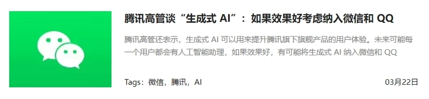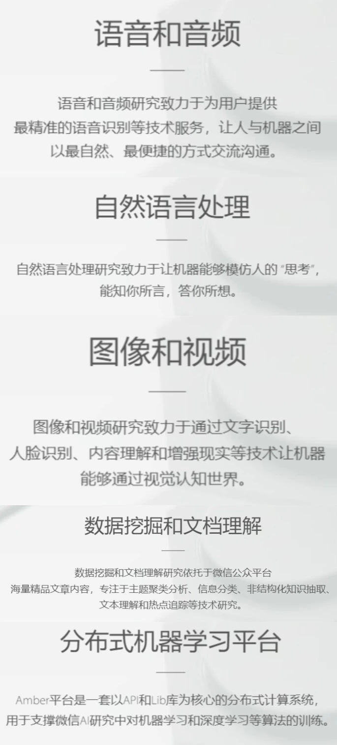 假如说前两年是「元宇宙元年」的话,那么本年小雷愿称之为「AI元年」。 AI从影视剧里的遥不可及,到各大科技巨头秀肌肉,再到走入平凡人一样寻常生存。 现在AI早已经摇身一变,从一个伸手摸不到的概念,变成磷菩知很强的好帮忙。 国外AI大模子引流潮流,国内各大厂商也没闲着,各种自研AI大模子也灵敏跟上。 语音辨认有AI,写文案也有AI,画图尚有AI……可以这么说,AI险些无处不在了。 而且嚯,现在不光是很多互联网产物到场AI属性,手机上的很多APP也有AI加持。 照相党常用的修图APP,少不了有AI消除和AI扩图吧,但还只是开胃小菜。 图源:美图秀秀APP 好家伙,小雷留意到我们最熟悉的微信,居然立刻要到场「AI」的干系功能啦! 那么题目来了,「微信AI」会是什么神奇东东?对广大用户又会有什么影响呢? 小雷整理了微信AI的干系消息和前瞻,本日咱们换换口胃,小同伴们先睹为快~ 图源:微信AI官网 微信AI要来了作为微信开辟者及生态成员的年度盛会,微信公开课不停是行业内关注的重点。 12月25日,微信公开课在其公众号正式官宣:2024微信公开课PRO启动来啦! 2024年1月11日,2024微信公开课Pro将于广州·广交会展馆国际集会中央举行。 图源:公众号@微信公开课 从官方预热来看,这次微信公开课同样也是干货满满。 起首会场主打一个范围丰富,覆盖餐饮酒旅、视频号、金融、医疗、教导等专场。 算了一下,上午下战书分别有7个会场一共14个会场,详细大伙可以瞅瞅下面名单。 而在专场后边尚有两个「小讲堂」,分别是「微信AI」和「小小步调员」小讲堂。 没错,「微信AI」就是这次微信公开会,包罗小雷在内很多人最期待的一Part。 图源:公众号@微信公开课 究竟在AI元年的洗礼下,很多互联网产物和APP在得到AI加持后,体验突飞猛进。 而微信作为我们最常用到的APP之一,服务范围险些包罗了一样寻常生存的方方面面。 So,假如微信AI能和这些方面完善团结起来的话,到底能擦出什么神奇火花嘞? 干这么想象多少有些枯燥,小雷梳理了一波现在微信已经用上的AI,给大伙参考。 微信AI早已上线你没有看错,「微信AI」并不是微信迩来才提出来的,早在之前就已经上线喽。 在2023微信公开课Pro上,微信就提到过微信AI,当时的主题是「对话即服务」。 简朴来说,是在客服、营销等场景到场AI智能对话,低落对话门槛美满服务体验~ 图源:微信开放社区 往细了说,微信AI尚有本身的官网呢,研究方向和产物应用都说得明显白白的。 起首概括一波,微信AI现阶段紧张致力于: 语音辨认、天然语言处理处罚、盘算机视觉、数据发掘和呆板学习等人工智能技能。 图源:微信AI官网 喏,详细表现在以下几方面。 语音和音频:围绕人和呆板之间,通过精准的语音辨认到达天然便捷的互换沟通。 天然语言处理处罚:让呆板可以学习人的思索,可以或许知道我们说什么,答复我们题目。 图像和视频:运用笔墨/人脸辨认、内容明确和增强现实等技能,让呆板通过「看」认知天下。 数据发掘和文档明确:紧张依托微信公众号平台,对海量文章举行信息分析等技能研究。 分布式呆板学习平台:可以明确为通过Amber平台,支持微信AI研究的干系训练。 图源:微信AI官网 大概有小同伴瞅着这些名词以为陌生,非也,着实我们使用微信常常会用到。 微信语音自带语音输入转笔墨,解放双手好帮忙,这功能想必很多人在用吧~ 图源:微信 扫一扫辨认二维码/花卉/动物/商品等,尚有扫一扫翻译,辨认精准度越来越好了。 图源:微信 尚有摇一摇辨认外界歌曲和电视,每次小雷摇一摇,99%概率都能摇出对的名字。 图源:微信 别的尚有「声音锁」功能,也得通过AI的辨认,才气完成安全系数这么高的利用。 图源:微信 现在,「微信AI」现阶段紧张照旧应用在,提拔用户根本APP体验的服务上。 不外嚯,从本年微信在AI方面的动作来看,微信AI大概率会有新的应用方向。 就拿当下火到没边的「天生式AI」来说。 早在本年3月,腾讯高管就体现嗷,假如效果好思量将这种AI接入微信和QQ。 图源:IT之家 本年9月,腾讯还公开了旗下大模子「混元」和AI谈天呆板人「腾讯混元助手」。 图源:微信 腾讯混元助手还在内测阶段,小雷就已经在用了,体验下来「智商」照旧在线的。 根据指令天生照片,画图,撰写文案,简述推理规则等等,通通不在话下~ 图源:小步调@腾讯混元助手 小雷还留意到,本年10月腾讯申请了「微信AI服务平台」商标,有大概搭载旗下的混元大模子。 诶!这么看来,说不定2024微信公开课Pro上的「微信AI」,就大概和这个大模子有关呢。 图源:IT之家 AI加持利好用户有一说一,小雷照旧很接待微信团队在微信APP上,到场AI干系功能的。 一来,AI元年已经到临,各大互联网产物和APP纷纷拥抱AI,微信没来由不去做。 虽说微光荣户体量更大,须要思量的东西更多,但接入AI大概率也是早晚的事儿。 二来,微信根本功能已经美满得七七八八,剩下的功能升级点根本以修补为主。 So,想要让微信有点希奇厘革,到场天马行空属性拉满的AI,显然是个好办法。 好比天生式AI到场,碰到一些须要群发等文案的场景,微信直接天生岂不美滋滋? 尚有类似公众号文章、视频号视频,可以通过AI总结要点,省去观看的大量时间。 三来,AI的到场不光利好我们平凡人,对于一些特殊群体还会有更大的资助。 好比视障群体,AI可以通过更精准和便捷的语音,辅助他们更轻易地利用微信。 而