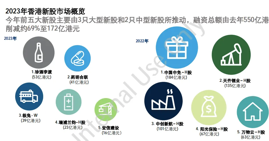 本文系基于公开资料撰写,仅作为信息互换之用,不构成任何投资发起。 出品|公司研究室IPO组 文|小语 2023年行至岁末,回顾环球IPO市场的体现,A股再次成为环球最大的融资市场,沪深两市是环球前两大IPO买卖业务所。 纳斯达克和纽交所为环球第三大和第四大买卖业务所,根据德勤陈诉,A股IPO融资额预计为美股的2.2倍。 只管年内美联储一连加息,但美股三大指数却稳步上涨,此中道琼斯指数不停创下汗青新高。 反观港股,一连了上一年的低迷,恒生指数一连4年下跌为有记载以来第一次。在运动性不敷、估值低迷的影响下,港股IPO融资额预计将为近20年新低,以致低于被SARS打击的2003年。 01、沪深两市为环球前两大IPO买卖业务所 2023下半年,为活泼资源市场,A股市场迎来政策组合拳。此中,证监会提出要科学公道保持IPO,统筹好一二级市场动态平衡,围绕公道把握IPO节奏,作出阶段性收紧IPO节奏等安排。 尤其是2023年四序度,A股IPO进一步收紧后,Q4的IPO数目和筹资额仅占整年的14%和8.6%。 新股数目方面,根据Wind数据,停止12月26日,年内A股首发上市新股数为309只,较2022年同期的416只,淘汰107只。 而2018年至2022年,A股IPO新股数目分别为105只、202只、436只、523只、428只。 融资额方面,停止12月26日,A股年内IPO总融资额为3542.68亿元,较2022年同期下滑38.47%。 而2018年至2022年,A股IPO融资额分别为1378亿元、2490亿元、4848亿元、5427亿元、5868亿元。 由此来看,2023年A股新股数目和融资额将均为自2020年以来最低。 分板块来看,科创板和创业板均仍旧是融资额最高的两个板块。 停止12月26日,科创板新股数为67只,融资额为1438.84亿元,全市场占比40.46%;创业板新股数为108只,融资额为1211.89亿元,占比34.32%;上证主板新股数为35只,融资额为487.76亿元,占比13.81%;深证主板新股数为23只,融资额为258.47亿元,占比7.32%;北交所新股数为76家,融资额为145.72亿元,占比4.09%。 然而,2023年下半年由于IPO运动放缓,各板块IPO运动根本出现降落态势。此中,科创板融资额下滑幅度最大,北交所融资额下滑幅度最小。 停止12月26日,科创板新股融资额同比淘汰41.22%;其次是创业板,融资额同比下滑31.27%;深证主板融资额淘汰17.79%;北交所融资额同比淘汰11.91%;上证主板融资额同比淘汰11.09%。 个股方面,2023年A股仅有2家企业筹资额凌驾百亿,占年筹资额总量9%。而2022年A股有5家百亿规模IPO,占2022年总筹资额20%。 2023年,A股最大IPO为华虹公司融资额212.03亿元,其次为芯联集成融资额110.72亿元,晶合集成融资99.60亿元排在第三。 02、A股IPO融资额约为美股2.2倍 A股2023年融资总额虽同比下滑40%,但纵观环球市场,中国本地照旧环球IPO运动的紧张地域,一连两年凌驾美股市场。 根据安永《2023中国本地和香港IPO市场陈诉与推测》,停止11月17日的推测数据,A股整年筹资额占环球筹资额的4成以上。上交所、厚交所是环球IPO筹资额最大的两个买卖业务所。德勤发布的陈诉亦是云云。 根据德勤陈诉,2023年环球IPO融资额前五大买卖业务所分别为上交所、厚交所、纳斯达克、纽交所、印度国家证券买卖业务所,预估整年融资额分别为2144亿港元、1640亿港元、916亿港元、795亿港元、487亿港元。 根据德勤预估,2023年沪深买卖业务所的IPO融资总额为3784亿港元,纳斯达克和纽交所IPO融资总额为1711亿港元。A股市场(不包罗北交所)的IPO融资额将是美股的2.21倍。 2022年,美股IPO融资额为222亿美元,2023年美股IPO融资根本与上一年持平。但与2021年相比仍旧有巨大差距。 Wind数据表现,2021年美国三大买卖业务所IPO融资总金额为2927亿美元,同比2020年提拔88.84%。 行业人士分析称,受美联储一连加息、地缘政治危急以及市场关于埋伏经济阑珊的争论等因素影响,美国新股市场一连低迷。 详细缘故起因在于,2020年和2021年低利率市场环境下,美股IPO的繁荣受SPAC(特殊目的收购公司)高潮推动。 而2022年和2023年,在美联储一连加息的环境下,高风险SPAC不再受到投资者青睐,美股IPO市场渐渐回归正常。 中概股方面,德勤陈诉表现,2023年中概股IPO数目较2022年增多,新股数由16只增至38只;IPO融资额由5.36亿美元增至8.27亿美元,增长54%;但匀称融资额由0.34亿美元降至0.22亿美元,同比下滑35%。 2023年,中概股前5大IPO分别为禾赛科技、硕迪生物、阿诺医药、量子之歌、小i呆板人,融资额分别为1.92亿美元、1.85亿美元、0.58亿美元、0.41亿美元、0.39亿美元,合计为5.15亿美元,较2022年增长59%。 只管美股IPO市场较前两年低迷,但2023年美股买卖业务市场稳步走高。停止12月27日,标普500年内涨幅24.54%,纳斯达克涨幅44.50%,道琼斯指数年内涨幅13.60%,并以37683.70点创下汗青新高。 03、港股IPO融资额尚不及2003年 俗话说“冬至大如年”,12月22日冬至当天,港交所上市大厅出现了少有的热闹。当日,君圣泰医药-B、集海资源、澜沧古茶、泛远国际4只新股同时鸣锣上市。 然而,一日之热闹难掩港股整年低迷的体现。 在美联储一连加息,运动性不敷等多重因素影响下,恒生指数一连了上一年的疲软,一连4年下跌创下了自1986年创建以泉源史之最。 据港交所统计,2023年前三季度,港股市场匀称日成交金额为1097亿港元,较2022年同期下跌12%。 在成交额一连下滑、个股运动性南北极分化的背后,港股市场陷入“运动性越差—估值越低—融资效应越差”的恶性循环。 停止12月22日,港股新上市公司数目只有68家,募资额共计约439亿港元,较2022
