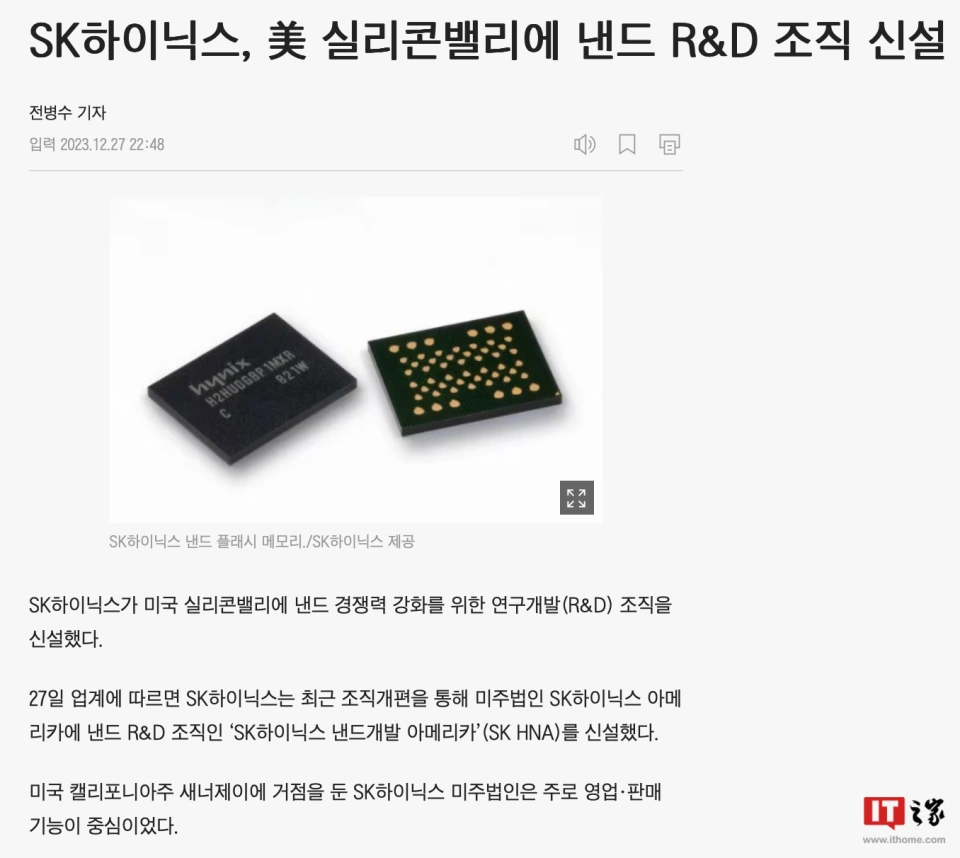 IT之家 12 月 29 日消息,据外媒ChosunBiz报道,SK海力士日前在美国组建了一家名为 SK HNA(SK hynix NAND Development America)的子公司,并通过“挖英特尔墙角”招募了多位“具有数十年履历”的专家,以期进步自家 NAND 竞争力。 据悉,SK HNA公司位于美国加州圣何塞,由约 30 名研究职员构成,唯一目标是“专注于开发高性能 NAND 技能”。 外媒提到,SK 海力士本月从英特尔招募了资深主任工程师 Richard Pasto,这名工程师拥有 28 年履历,此前曾在 AMD、Spansion 和 Cypress Semiconductor 工作过,在半导体范畴拥有包罗 3D NAND 技能在内的数十项专利。 除了 Richard Pasto 外,SK 海力士还在本年 6 月招募了一位拥有 30 年履历的存储筹划专家 Rezaul Haque,在本年 11 月招募了一位曾在英特尔 NAND 范畴工作 13 年的工程师 Erika Shiple,现在上述三位人才已经成为 SK HNA 公司的“关键部分负责人”。 外媒同时声称,SK 海力士筹划使用 SK HNA 子公司吸引更多 NAND 方面的人才,并可以大概与 SK 海力士旗下另一家从英特尔收购的子公司 Solidigm 产生协同效应,从而缩小与三星电子等对手之间的差距。 另据IT之家早前报道,SK 海力士筹划在 2024 年启动 HBM4 研发,并推动 CXL 内存贸易化量产工作,筹划在2024 年上半年完成 96GB 和 128GB 产物的客户认证,并在下半年实现贸易化。 |