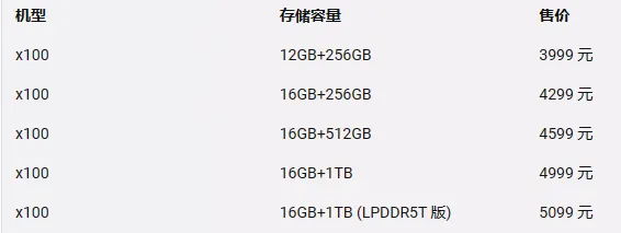 同样的4999元,在X90上只能买12GB+512GB的版本,到了X100你能买16GB+1T顶配版。
