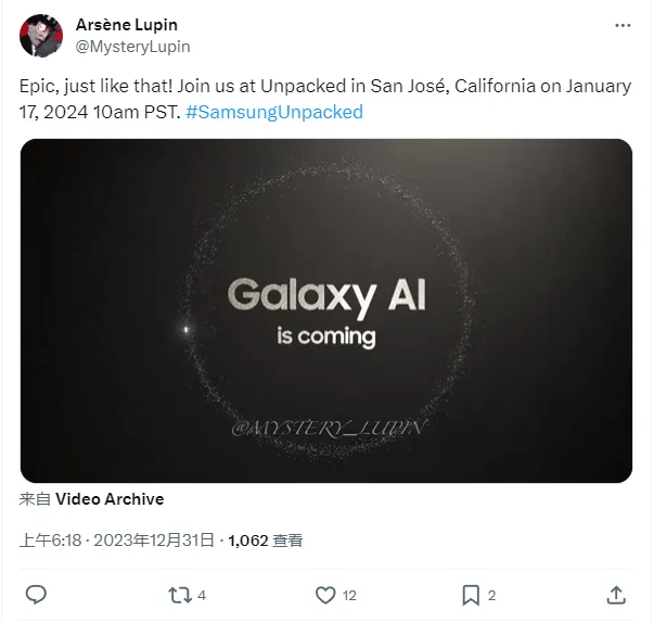 IT之家 1 月 1 日消息,@MysteryLupin 放出了三星 2024 Unpacked 运动的约请函,表现将于 1 月 17 日举行,相比客岁有所提前(2023 Unpacked 运动于 2 月 1 日举行)。 三星Unpacked 2024 运动主题为“Galaxy Al is coming”,预计届时将推出最新的 Galaxy S 系列旗舰机型。用户推测,三星将于 1 月 2 日正式官宣。 如今 @Evan Blass 已经曝光了三星 Galaxy S24 规格,而且沃尔玛昨天也不鉴戒提前上架了 Galaxy S24+(固然停止IT之家发稿已被撤下,但仍有一些截图在网上传播),我们一起来看一下吧。 参数方面,三款机型都将搭载高通骁龙8 Gen 3 芯片,旗舰级的 Ultra 型号将配备 6.8 英寸 Dynamic AMOLED 2X 表现屏,分辨率为 QHD+ (1440p),亮度为 2600 尼特;并将配备 200MP 主摄(SOCELL HP2SX),支持“100 倍数码变焦”和“四倍长焦”功能;并将配备 5000mAh 电池,可在 30 分钟内将电量从 0% 充至 65%,并将接纳钛金属筹划,支持 IP68 防尘防水,固然尚有内置 S Pen。 三星 GalaxyS24+ 配备 6.7 英寸 Dynamic AMOLED 2X 表现屏,比 S23 + 稍大,而且分辨率也从 FHD+(1080p)升级为 QHD+(1440p),且亮度高达 2600 尼特。 三星 GalaxyS24+将配备 50MP 主摄(信任又是 ISOCELL GN3),而且可以录制 8K 视频,可以或许为用户提供 30 倍数码变焦功能,并将支持 2 倍和 3 倍“双长焦”。 其他方面,S24 + 将配备 12GB 内存,并提供 256/512GB 存储,内置 4900mAh 电池,可在 30 分钟内从 0% 充至 65%,还将接纳 Armor Aluminium 2.0 材质,支持 IP68 防尘防水。 至于 Galaxy S24,列出的规格中唯一与 S24+ 差别的地方在于6.2 英寸 Dynamic AMOLED 2X 表现屏,且仅有FHD+ 分辨率 (1080p) 和 2600 尼特亮度。 其他方面,三星 GalaxyS24 将配备 8GB RAM、128GB 和 256GB ROM,内置 4000mAh 电池,可在 30 分钟内从 0% 充至 50%。 |