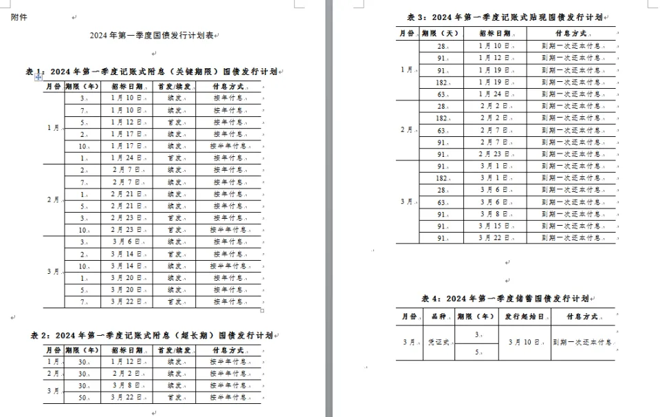 经济观察网讯 据财政部网站1月2日消息,财政部公布2024年第一季度国债发行操持。 关于公布2024年第一季度国债发行操持的关照 财办库〔2023〕255号 储备国债承销团成员、记账式国债承销团成员,中心国债登记结算有限责任公司、中国证券登记结算有限责任公司、中国外汇生意业务中心、上海证券生意业务所、深圳证券生意业务所、北京证券生意业务所: 现公布2024年第一季度国债发行操持(见附件)。实行中如有变更,以届时国债发行文件为准。 财政部办公厅 2023年12月29日 |