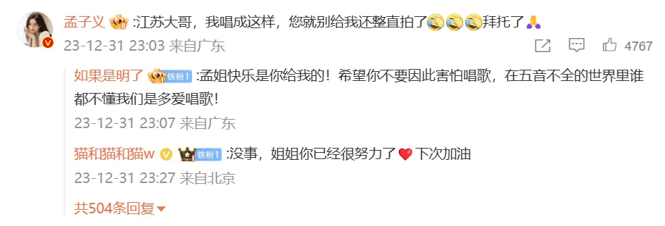 江苏卫视跨年演唱会之后,女演员孟子义因唱歌跑调而热搜不停。上一条热搜,孟子义致歉了“周华健年老”。最新的这一条热搜,孟子义则喊话“江苏(卫视)年老”求放过。 江苏卫视的官方账号@江苏卫视跨年演唱会 在演唱会后发布了如许一条微博: “#江苏卫视跨年#@孟子义 《有没有一首歌会让你想起我》直拍上线!火线高能,极具特色的嗓音在舞台上与旋律交错,赋予了歌曲满满的热情!” 显着是唱歌跑调,却被官方账号说成“火线高能”。也难怪孟子义要本身跑到这个账号下面留言“求放过”了: “江苏年老,我唱成如许,您就别给我还整直拍了,拜托了。” 所谓直拍,是指未经调音、剪辑等步调的直接拍摄。博文中还附带了三个大哭脸。 留言网友中,有不少人替孟子义语言。“你下次别害我孟姐了”“逮着我孟姐霍霍了?为什么她的麦那么高声,其他女明星的声一点儿都没”“这是不恭敬观众啊,故意把声音调大, 毁歌”…… “江苏卫视 装备”,也一度攀上热搜。不外,江苏卫视方面还没有就跨年演唱会干系话题举行回应。 图源:孟子义微博 此前报道: 2023年12月31日跨年之夜,女演员孟子义发布微博向周华健致歉。这条微博全文为: “对不起周华健年老,对不起各人,我真的努力了, 新年快乐!” 与此同时,与孟子义干系的两个词条冲上热搜。这两个词条分别为:孟子义跑调很突出、孟子义开口吓死我了。 在江苏卫视举行的跨年演唱会上,周华健和孟子义等多名艺人一起合唱歌曲《让我欢乐让我忧》。不外,孟子义的演唱被网友吐槽“全程跑调”。别的,大概是由于直播方面的缘故,孟子义跑调的声音显着压过了其他合唱者。 大概是为了回应上述吐槽,孟子义在演唱会后发布微博向周华健以及本身的粉丝体现歉仄,还使用了一个下跪的卡通心情。 对于孟子义的致歉,有粉丝漂亮体现“我以为很好听”,“我倒是以为还挺可爱的,哈哈哈哈哈,别那么认真”,也有网友讥讽称“这次听出来是真唱了”。 另有网友的品评就显得不是那么“客气”,“不会唱就先训练,不能唱就专心做演员”,“说实话,我是周华健的粉丝,会感到愤怒”。 图源:孟子义微博 公开资料体现,孟子义,1995年12月5日出生于吉林省长春市,中国本地女演员,结业于北京影戏学院演出系。代表作品为《武神赵子龙》《花琉璃轶闻》《射雕豪杰传》等。 泉源丨九派消息综合(版权归原作者全部,如有侵权请接洽删除) |