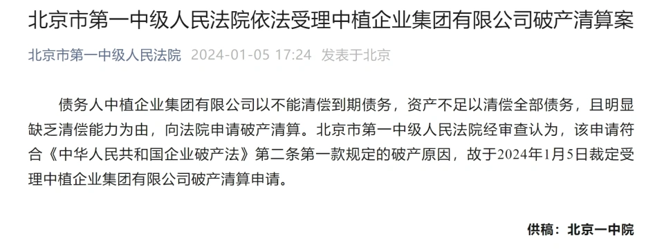 界面消息记者 | 邹文榕 中植团体风险化解再现新动态。 继客岁11月“中植系”所属产业公司被警方转达涉嫌违法犯罪并备案侦查后,1月5日,北京市第一中级人民法院消息,债务人中植企业团体有限公司(下称:中植团体)以不能清偿到期债务,资产不敷以清偿全部债务,且显着缺乏清偿本领为由,向法院申请停业整理。 北京市第一中级人民法院经查察以为,该申请符合《中华人民共和国企业停业法》第二条第一款规定的停业缘故起因,故于2024年1月5日裁定受理中植企业团体有限公司停业整理申请。 另据北京停业法庭5日消息,鉴于中植团体公司债权债务关系复杂,现根据《中华人民共和国企业停业法》《最高人民法院关于审理企业停业案件指定管理人的规定》,北京市第一中级人民法院决定采取竞争选任方式指定中植团体公司停业整理案管理人。 关于中植团体的资产负债情况,北京市第一中级人民法院民事裁定书[(2024)京01破申1号]披露,中植团体公司提交的《资产负债表》体现,停止2023年10月31日,中植团体公司资产总计93.85亿元,负债合计95.85亿元,全部者权益合计-2亿元。 根据前述《资产负债表》纪录及该公司提交的《产业状态分析》,中植团体公司资产紧张由活动资产及非活动资产构成,此中活动资产包罗货币资金180.86万元、其他应收款29.31亿元,非活动资产包罗长期股权投资、办公设各等固定资产、投资性房地产及电子软件等无形资产。中植团体公司未提交审计陈诉。 而在2023年11月22日夜间,中植团体在微信小步调面向投资者发布公开信也曾披露团体账面资产情况。 据公开信披露,团体出险后约请中介机构举行全面清产核资,开端尽调发现:一是按照中介机构模仿归并口径测算团体总资产账面金额约2000亿元,由于团体资产会集于债权和股权投资,存续时间长,清收难度大,预计可接纳金额低,活动性枯竭,资产减值情况严肃;二是债务规模巨大,剔除包管金后干系负债本息规模约为4200-4600亿元。 中植团体表现,开端尽调体现,团体已严肃资不抵债,存在庞大连续策划风险,短期内可用于兑付债务的资源远低于团体债务规模。由于团体资产体量巨大,产业分布复杂、策划主体和项目主体浩繁,大量代持企业资产、关联融资及对外包管事项还须进一步延伸审计举行核查确认,终极资产负债状态大概还会根据核查情况予以调解,我们将实时向投资者转达干系信息。同时,我们将理清汗青脉络,对于大概存在的陵犯团体和投资者长处的活动零容忍,一经发现和证实,无论企业还是个人,同等依法追究干系责任并追回干系产业。 随后于当月25日晚,安全北京向阳官微消息,北京市公安局向阳分局转达,近期,北京市公安局向阳分局依法对“中植系”所属产业公司涉嫌违法犯罪备案侦查,对解某某等多名犯罪怀疑人采取刑事陵暴步调。 中植团体建立于1995年,是一家多元化策划的大型民营企业团体,团体旗下紧张业务涵盖投资、并购、资产管理和产业基金,拥有多家全资、控股子公司,分布于北京、上海、黑龙江等多个省市。 近三十年的时间,中植团体创建了完备的资源版图,旗下涵盖金融投资、并购、产业管理、新金融四大业务板块,核心金融平台包罗中融信托和四大产业管理公司——恒天产业、新湖产业、大唐产业、高晟产业,别的另有中融基金以及数百家私募。 作为最紧张的融资平台,四大产业管理公司及中融信托拥有极强的募资源领。 四大产业管理公司中,恒天产业管理规模最大,募资源领最强。停止2021年11月尾,恒天产业累计资产设置规模已达1.5万亿元人民币。而新湖产业官网数据体现,其最新累计设置资产规模已经突破1.3万亿元;停止2020年底,大唐产业累计资产设置规模超7000亿元,高晟产业资产设置规模也凌驾了1000亿元。 财报体现,停止2022年末,中融信托及各子公司受托管理资产总规模7857.09亿元。 2020年8月,基金贩卖新规出台,“一参一控”要求之下,中植启动产业关联公司“四合一”整改工作。2022年1月,中植系旗下四大产业管理公司,正式整合为北京中植基金贩卖有限公司。以后,仅有1家公司旗下基金贩卖牌照保存,其他3家被予以注销。新建立的中植基金紧张承接四大产业管理公司中原有的“公、私募等尺度化产物”,而定融、非标类产物仍在原有产业管理公司旗下。 2021年12月,中植团体首创人解直锟因心脏病突发救济无效去世;2023年6月尾,中植旗下四大产业管理公司团体逾期的干系听说发酵;9月16日破晓,中融信托突发公告称被建信信托、中信信托委托管理。 |