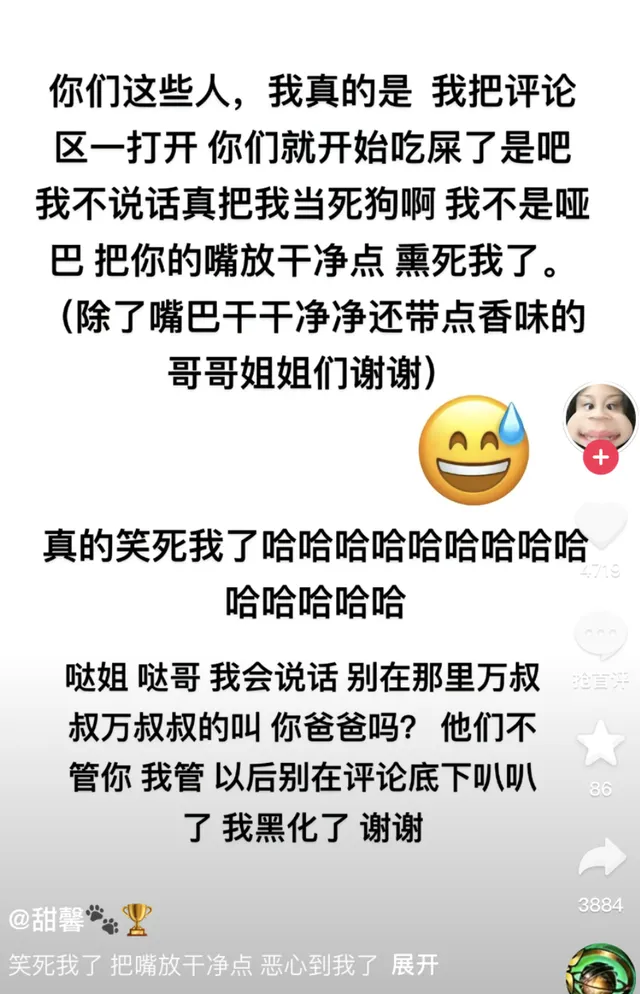 克日,吴尊,李小璐,刘畊宏几家带着孩子集会在网上掀起了不小的关注,几位《爸爸去哪儿》中的萌娃们都长大了,让人感叹时间真的过得好快。 李小璐的女儿甜馨,当年在节目里一句“我们白着呢”也成为名局面,转眼甜馨都长这么大了,出竣工了一个小玉人。 当年李小璐做“头发”一事曝光后,她形象奇迹皆毁,这几年随着各人影象淡忘,李小璐倒是依附“好妈妈”人设又开始渐渐回到大众视线,时不时会分享一样平常生存,分享甜馨的发展瞬间,偶尔还与闺蜜挚友聚聚餐跳舞蹈,日子过得不要太惬意。 值得一提的是,李小璐与贾乃亮的关系似乎也已经和缓了不少,两人固然仳离,但是为了甜馨,外貌上仍旧和睦,甜馨之前过生日时,一家三口有数同框引发热议,网友乃至质疑贾乃亮跟李小璐是不是有复婚的大概。 已经11岁的甜馨,心田实在啥也知道,关于她妈妈的“丑闻”,她肯定也有所相识,近来有网友都开始去甜馨的留言区诋毁她的妈妈李小璐,引发甜馨震怒。 因甜馨发了一条上学的视频,批评区就有人批评“有小万叔叔吗”,不意得到甜馨的回怼:刚好没有,学校茅厕还缺一个位置,你进不进? 实在甜馨发的这条视频,也是在为近期郝劭文女儿在学校遭遇霸凌的事故发声,她称自己喜欢上学,由于没有校园霸凌,也盼望每所学校都没有校园霸凌,甜馨在现在发声,可见对于郝劭文女儿的遭遇感到怜悯,更是对校园霸凌这种活动感到可耻,足以可见甜馨是一个三观多么正的孩子,既大胆又布满了公理,这背后离不开妈妈李小璐对她的悉心辅导。 之后甜馨也很快删除了怼网友的那条留言,想必也是不盼望再引发过多的争议,也有很多正能量的网友以为大人的事故,不应扳连到孩子,甜馨此番回应,一点毛病没有,维护自己的妈妈,这个孩子是懂得感恩的。 不外甜馨并未就此罢休,在1月4号下战书时,她又在视频平台发文表达自己的观点,甜馨绝不避讳的怒斥某些网友称:你们这些人,我把批评区一打开,你们就开始吃屎了是吧,我不语言真把我当死狗啊,我不是哑巴,把你的嘴放干净点,熏死我了。 下面甜馨也提到了“万叔叔”,喊话故意之人别在她批评区瞎叭叭,还讥讽自己黑化了。 甜馨这条视频关闭了批评功能,显然是不想再听到一些污言秽语来诋毁自己的妈妈,从言语中也能感受到,甜馨这次真是被逼急了,一个女孩子能说出这么多脏话,可见她真的是气着了。 甜馨现在也是混互联网的人,她的个人账号另有70多万的粉丝,加上她的妈妈李小璐,也是靠自媒体营生,以是她不大概不知道网上这些八卦,她深知妈妈这些年所遭遇的一些诅咒跟讽刺,从女儿角度出发,固然是不允许任何人去诋毁自己的亲人。 不丢脸出甜馨也是一个直性子,敢说敢做,不能否认李小璐当年做得错事,但她对女儿的掩护,造就足以证实她是一位好母亲,而且贾乃亮现在都能不计前嫌,凡是思量孩子,为孩子创造一个温暖有爱的发展情况,作为外人又有什么资格去批评别人呢,把自己的日子过好才是正道。 甜馨是大胆的,知道维护自己的妈妈,李小璐没白养,盼望网友们照旧嘴下包容些,不要让孩子为大人曾经的错误买单。 |