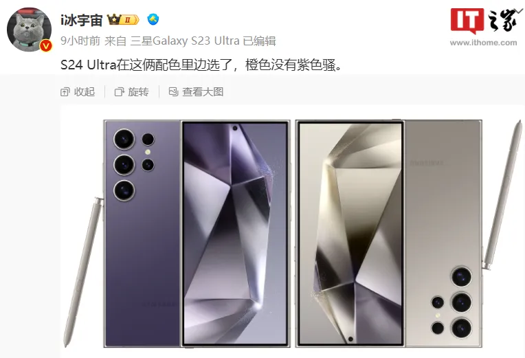 IT之家 1 月 6 日消息,三星将于北京时间 1 月 18 日破晓 2 点在圣何塞举行 Unpacked 2024 发布运动,slogan 为“开启移动 AI 新期间”,届时 Galaxy S24 系列将正式表态。 据博主 @i 冰宇宙 爆料,Galaxy S24 系列国行版将在 1 月 18 日发布会当天,第一时间表态一线都会线下官方店。 按照往年惯例,三星 Galaxy S 系列国行新机通常会比外洋晚 1 到 2 周发布,不知本年是否有所改变。Galaxy S24 系列的表面和设置已经多次曝光,可以说只等售价公布了。 据IT之家此前报道,Galaxy S24 / S24 + 预计采取骁龙 8 Gen 3 / Exynos 2400 双处置惩罚器版本,后置 50MP 主摄像头、12MP 超广角摄像头和 10MP 长焦摄像头,具有 2 倍和 3 倍光学变焦功能。紧张区别在,标准版机型配备 6.2 英寸 FHD+ 表现屏、4000mAh 电池、25W 充电功率,S24 + 则配备分辨率更高的 6.7 英寸 QHD+ 表现屏、4900mAh 电池以及 45W 充电功率。 Galaxy S24 Ultra 机型则配备 6.8 英寸 QHD + 表现屏、钛合金边框,机身内置 5000mAh 电池,支持 45W 充电功率,仅有骁龙 8 Gen 3 处置惩罚器一个版本。影像方面,该手机配备200MP 主摄、12MP 超广角摄像头、10MP 长焦摄像头和 50MP 长焦摄像头,具有 2 倍、3 倍、5 倍和 10 倍级别的光学变焦。 |