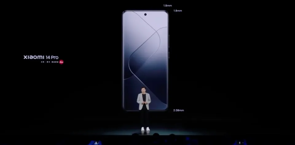小米 14 Pro 边框宽度的官方数据是 1.8mm,降到 0.9mm,意味着边框砍半。