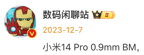 作为参考,小米 14 Pro 的 BM 地区仅 0.9mm 宽。