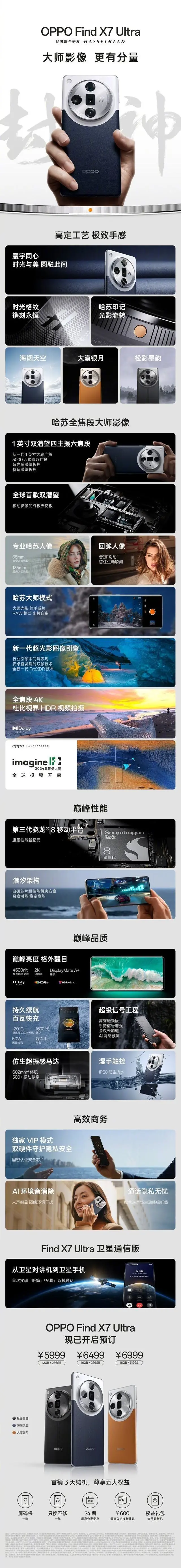 本日14:30,OPPO召开了新品发布会,年度旗舰新机OPPO Find X7系列正式发布。Find X7系列拥有风雅的外貌计划、旗舰级别的影像性能,以及凌驾式的AI升级,此中平常版的起售价为3999元,Ultra版本的起售价为5999元。话不多说,下面用两张图带你看懂Find X7系列。 OPPO Find X7搭载了6.78英寸1.5K曲屏,搭载联发科天玑9300处置惩罚器,LPDDR5X、UFS 4.0,潮汐架构,5000mAh电池,100W有线充电,立体双扬声器、X轴线性马达,支持IP65防尘防水,而且拥有超Pro级别的影像设置,搭载新一代超光影图像引擎等,性价比还好坏常高的。 OPPO Find X7 Ultra更是刁悍,义移动影像的终极形态。Find X7 Ultra首创的双潜望四主摄构成哈苏各人镜头群,以六个光学风致焦段提供如今手机最强大、风致最高的多摄变焦本领。初次搭载专为超光影图像引擎定制的一英寸传感器,Find X7 Ultra再次革新移动影像天花板。Find X7 Ultra1月8日16:30开启预定,将在1月12日,10:00正式在线上线下各个平台同步开售。 |