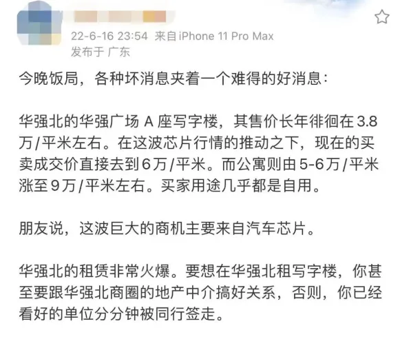 华强北变空了。 在各种交际软件上,不时有人录下华强北市场档口的现状,空荡荡的过道,紧闭的卷帘门,安静的市场,左右环顾,能望见不少旺铺出租的标签。 我把这些视频发给老葛看的时间,他叹了一口吻。 “华强北有这个市场以来,从来没有这么空过。” 01 华强北的荒芜 藏在市场里 时值2023年12月下旬,临比年末,深圳的气温总算降了下来,有了点冬天的样子。不外,下周的天气预报又表现气温将回升至25度。 这不正常,老葛想,无论是天气照旧华强北市场。 老葛是一位房产中介,2002年的时间他开始工作,刚开始在物业公司,08年来了华强北转行做起了房地产,一做就是15年。 老葛手上的房源重要围绕华强北附近,在华强电子市场周边的片区,90%以上的客户都是电子行业的人。 白天走在华强北步行街上,照旧可以感受到很热闹,人来人往,不少人推着小板车正在送货。老葛走在熟悉的路上,仿佛齐备都没有变革,直到走进华强电子天下的大门,寒意一下子袭来。 走在一楼,附近就已经有了多家空铺,市场内很安静,没什么人语言,走道里没什么行人,各人都坐在店肆里,看着电脑和手机,安安悄悄做着买卖。 年末本就是市场的淡季,不少店肆会在年前转租、退租,但电子市场照旧比以往更加冷静。老葛找了几个熟悉的电子老板打个招呼聊了几句,不少人对他说,买卖欠好做,本年估计要提前回家过年了。 老葛叹了口吻,他对此早有预料。 从本年5、6月开始,华强北市场以及办公室开始逐步变空。 华强北的办公室在前两个月重要是中小户型空置出来得比力多,到了12月,一些稍大些的公司也开始受影响,100、200平的大办公室也开始放盘放出来。一个200平的办公室大概可以容纳30-40个人,对于芯片分销商来说,规模不算很小。 更直观的是,连等电梯的人都变少了。华强北的荒芜,就连外卖小哥都已察觉。 市场档口的退潮来得更加赤裸。赛格这种买卖比力杂一些的,这两年受疫情等各种影响,不绝不太好做,像华强电子天下、新亚洲一期二期、都会电子城这几个专做电子元器件的市场,本年受影响特殊显着。 老葛大抵估算了一下,电子市场的空置率如今大概在20-30%。空了这么多,新华强一楼乃至干脆做起了改造,原来的商户都搬到了其他楼层大概脱离了。 租金方面固然也受到了影响。 电子市场的租金如今还没有显着降落,老葛推测如今几个市场大概都在观望,都不敢第一个自动贬价,就像芯片市场一样,他们也怕陷入代价战。 办公楼的租金和本年年初相比,降了20-30%。本年年初华强北的房租价位很高,从5、6月之后开始下滑,但如今仍旧比2020年的代价要高一些。 “如今很多房子到期了,有些客户直接就退掉了,也不租新的。”行情这么淡,没什么票据,很多人都是直接退掉再说,有气力的公司,就会选择再撑一撑。 “就像是回到了三年前一样”,老葛说,2020-2022年芯片行业迎来的亘古未有的狂热,连带着华强北的房地产市场也一飞冲天,租金飙升还一房难求。 2023年即将已往,老葛如今回想起那三年,恍如隔世。 02 一个月涨几千,转让费几十万 被IC带飞的租金 2020年初,突如其来的疫情把齐备都打乱了,各行各业茫然不知所措。 大年月朔晚上,老葛还在家里对未知的将来感捣⒀圆的时间,一条红外测温仪急缺芯片的信息在IC人的朋侪圈中开始流传,在各人的同心积极之下,缺货在大年初二得到办理。 这是点燃缺芯潮引线的火花,然后,齐备就开始了。 2020-2022年,华强北一房难求。 “赶紧找找这波赚到钱的客户!” 当一个华强广场写字楼的房源被放出来的时间,房地产中介们开始骚动起来,对于老葛来说,锁定这些客户很简朴,就连他都已经察觉,卖芯片的又开始“发财”了。 老葛在华强北呆了十几年,总是和IC人打交道的他天然也摸到了一些芯片行情变革的规律。他知道这行有周期,有低谷,也会有某个器件带来的发作。 “但这次着实是太浮夸了。” 老葛回想起那段时间,后知后觉地感受到了疯狂。新人入局、小公司扩招、芯片新贵的诞生......华强北沸腾非常。与此同时,办公室租金疯涨,最浮夸的时间一天一个价,一个月就能涨几千。 就拿华强广场的租金来说,平常约莫1万块左右的一套房间,在最高峰的时间,可以涨到一万三、一万四,还租不到。 另有国利大厦,国利大厦内有一种29平的单房,正常环境也就租4000-4500元左右,反面直接涨到6000-6500块,涨幅差不多有40%左右。 同样的另有都会轩,之前一房一厅也就6000-7000块,反面直接涨到9000块左右。 最浮夸的是鼎城国际,之前很多年租金都保持在每平140-160元,前两年最离谱的时间涨到280块一平,直接翻倍。关键你敢报这个代价,还真的有人租,真的有这个市场。 老葛总结当时间的办公室租金:涨一半不多,涨三四成正常。 而在电子市场,除了涨价的房租,转让费更是疯狂。行情好的时间,转让费可以涨到十几万,几十万,有做IC的老板和老葛吐槽,位置好一点的,上百万也有。 做IC的老板们赚了大钱,赚了几万万、一个亿的都有不少。这些老板脱手也英气,大班公室、买楼、买房的都不少,有的乃至看到符合的房子就买。 老葛当时间遇到一个客户,一上来就说要买整层的写字楼,而当时写字楼的单价最高是6万一平。 对于老葛如许的华强北中介来说,这三年的买卖比任何时间都好做,这波红利是实着实在吃到了。这些老板在华强北买房也不是为了住,大部门都是为了“用