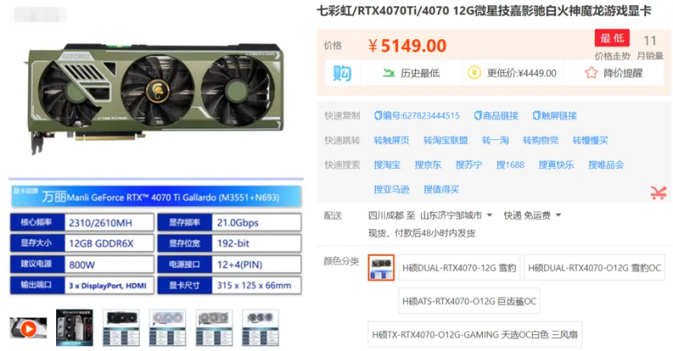 随着4070S和4070ti S的到来,4070ti也正式步入了停产阶段。但是停产归停产,它现在的性价比照旧可以的。万丽的4070ti最低只要5000不到就能得手,固然我不知道是怎么做到的,但是5000不到买4070ti,即便是4070S来了也不会被背刺,由于4070S没它强,首发价也不会比万丽的4070ti低多少。如果近期有显卡需求的话,这款4070ti是现在最好的选择。链接就不放了,本身找划算的店肆。