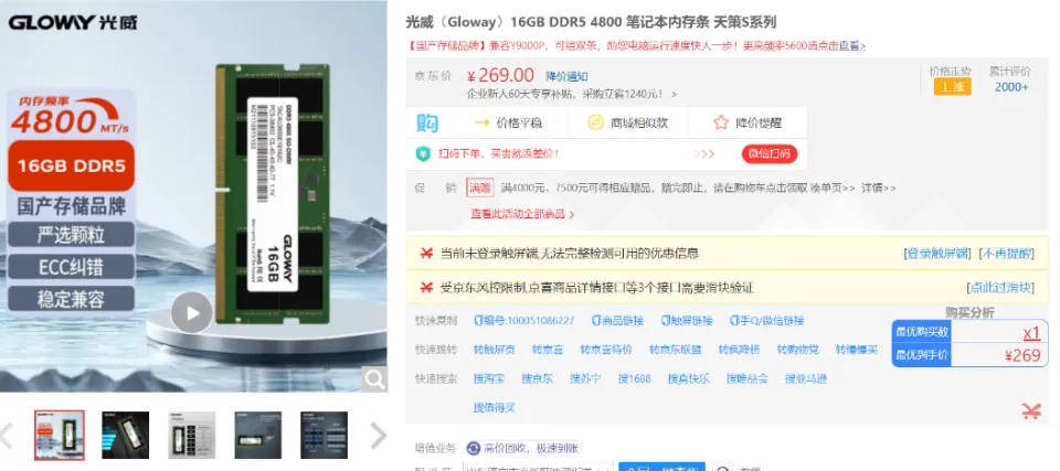 如今16G内存是越来越不敷用了,扩到32G根本已经成了肯定。而现在16G单条DDR5内存内里,光威的代价是最低的,只要269就能买到,照旧终身保修。你大概会问为啥不买5600的,很简单,由于客岁上市的本子险些没有效5600的内存的,你上了5600,和老内存一起也会降到4800,没什么意义,还多费钱。光威条子我个人用下来是没什么题目的,乃至我的威联通NAS也是光威条子,7*24一样OK。