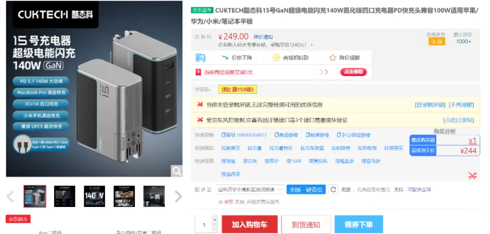现在250元价位内最划算的氮化镓充电器,标称功率为140W,单C口最高输出28V5A,也就是140W功率,多路也能输出130~140W,听说还支持两台小米手机同时举行67W有线充。别的也支持UFCS以及三星45W,另有小米自家的120W快充,根本上小米用户只用这一个头就富足了。美中不敷的是如果接入新装备的话必要重新握手,也就是断连一下。