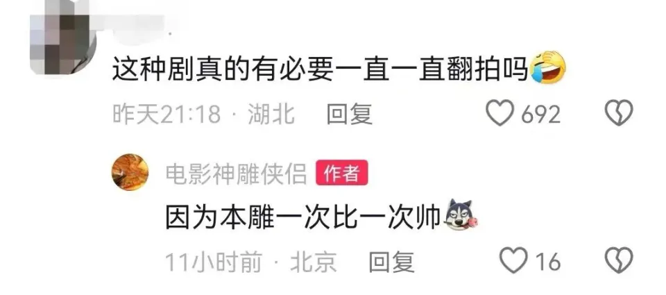 《神雕侠侣》这部经典作品,可谓是影视剧中的“回锅肉”了,这不,《神雕侠侣》影戏版克日也开始了宣传。 这部影戏现在放出了预告,公布了选角名单,影戏中实在出现了不少熟人,罗嘉良扮演的是郭靖,他曾在《射雕豪杰传》中扮演过杨康,现在61岁的他眼袋皱纹都照旧很显着。 陈紫函扮演的是黄蓉,曾经她还扮演过郭芙,现在48岁的陈紫函肯定不恰当再演刁蛮任性的郭芙了,只能从“女儿”酿成“妈”了。 董璇在影戏中扮演的是穆念慈,她曾在陈晓版的《神雕侠侣》中客串过祖师婆婆林朝英,内里不少演员都与《神雕侠侣》都很深的渊源。 除此之外,李子雄扮演丘处机,梁小龙扮演欧阳峰,释彦能扮演金轮法王,付美扮演李莫愁,但是看着影戏中大略的服化道和配景,不由地让人产生质疑。 再一看杨过和小龙女的选角更是让人眼前一黑,扮演杨过的赵华为和扮演小龙女的王子莼都是新人,他们俩的开机照都透露着一股寻常的味道,和杨过、小龙女的气质完全不符。 看了新版《神雕侠侣》的预告后,很多网友都不看好,以为太拉胯了,而且翻拍《神雕侠侣》已经不是第一次了,故事都拍烂了,以为完全没须要。 没想到影戏官方面临质疑时,却自负满满,称“本雕一次比一次帅”,完全不在意网友的评价。 《神雕侠侣》这个大IP被翻拍了很多次,除了影戏版,尚有一部已经达成但迟迟未上映的电视剧版《神雕侠侣》。 男女主仍然让各人非常扫兴,杨过由佟梦实扮演,小龙女由毛晓慧扮演,从剧照就能看出和经典差远了。 扮演小龙女的毛晓慧从侧面看还算不错,但是一转到正面,感觉观众的视线全都会集在她硕大的鼻子上了,哪有一点小龙女的仙颜呢。 现在被大众奉为经典的就是1995年版的《神雕侠侣》了,这部剧当年一上映就掀起了收视怒潮,古天乐、李若彤等演员成为了各人公认的杨过和小龙女。 金庸的原著中形貌小龙女“披着一袭轻纱般的白衣”“除了一头黑发之外,满身雪白,面目面目秀美绝俗”,而李若彤恰恰美满地解释了脚色,她所表现的古典美也让人念兹在兹。 当年的古天乐照旧白面小生的容貌,并非像现在黝黑僵硬,和李若彤站在一起非常养眼。 另一版非常着名的《神雕侠侣》就是2006年张纪中拍摄的,由黄晓明、刘亦菲主演,当年在播出之后受到了很多夸赞,很多人以为没有毁原著。 刘亦菲的小龙女简直是无可挑剔,“神仙姐姐”自带着不食人间烟火的气质,既颜值出众又仙气飘飘,非常出彩。 但黄晓明扮演的杨过就要稍显逊色,有些狂傲不羁了,这个版本的《神雕侠侣》打戏和殊效都非常用心,园地摆设也是花了心思的,因此也是很多观众念兹在兹的一版。 陈晓和陈妍希版本的《神雕侠侣》其时一出来就引起了群嘲,陈妍希的小龙女扮相还被嘲是“小笼包”,让她本来“清纯女神”的形象尽毁。 陈晓扮演的杨过相对来说还不错,由于张馨予扮演的李莫愁太出色了,一度比男女主还要火,固然这一版的《神雕侠侣》口碑欠好,但也算是为陈晓和陈妍希出了一份力。 《神雕侠侣》如许的影视剧,早已有了经典之作,到了本日还在一而再再而三地翻拍,想要卖情怀将这个IP的代价榨干榨尽,这条路可没那么好走。 |