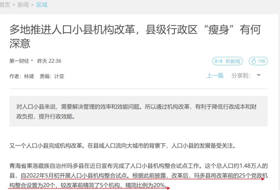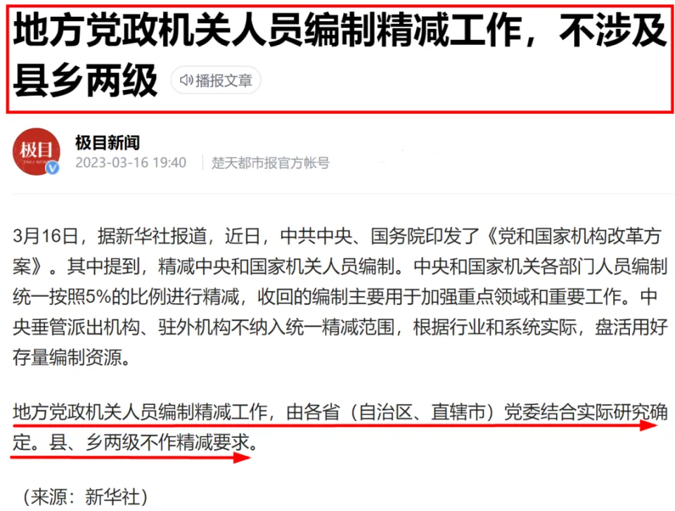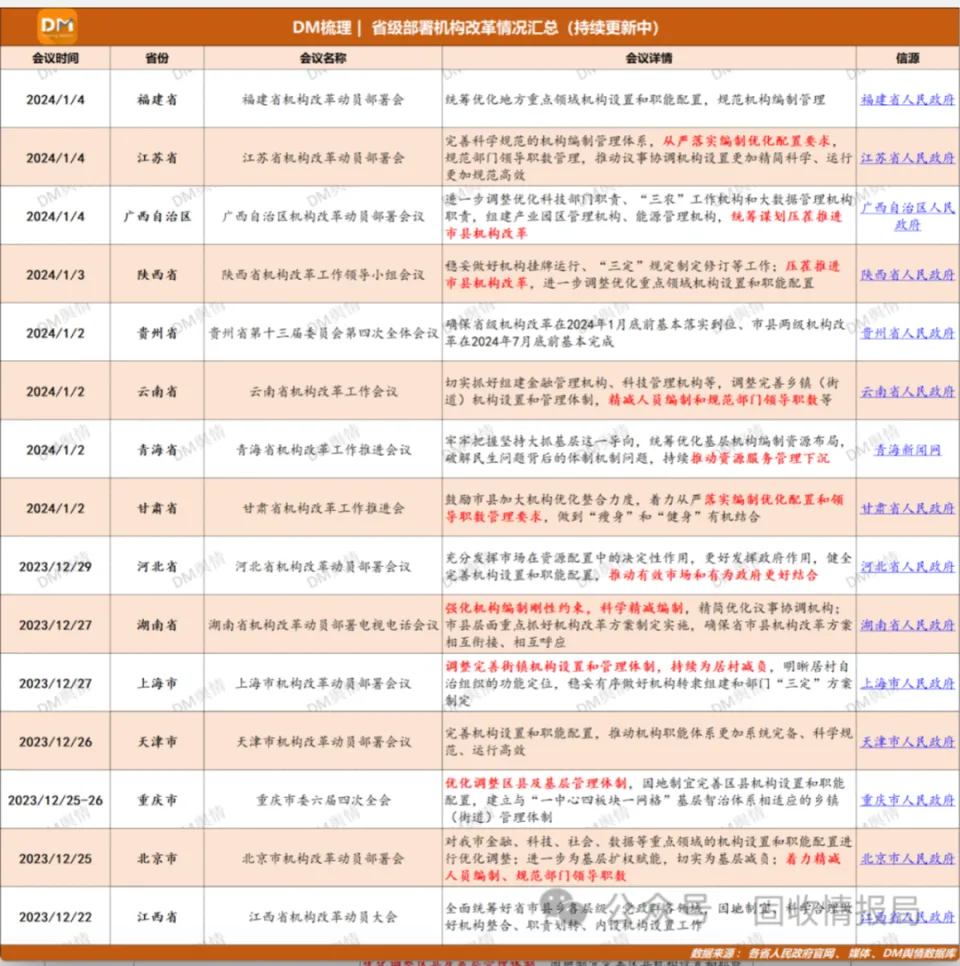 作者:余飞 01 砸碎铁饭碗序幕已经拉开 关于机构体例改革,客岁我写过很多篇文章先容现状。 这场体例改革,究竟上是由生齿不绝流出、财政状态左支右绌的山西开始。 2020年4月,在山西省选取了忻州市河曲县、临汾市浮山县、太原市娄烦县、吕梁市石楼县、晋中市榆社县、长治市黎城县6个生齿不敷20万的小县开启整编改革试点。 克制客岁,太原市娄烦县,改革前35个机构,改革后精简了13个,只保存了22个机构,相称于精简了37%。古迹单位从之前的62个精简至40个,精简了35.5%。 而娄烦县2022年的GDP为45亿元,常住生齿88850人,财政收入8.8亿元。 制图:都会财经;根据公开报道梳理 在精简之下,娄烦县精简职员体例341名,下沉州里职员体例56名,节省职员经费3410余万元,运行经费约990万元。 石楼县精简力度同样大,党政机构精简了37.1%,古迹单位精简了31.1%。节省了5000多万元的开支,职员经费镌汰了2200多万元。 河曲县、浮山县亦是云云。 山西拉开序幕之后,叠加三年黑天鹅大被页粳期间财政收入有所下滑,经济复苏压力举步维艰,于是在客岁年初,中心定调了全面机构体例改革的方案。 客岁年初,官方发布的《党和国家机构改革方案》中明确提出: 中心国家构造职员体例精简5%的目的,还要求地方也要动手精简。地方党政构造职员体例精减工作,由各省(自治区、直辖市)党委团结现实研究确定。县、乡两级不作精减要求。 之后各地连续开始实行。 中心机构方面: 最新据中国机构体例网10月12日披露,中共中心办公厅、国务院办公厅发布调解相干国务院构成部门、直属古迹单位职责机构体例的关照,涉及工业和信息化部、生态环境部、国家卫生康健委员会、中国人民银行、中国社会科学院等。 此中心行核减了30名行政体例、6名司局级领导职数。 地方上: 山西省忻州市河曲县、临汾市浮山县、太原市娄烦县、吕梁市石楼县、晋中市榆社县、长治市黎城县6个生齿不敷20万的小县,早在2020年就开启了整编改革试点。 本年,湖南省古丈县、安徽省4个常住生齿较少的县(区)、青海省果洛藏族自治州玛多县、江苏、湖南、湖北、内蒙古、江西等都已经开展了整编改革试点。 别的,尚有一大批地区正在清退编外职员。 02 速率在加速 客岁只是个开始,就如今的环境来看,机构体例改革的速率正在加速。 根据公开资料表现,自2023年12月以来,至少已有江西、北京、天津、湖南、贵州、上海、河北、甘肃、云南、江苏、青海、陕西、广西、福建、四川、湖北、重庆、广东等18个省份相继召开集会,摆设、动员机构改革工作。 根据重庆日报披露,重庆市机构改革方案克日已经党中心、国务院允许。1月9日,重庆市机构改革动员摆设集会召开。 别的,南方日报披露,中心批复同意了 《广东省机构改革方案》,广东省机构改革进入全面实行阶段。1月9日,广东省机构改革工作集会在广州召开,对有关工作举行法员摆设、推进落实。 显然,客岁拉开序幕之后,本年这场机构体例改革,将自上而下在天下范围内大规模睁开。 从客岁的案例来看。机构体例改革,一样平常都是缩减机构部门,吞并一些职能重复,大概任务轻巧的部门。 比如客岁举行机构体例改革的青海省玛多县。 玛多县将改革前的25个党政机构整合设置为20个,此中党委机构6个、当局工作部门14个,较改革前精简了5个机构,精简比例为20%。 内里究竟有没有裁剪体例职员,裁剪了多少,没有公布。 别的,尚有一些编外职员,也会遭遇开除或辞退。 客岁哈尔滨就发布文件,要求清退编外职员,力度按照空编率来实行,空编率越大,清退力度越大。 空编率5%-15%,编外用人精简5%;空编率15%-25%,编外用人精简10%;空编率大于25%,编外用人精简15%。 03 为何要举行机构体例改革 老话说得好,钱不是全能的,但没钱是千万不能的。 机构体例改革的本质,用普通的话说,就是钱的压力。一方面,是财政收入承压,一方面是冗员付出加大,一方面是地方债务压力加大。 尚有一个缘故因由,就是生齿通缩下,倒逼机构紧缩。 在之前的文章中,我夸大过多次,纵观汗青,每个朝代承通常久之后,都会陷入冗员和巨大的财政付出困难。 整理吏治,是每个王朝的告急任务之一。 宋朝仁宗年间由范仲淹主导的庆历新政,神宗年间王安石主导的熙宁变法,目的之一就是裁撤冗员,为国家镌汰财政付出。清朝雍正年间的整理吏治,同样云云。 体制内职员越来越多,国家财政就越来越大,不堪重负。 看一组数据。 有机构算过一笔账: 中国财政中,向当局雇员付出的劳动报酬占当局可支配收入的比重在近十年来不绝上升:从2012年的33%左右,进步到了2019年的高出50%,再到2020年以后的高出60%。 比如某西部省份生齿小县,总生齿仅4万余人,但财政供养人数近2500人,全县总生齿数与财政供养职员比例为16.9:1。 这种状态放在已往经济整生日上、财政狂奔的年代,大概还可以运转自若。然而,在表里环境厘革的本日,必须要举行机构体例改革才行。 从财政角度来看,我们的财政在黑天鹅平复之后,2023年增长不错,但结构性不确定性仍较大。 财政部公布的2023年前11个月数据表现,其分别的税收,13个项目中有9个在降落,包罗国内消耗税,企业所得税,个人所得税,入口货品增值税与消耗税,出口退税,印花税,资源税,城镇地皮使用税与地皮增值税与耕地占用税,环境掩护税。 泉源:财政部 透过这些税收降落的项目,着