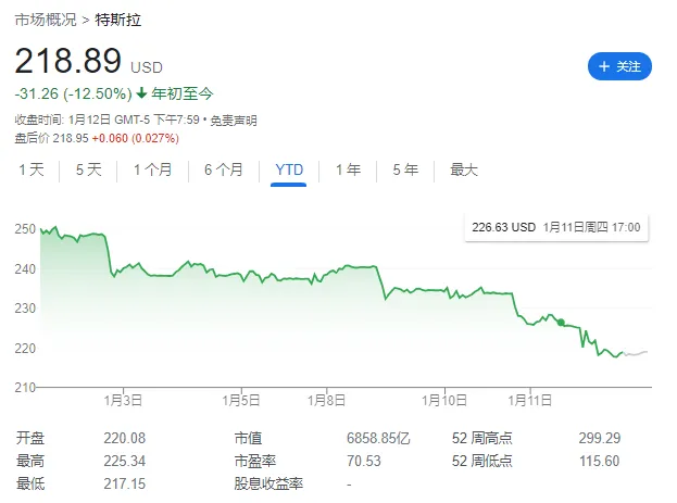 2023年,特斯拉“风头无两”,股价一年翻倍。但2024年伊始,特斯拉却惨遭“滑铁卢”。开年以来,特斯拉股价跌幅已达12%,创2016年以来最差开年表现。 已往两周,特斯拉市值已蒸发逾940亿美元。多重利空消息接踵而至:汽车租赁巨头赫兹对电动车市场的态度大变、在中国市场再次贬价,以及美国本土劳动力本钱出现上升迹象。 不外,在市场广泛看衰特斯拉的配景下,ARK Invest的掌门人“木头姐”凯西·伍德却逆市加仓。1月11日和12日,“木头姐”旗下旗舰基金ARK Innovation ETF(ARKK)分别买入94733、93654股特斯拉股票,累计加仓近19万股。 特斯拉开年即贬价、租车巨头赫兹“抛盘”与2023年年初操纵如出一辙,特斯拉在2024年年初再次贬价。 此中,此中,特斯拉中国Model3焕新版(后驱版本)和中国Model3焕新版(长续航版本)降幅分别到达1.55万元和1.15万元;Model Y(后驱版本)和Model Y(长续航版本)售价降幅为0.75万元和0.65万元。 自2023年初以来,特斯拉不停在大幅贬价以刺激需求,其效果是对其曾经高企的利润率不停腐蚀。三季度,特斯拉汽车毛利率从一年前的27.9%降落到16.3%。而且,在美国的工厂工人得到加薪后,特斯拉的利润压力大概会越来越大。 泉源:见智研究 本周,租车巨头赫兹“抛盘”电动车的消息亦使不少投资者惊出“一身冷汗”。华尔街见闻提及,赫兹本周公布出售其三分之一美国市场电动车队伍,这引起了市场对电动汽车担当度的担心。 不外,这更多是租车市场的题目,而非特斯拉自身。考克斯汽车(Cox Automotive)发布的数据表现,2023年,美国电动汽车销量同比增长45%,市场需求依然强劲。 除了特斯拉自身因素外,市场还受到其他因素影响。分析以为,美国10年期国债收益率微升至3.94%以上,反映出消耗者通胀超预期,这打击了部分投资者对美联储即将降息的信心,对特斯拉股价倒霉。 这是由于,较低的利率不光有助于举高股票估值,还可以低落汽车融资本钱,资助特斯拉和其他公司贩卖更多汽车。 别的,投资者的“避税计谋”亦大概是特斯拉开年股价走疲的另一影响因素。2023年特斯拉股价翻倍,一些投资者为了耽误缴税,选择新的一年才抛售股票。不外,市场分析以为,这种计谋对股价的影响相对有限。 特斯拉为ARKK第二大持仓 仅次于coinbase现在,特斯拉是ARKK的第二大持仓股,约占投资组合的8%,仅次于该基金第一大持仓股Coinbase。 另从技能分析的角度看,近期特斯拉股价跌破200日均线(约231美元),表现出市场对电动车定价、竞争以及利率方向的担心。 Fairlead Strategies团结首创人和市场技能分析师Katie Stockton分析称: “特斯拉跌破了其200日移动均匀线,这增长了股价下行的风险,下一个更为紧张的支持位在208美元附近”。 |