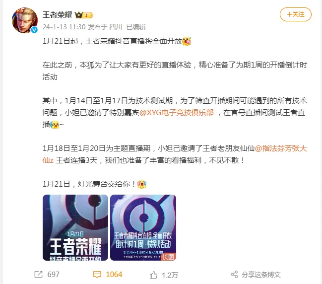 1月13日,王者光彩通过官方微博公布,《王者光彩》官方公布1月21日起将全面开放抖音直播。此中,1月14日-17日为技能测试期,为了筛查开播期间大概遇到的全部技能题目。1月18日-20日为主题直播期,王者头部主播张大仙将连播3天。 腾讯和字节跳动由于侵权题目纷争不停,《王者光彩》于2019年在抖音全面禁播,距今已然近5年,本次复播意味着双方的抵牾淡化。 腾讯《王者光彩》与抖音直播的辩论还要追溯到2016年,腾讯其时以涉嫌侵占《王者光彩》著作权为由将本日头条公司及其母公司字节跳动诉至广州知识产权法院。 2019年,法院以为腾讯有富足证据证明西瓜视频App有直播《王者光彩》的活动,终极裁定干系公司自2019年1月31日制止直播《王者光彩》游戏。 民事裁定书表现,2019年1月31日,法院作出禁令,裁定与“西瓜视频”App干系联的“运都会阳光文化传媒有限公司”、“本日头条有限公司”、“北京字节跳动科技有限公司”三家公司立即制止“西瓜视频”App直播《王者光彩》游戏内容。 据“抖音和ta的朋侪们”官方微信此前消息,抖音和腾讯视频将告竣互助,双方将围绕黑白视频联动推广、短视频二次创作等方面睁开探索。 另据逐日经济消息客岁12月报道,SensorTower市肆谍报数据表现,2023年11月腾讯《王者光彩》在举世AppStore和GooglePlay吸金1.93亿美元,连任举世手游脱销榜冠军。 (泉源:读特客户端综合) |