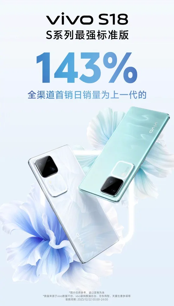 此前,vivo S18开售后,官方消息表现,“vivo S18, S系列最强尺度版!全渠道首销日销量为上一代的143% ,冲破S系列汗青首销增长记录”。