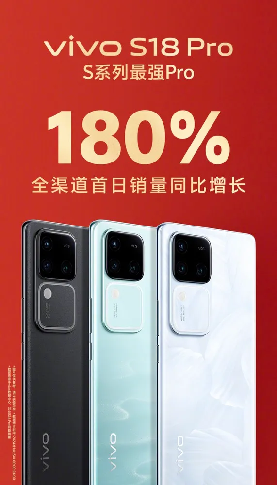 本日,vivo再次发布消息表现,“vivo S18 Pro开售一骑绝尘,首销日销量同比增长180%。