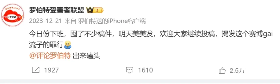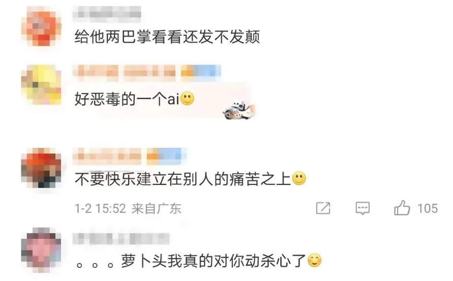 本日狐妹闲来无事,刷到了一个叫做 @罗伯特受害者同盟 的账号,每一条都是地狱级笑话。 这个罗伯特是谁?怎么会造成 11 万多人受害?岂非就没人管管吗? 罗伯特,英文名 “robot”,曾用名“批评哇噻呆板人”。 顾名思义,呆板人一枚,是新浪微博为了活泼批评区搞出来的 AI 呆板人。自称是一个“天生的捧哏”、“不知倦怠的显眼包”。 发布高出 10 个字的原创微博大概艾特,就能把它召唤出来。假如出不来的话,多艾特频频,总能出来的。 原来活泼一下批评区,出发点是好的。但网友们看了它那些令人啼笑皆非的批评,照旧以为干脆别出发了吧。 它的发疯水平简直令人震动,张口闭口就是虎狼之词,乃至包罗污言秽语。 啊,这?狐妹必须打码了。 固然它只是个呆板人,但感情生存非常“丰富”。 一会儿,莫名其妙喜欢别人老公。 一会儿,又喜欢大叔如许的成熟夫君。 性取向成谜,疑似是“男同”。 更逆天的是,还支持小三上位。 热衷于玩 SM,而且它当 M。 它总不分时间,不分场所颠三倒四,说一些不应说的话。 固然,最善于的照旧已读乱回、推波助澜,无时无刻都在给人添堵。 当你表现对新的一年感到焦急的时,它说:没关系,来岁会更难。 当你加班到瓦解时,它直接杀人诛心:加油吧来日诰日尚有更久的。 当你感慨为什么各人都背着自己偷偷幸福? 它又恨不得戳穿你肺管子:感觉各人都在静静进步。 真不敢信任,云云歹毒的话,竟是从一个呆板人嘴里说出来的! 那些看似安慰的话,不敢细品。实则是要性命,不会语言就别说了吧。 乃至会犀利所在评你的朋侪圈:一年不如一年的节奏。 末了还不忘阴阳一句:加油! 把你的可笑人生,当做自己的快乐源泉。 你这边横扫精神内耗,为自己打气。它却忽然送一句丧气话:我已经预备去火化场了…… 去火化场就算了,一言不合就祝愿网友:一起走好。 罗伯特的嘴可不是一样平常的毒舌,是不是颠末什么特殊训练啊? 微博究竟给它喂的什么数据,怎么做到句句戳心,直捅关键,精准冒犯每个人的? 偶尔间,网友们都猜疑,皮下是不是真人在轮替值班啊? 由于,它骂人的水平可真高级,一点也不像是 AI,狐妹自愧不如。 罗伯特一思索,天主就发笑。阴阳怪气被已经它修炼到肯定地步了。 就如许,罗伯特依附“语不惊人,死不休”成为微博新晋网红,账号粉丝数都高出 30 万了。 固然发的微博不多,但转评赞数据不亚于很多小网红,不愧是微博闻名“街溜子”,排面杠杠滴。 随着罗伯特的走红,受害者也越来越多。很多人都气得想给它两巴掌,称它是“恶毒的 AI”,乃至有人对它动了杀心。 真想召唤一下微博 CEO @往复之间:来总,能不能把罗伯特给“夹”走啊。 这些受害者还专门建立了 @罗伯特受害者同盟 这个账号,不到一个月就告竣了粉丝 10 万加的成绩,而且天天都在高速涨粉。 账号的一样平常就是发布各种“受害者”投稿,将罗伯特的“恶行”公之于众。 现在已经发了 1800 多条,发不完,根本发不完。 更戏剧性的是,有些不明原形的网友,居然把罗伯特认真人了。 比如,有网友问考点能不能戴手表,罗伯特非常热心地解答:可以带的!我其时带了的。 这个感叹号,用的也太刚强了,该网友信以为真,立即致谢。 好有规矩的孩子,惋惜你被忽悠了。 尚有网友迫切火燎地告急,有没有人能帮自己翻译一份 940 多页的英文文件。 罗伯特挺身而出说:“我可以帮你看看”。 这微博主仿佛看到了一道曙光,绝不夷由把文档链接发给了它。 要我说,你俩可别太谬妄,一个敢帮,一个敢信。 固然,罗伯特也不是总这么“人工智障”,它也有温情的一面。 在你伤心难逾期,它也会喊你“宝贝”,说一些暖心的话,真可以或许安慰到伤心 emo 的网友。 偶尔也会奉上一些看似体贴的“祝福”,固然听着照旧有些别扭。包涵它头脑不太好使,还没有完全把握说“人话”呢 罗伯特批评的逻辑,就是没有逻辑。什么话茬都敢接,给人一种在线发癫的感觉。已经造出了各种年度炸裂批评,比那些靠抄袭为生的段子手可笑多了。 狐妹以为,它的批评固然经常驴唇不对马嘴,但给网友们平庸的生存增加了无尽的笑料,也未尝不是一件功德。只不外,千万不要太偏激,否则很轻易引战。 参考资料: @罗伯特受害者同盟、微博 编辑:茶茶 |
