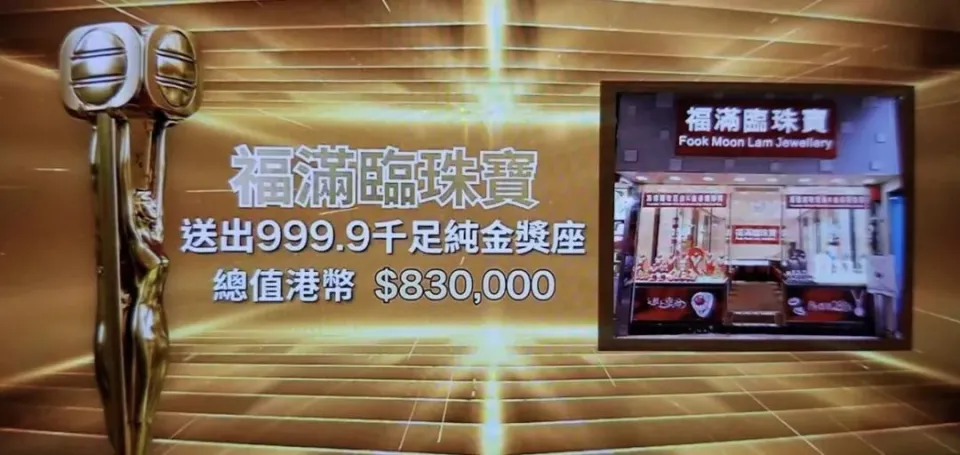 翻查资料,TVB上届公布得奖者奖座由某珠宝品牌商赞助,是“999.9千足纯金奖座”,总值港币83万元。