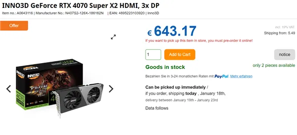 1月17日晚,RTX 4070 SUPER希奇上市,依附不错的代价和性能被以为是一款“本心卡”,但没想到仅仅一天,它就破发了! 在波兰,耕升的RTX 4070 SUPER Ghost标频版官方订价2999兹罗提,但零售平台X-Kom已经打出了2849兹罗提的破发价,降幅为5%。 风趣的是,RTX 4070在当地客岁9月曾降至2880兹罗提,现在低至265兹罗提左右。 也就是说,RTX 4070 SUPER已经比三个月前的RTX 4070还要自制了。 这还不是个例。 在德国CSV,映众的RTX 4070 SUPER TWIN X2,原来应该卖659欧元,结果最低压到了643欧元,降幅近3%。 别的在澳大利亚DiTech,照旧映众的RTX 4070 SUPER TWIN X2的代价一度被卖到了629澳元,相比659澳元的尺度代价低了约莫4.6%。 固然这都是个别零售商、个别产物,不代表团体形势,但也开了一个很欠好的头,暗示之后RTX 4070 SUPER的代价大概不会那么坚挺。 又是等等党的胜利? |