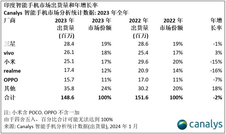 印度不停以来可谓是小米的福地,资助小米在外洋市场扛起了销量大旗,以致雷军最为着名的“Are you OK?”也是出自一次在小米在印度的发布会。 不外根据Canalys关于印度智能手机市场的调研陈诉体现,小米2023年在印度市场的体现不如人意,销量已经被三星和vivo反超,从客岁的市场排名第一掉落至第三。 陈诉体现,印度智能手机市场在2023年整年出货量到达了1.486亿部,相较于客岁微跌2%。三星出货量到达了2840万台,以19%的市场份额与客岁持平,拿下了第一;vivo是前五名中唯一实现正向增长的手机品牌,以2610万台出货量排名第二。 小米印度市场2022年出货量为2960万部,然而2023年销量大跌15%至2510万部,被三星和vivo反超,排名第三。小米在印度市场份额暴跌,有多方面缘故原由导致。 好比在2023年年初,小米印度市场的负责人马努·库马尔·贾因便公布离开公司,小米印度市场人事层面有了巨大变动;之后小米又被印度执法局控诉“向外国实体非法转移资金”,扣押约48亿人民币,这都对小米在印度市场的体现造成了较大的影响。 前小米印度市场负责人马努·库马尔·贾因 实在印度当局不但针对小米,OPPO、vivo等中国手机品牌也都被以各种缘故原由刁惆怅。不外现在看榜单,市场前五的品牌,中国手机品牌占据四席。特殊是如果OPPO将realme的市场份额一同盘算在内,那么现实的市场份额到达了23%,是可以或许逾越三星位列第一的。 |