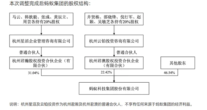 每经记者:涂颖浩每经编辑:马子卿 根据国家企业名誉信息公示体系信息,1月22日,蚂蚁科技团体股份有限公司第一大股东杭州君瀚股权投资合资企业(有限合资)发生工商变更,杭州星滔企业管理咨询有限公司为合资人及实行事件合资人,杭州云铂投资咨询有限公司退出合资人及实行事件合资人。 现在,杭州君瀚股权投资合资企业(有限合资)由杭州君洁股权投资合资企业(有限合资)、杭州星滔企业管理咨询有限公司、马云、谢世煌共同出资。杭州星滔企业管理咨询有限公司由马云、韩歆毅、张彧、周芸、黄辰立各持股20%。 1月22日,杭州君瀚股权投资合资企业(有限合资)原股东杭州云铂投资咨询有限公司也发生工商变更,马云、蒋芳、胡晓明退出股东行列,新增倪行军、吴敏芝、赵颖、邵晓锋为股东。现在,该公司由井贤栋、倪行军、赵颖、邵晓锋、吴敏芝各持股20%,该公司为杭州君澳股权投资合资企业股东。 2023年初,蚂蚁团体公告称,重要股东及干系受益人拟对蚂蚁团体股东上层布局举行调解。马云及其划一举措人已签署协议,停止在杭州云铂投资咨询有限公司(以下简称“云铂投资”)投资层面的划一举措关系。同时,蚂蚁团体的重要股东杭州君瀚和杭州君澳由受同一家平凡合资人企业(云铂投资)控制,分拆为受两家差异平凡合资人企业(云铂投资和杭州星滔)分别控制。 根据公告,云铂投资和杭州星滔作为杭州君澳、杭州君瀚的平凡合资人,不享有任何泉源于蚂蚁团体的经济长处。本次调解后,蚂蚁团体各重要股东相互独立利用股份表决权且无划一举措关系,不再存在任何直接或间接股东单一或共同控制蚂蚁团体的情况。 逐日经济消息 |