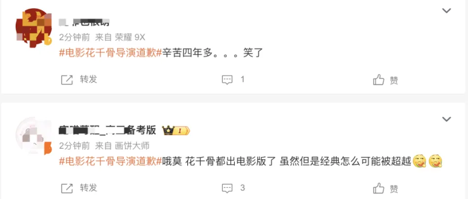 1月24日,话题“影戏花千骨导演致歉”冲上微博热搜榜首,引发关注。 据悉,由于影戏票房不及预期,影戏版《花千骨》导演张超剃头布视频致歉。称因票房非常不抱负,对此感到很不测也很愧疚,以为本身对不起制片人和团队同伴,以为本身4年多的积极和付出没得到回报。 导演致歉:四年的付出没有得到回报 影戏《花千骨》是由张超理执导,陈都灵、李程彬领衔主演,茅子俊特殊出演,陈晓东、张丹峰、张俪友谊出演的东方奇幻影戏。该片制片人为唐丽君,同时她也是电视版《花千骨》的制片人。 不外,影片于1月20日上映后票房并不抱负,据猫眼影戏专业,前4天该片票房总计505万元,制止1月24日16时,影片票房520万元,而推测本地总票房仅为761.6万元。 面对如许的环境,在上述视频中,张超理称,非常感谢已经走进影戏院的朋侪们,同时我也很关心票房,知道很不抱负。 “这让我很不测,此时现在我感觉很愧疚,对不起我们的制片人,辜负了他的信托,同时也对不起团队的同伴们。我以为四年的付出没有得到回报,在这里我要跟各人说一句对不起。”张超理哽咽体现。 张超理说,“大概有很多朋侪没有关注到影戏上映的消息,或对影戏没有抱有等待。但是,我想要说的是,我们影戏作为2020年第一批复工的影戏,履历了太多太多的困难。终极可以大概在影戏院跟各人晤面,已经优劣常的不容易,以是我衷心盼望各人可以大概走进影戏院支持与查验。” 该影戏制片人唐丽君则发文体现,“票房与预期中的相差太远,但我们还在积极。” 唐丽君称,这部片子确确实实存在着一些瑕疵,但是整个主创团队包罗演员都是满怀敬畏以及对艺术的挚爱投入到作品的创作及拍摄中去的。剧版在先,不免会被比力,以致被质疑。“我也在反思,在提示本身,创作是必要付出更多积极的。我能明确各人对《花千骨》的爱之深,恨之切。” 不外,从网友批评来看,该致歉并未得到网友明确。 CCTV6点名“开年第一烂”吗? 提及“花千骨”这个IP,大多数人第一时间想到的,肯定是电视剧《花千骨》。2015年的暑假,赵丽颖、霍建华领衔主演的这部仙侠剧引爆荧屏,收视率、网播量双创新高,一众演员人气暴涨,带红多个网络热梗,成为大IP产业链转化的代表之作,至今还是很多观众心目中的古偶“白月光”。 1月23日,剧版《花千骨》主演赵丽颖也在微博发布了影戏版《花千骨》宣传海报,并配文“九年睽首,支持制片人唐姐姐”。 不外,影戏《花千骨》却没有得到电视剧一样的好口碑。据都市快报报道,此前,央媒本日影评即辣评影版《花千骨》:真的是“开年第一烂”吗? 网友也纷纷吐槽: 小彭Chun :翻拍的到底有什么意思,剧情都看过一遍了。为什么还要费钱去再看一遍? 冰冰岛也没有避世的小镇 :我去看了,跟姐妹包场,全程笑到末了,男主演技尬死我了。 侃侃928:这种影戏其时准备拍的时间就应该知道会是这种环境。电视剧版本是霍建华和赵丽颖啊,你们怎么比,看过电视版的肯定就对影戏里无感啊。 hi-本日气候晴:女主演技这么拉闸,男主又丑,谁想去看啊? 据悉,该影片是由新派系(上海)文化传媒有限公司、广西凡世通文化旅游开辟有限公司、浙江秀合传媒团体有限公司、上海瀚舟思文化发展有限公司、新疆新卡斯影业有限公司、楚伦影业(北京)有限公司出品,江西省东然影业团体有限公司、花生映像传媒(广州)有限公司、浙江沐阳影视科技有限公司连合出品。 该影片由影聚天涯影视发行(天津)有限公司发行,保利影业投资有限公司、广西广文影戏发行放映有限公司、武汉天工开物影业有限公司连合发行。 编辑|何小桃 杜恒峰 校对|卢祥勇 逐日经济消息综合都市快报、证券时报、消息晨报等 逐日经济消息 |