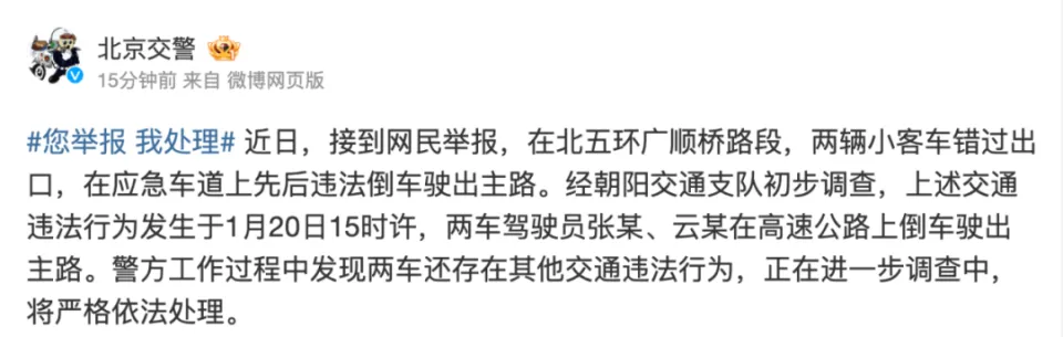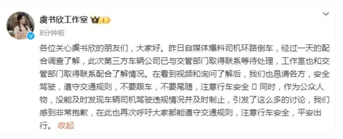 1月26日,虞书欣工作室发文致歉,详情如下: 各位关心虞书欣的朋侪们,各人好。昨日自媒体爆料司机环路倒车,颠末一天的共同观察相识,此次第三方车辆公司已与交管部门取得接洽等候处置惩罚,工作室也和交管部门取得接洽共同相识环境。在看到视频和扣问相识后,我们也恳请各方,安全驾驶,服从交通规则,不要跟车,不要尾随,注意行车安全。同时,作为公众人物,没能实时发现车辆司机驾驶违规环境并实时克制,引发了这么多的讨论,我们感到非常歉仄,在此也再次命令各人都能服从交通规则,注意行车安全,安全出行。 此前报道,有网友爆料:女星虞书欣从机场到北京市区时,司机在高速上错过出口,在高速应急车道违规倒车,其跟在车后的粉丝,也用同样的方式倒车下高速。视频一经曝光后,登上微博热搜。 1月26日,@北京交警发布微博:克日,接到网民举报,在北五环广顺桥路段,两辆小客车错过出口,在应急车道上先后违法倒车驶出主路。经向阳交通支队开端观察,上述交通违法举动发生于1月20日15时许,两车驾驶员张某、云某在高速公路上倒车驶出主路。警方工作过程中发现两车还存在其他交通违法举动,正在进一步观察中,将严格依法处置惩罚。 高速上倒车,到底多可骇? 《中华人民共和国蹊径交通安全法实行条例》第八十二条规定:机动车在高速公路上行驶,不得有倒车、逆行、穿越中央分隔带掉头大概车道内停车的举动。 我国蹊径交通安全干系法律法规还规定:驾驶机动车在高速公路上倒车、逆行、穿越中央分隔带掉头的,驾驶证一次性记12分。 如果以90km/h的速率在高速公路上行驶,逆行时与对向车辆的相对速率为180km/h,这大概导致汽车会像纸片一样被巨大的打击力撕成碎片,在此环境下,车上职员生存的时机,险些即是:零! 高速上已经走错路了怎么办? 发现错过出口后,千万不要在路上停车、倒车乃至逆行,高速上车辆的车速通常很快,如果火线车辆忽然停车,后方车辆很轻易因避让不及发生追尾,同时也轻易引发连环追尾事故。 “将错就错”——发现本身即将错过高速出口,而且已经不具备变道驶入出口匝道条件时,就坦然前行至下一出口下高速,然后重新规划本身驶往目标地的蹊径即可。固然多花了一些时间,但克制了因强行变道给本身与他人的生命安全带来伤害。 泉源:@虞书欣工作室、@北京交警、红星消息 |