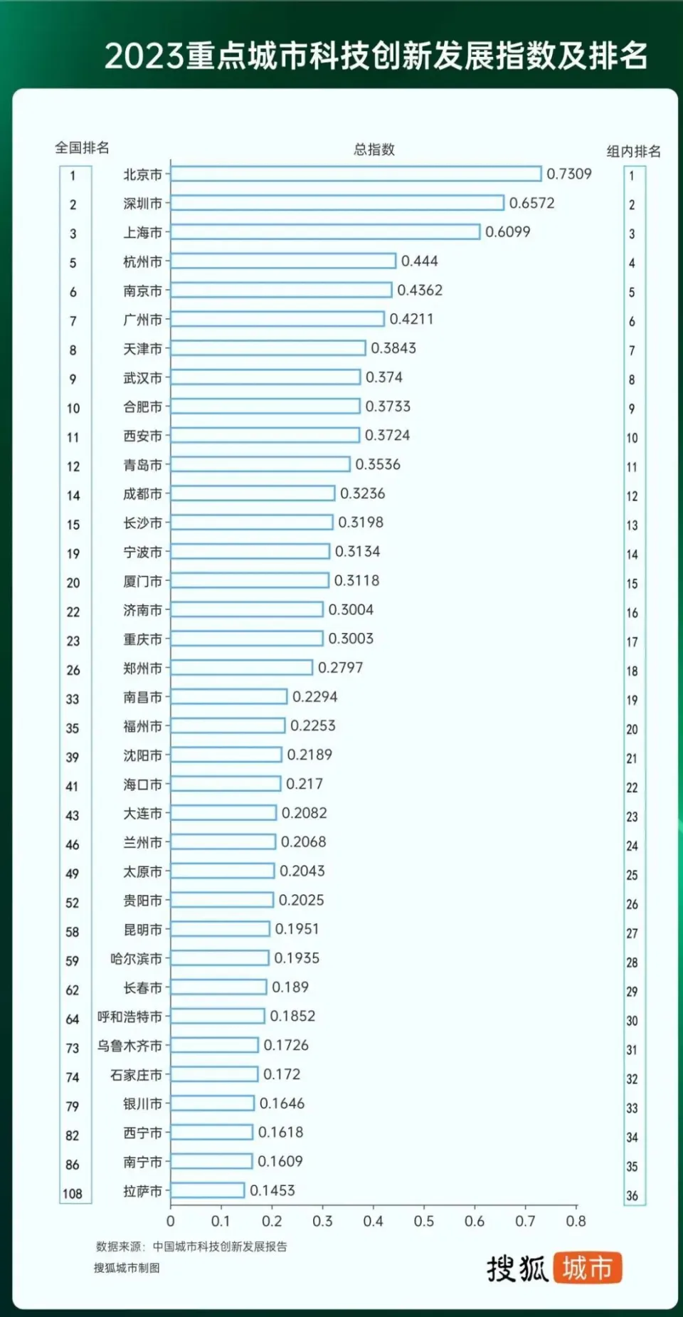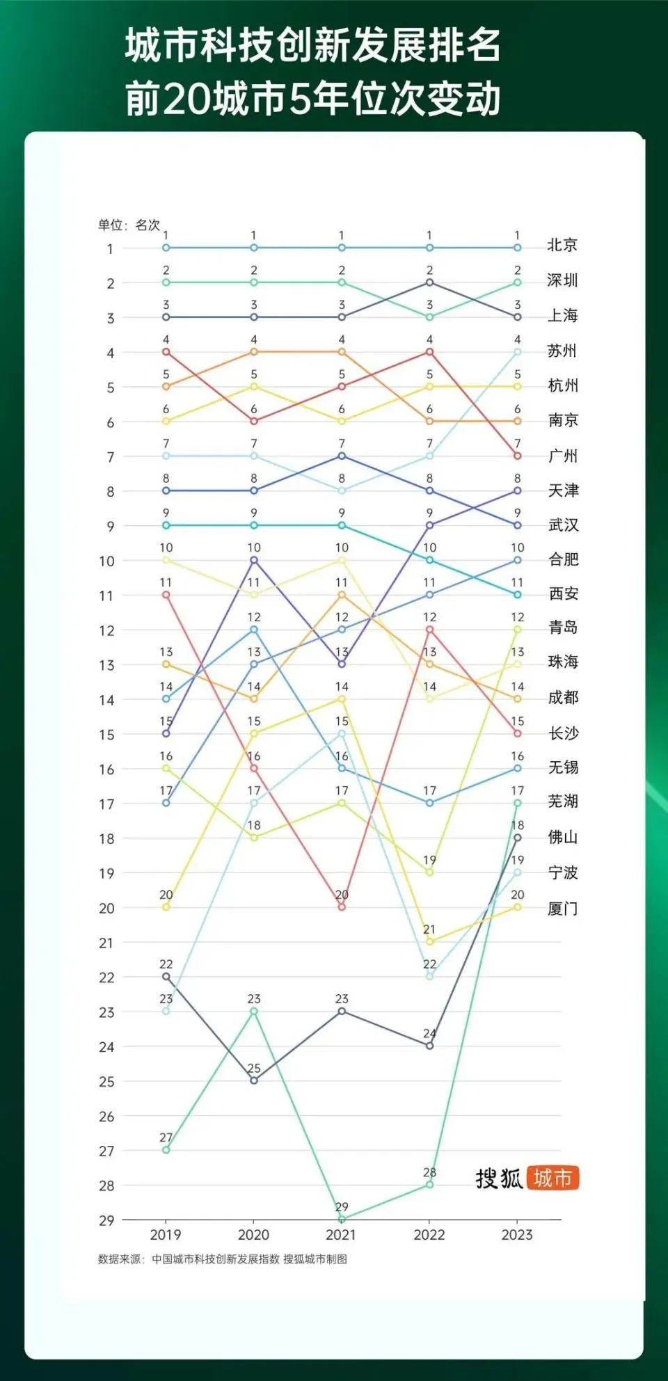 1月28日,中国都会科技创新发展陈诉(2023)(以下称“陈诉”)在京发布。陈诉表现,2023年,中国都会科技创新排名前十的都会依次为北京、深圳、上海、苏州、杭州、南京、广州、天津、武汉、合肥。 十强都会中,北京稳居榜首,深圳逾越上海重返天下第二。合肥排名近5年稳步提升,初次进入天下十强。西安由2022年的第十名降落一名,2023年跌出前十。 陈诉选取天下288个地级市举行对标分析,以期全面描绘中国都会创新地理。据悉,陈诉自2017年开始研究,并每年由都城科技发展战略研究院对外发布。 芜湖“腾飞” 合肥稳步蹿升 2023年中国都会科技创新发展指标体系由三个条理指标构成,此中,一级指标共4个,包罗创新资源、创新环境、创新服务、创新绩效;二级指标共10个,包罗创新人才、研发经费等;三级指标共21个。 根据陈诉,2023年,中国都会科技创新排名前20的都会依次为:北京市、深圳市、上海市、苏州市、杭州市、南京市、广州市、天津市、武汉市、合肥市、西安市、青岛市、珠海市、成都市、长沙市、无锡市、芜湖市、佛山市、宁波市、厦门市。 20强都会中,芜湖市、青岛市、佛山市、苏州市、宁波市5座都会表现亮眼,分别跃升11位、7位、6位、3位、3位;上海市、武汉市、西安市、成都市均降落1个位次;广州市和长沙市降落3个位次。 从5年时间跨度来看,芜湖市、天津市、合肥市跃升显着,分别跃升10位、7位、7位,青岛市、佛山市、宁波市均跃升4位,苏州市和杭州市分别跃升3位、1位。 20强都会的分省环境看,广东领衔,共4城进入TOP20,分别为深圳、广州、珠海、佛山;其次为江苏,3城进入前20,分别为苏州、南京、无锡。苏粤无愧中国经济最强省份。 苏州断层领先地级市 珠三角制霸都会群 36座重点都会(省会及副省级都会)变动方面,内部排名厘革较大的有4城,此中海口由2022年的32名上升至2023年的22名,提升10名,涨幅领衔36城。别的,长春、呼和浩特、拉萨内部排名均下跌10名,跌幅较大。 36城天下排名方面,西宁排名涨幅较大,由2022年的101名升至82名,提升19个位次,涨幅领衔。海口以17个位次的涨幅紧随厥后。 别的,拉萨、呼和浩特、长春、石家庄、昆明、太原天下排名降幅较大。 地级市层面,经济最强市苏州,在科技创新发展方面同样闪亮,总指数为0.509,为地级市中总指数唯一超0.5的都会,天下排名第四。 别的,地级市2到10名的都会依次为珠海市、无锡市、芜湖市、佛山市、东莞市、常州市、嘉兴市、惠州市、温州市。 4个一级分项指标中,北京、上海、深圳牢牢占据创新环境、创新服务、创新绩效三项指标前三强。在创新资源排名指标方面,合肥仅次于京深,高于苏州,位列天下第三。 分都会群来看,2023年,珠三角都会群(0.8735)、长三角都会群(0.7102)、京津冀都会群(0.5260)毫无牵挂引领中国19大都会群。 从年度排名颠簸环境来看,珠三角、长三角、京津冀3大都会群与2022年排名保持划一;呼包鄂、哈长、黔中都会群分别降落5名、4名、3名,降落幅度相对较大;兰州—西宁和北部湾都会群排名均上升3位;其他都会群排名颠簸在2位及以内,变动不大。 头部引领 腰部发力 陈诉还根据288个都会科技创新发展指数测算效果,进一步分析了中国都会科技创新总体态势与特性。 陈诉指出,在都会创新高质量发展方面,中国有着极大的规模上风和集聚上风,并出现以下特点: 一是科技创新中央引领发展,体系创新上风显着。 陈诉称,国家先后布局了北京、上海、粤港澳大湾区三大国际科技创新中央。同时,各地不停打造地区科技创新中央,形成了武汉、南京、成渝等地区创新高地。 别的,创新型都会加速创建,23个国家自主创新树模区和178个国家高新区发展速率和质量双提升,形成了多个创新集群,且各有特色,在科技创新方面徐徐出现出体系化上风。 二是差别创新群落各有特色,珠三角都会群勇立潮头。 陈诉称,中国现在已经形成了19个都会群的根本创新群落格局,每个创新群落资源天禀不一,发展进程差异较大,形成了各自的特色上风。 团体来看,以珠三角、长三角都会群为代表的创新群落市场化程度更高,开放程度也更高。2023年,珠三角都会群科技创新指数到达0.8735,在19个都会群中排名第1位。 三是新型举国体制上风显着,会协力气办大事成效显着。 04 空间差异显着 原始创新不敷 在空间差异方面,陈诉指出,差别省域间科技创新差异显着,四大直辖市引领上风显着;差别规模、差别级别都会创新差异显着。科技创新发展程度与都会生齿规模正相干,超大都会科技创新上风显着。 2023年,9个国家中央都会科技创新指数均值为0.4218,显着高于天下均值0.1503。 别的,都会创新短板与上风并存,团体出现“你追我赶”的竞争态势。根据陈诉,一些综合排名靠后的都会,在单项指标方面却具有显着上风。 如宁德市固然科技创新总指数在天下仅排名第65位,但“均匀融资披露金额”指标在天下排名第1位。同时,差别都会在资源力气、财产根本等方面的创新资源天禀各异,陪同差异化、互补性和协同性等特性。 陈诉还指出了我国都会在科创方面存在的题目。 一是面对原始创新本事提升的挑衅。 陈诉指出,固然2018-2022年,国家天然科学基金共资助2138个依托单元各类项目23.67万项,但原始创新本事提升依然面对挑衅。 为改进此类题目,一方面,必要进一步明白重要国家战略科技力气的差异化定位