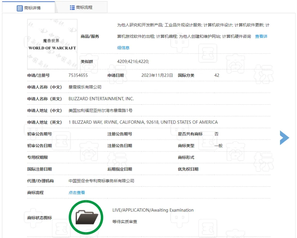 暴雪在2023年11月23日重新注册了魔兽天下WORLDOFWARCRAFT的商标,如今尚未通过,还处于实质查察阶段。 据相识,从客岁7月4日开始,暴雪拥有的“暴雪BLIZZARD”和“魔兽天下WORLDOFWARCRAFT”这两个商标都处于冻结状态,分析称与网之易告状暴雪的纠纷案有关。商标处于冻结中意味着无法利用,而根据查询到的信息,商标冻结的限期最高是6个月。 |