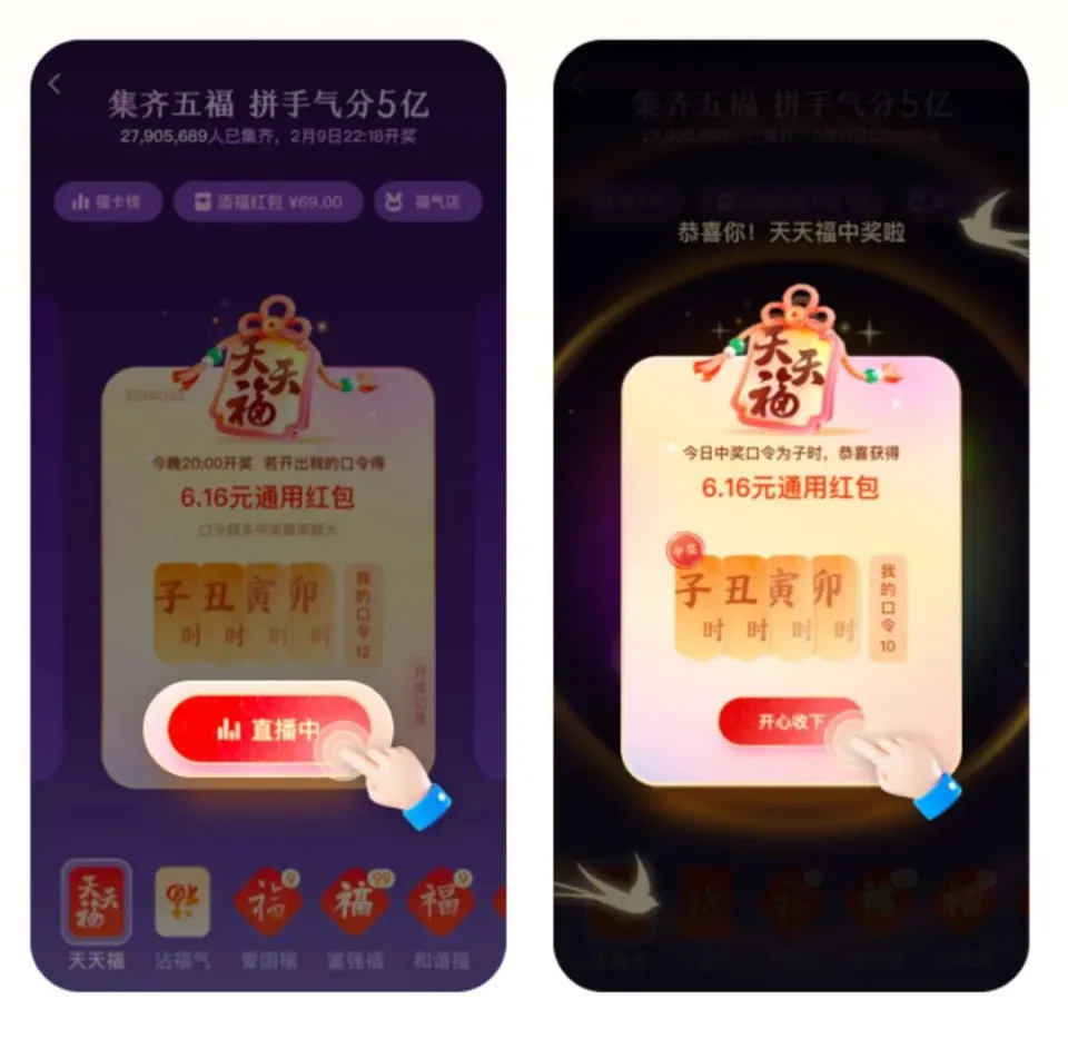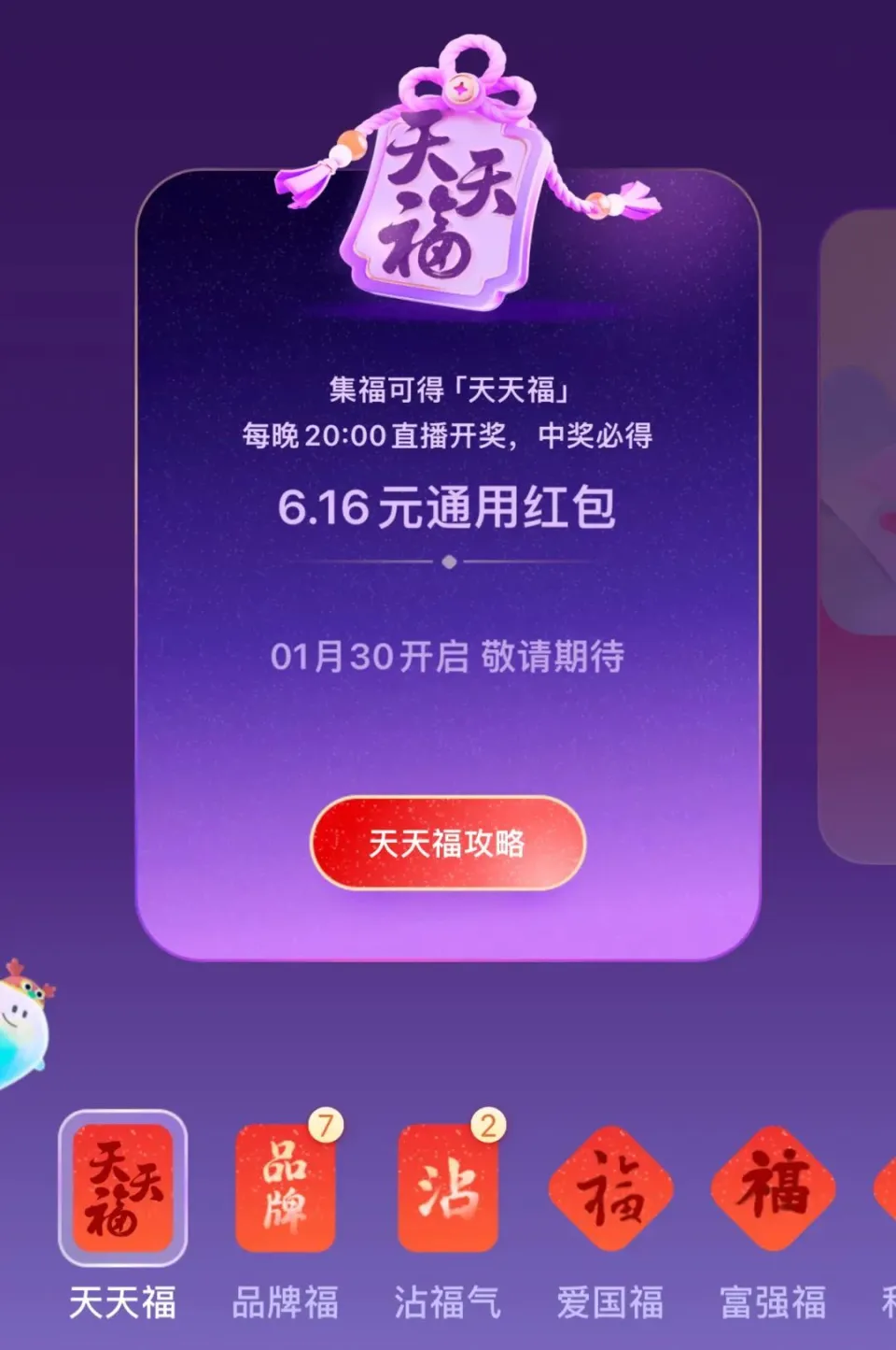 当当,就在本日 0 点,龙年的付出宝五福活动开启了。 本年的「集五福」升级成「五福节」,换了个名字。 和前几年一样,集齐五福只是前菜。 真正把夸奖堆满的玩法,是凑添福红包和各种抽奖。 本年乃至给了个「品牌福」的活动,欧气发作的话抽个华为 Mate 60 都不是题目。 集齐五福 先把经典的五个福卡集齐是最根本的一步。 · AR 扫福 · 找福字得福卡 · 看短视频得福卡 · 蚂蚁森林-收能量得福卡 · 摇一摇 上面这些是官方给出的找福的方式,根本上都是一些通例利用。 着实也是很简单哈,就是给你一张图,从内里找出「福」字。 付出宝你实话实说,你这图不会是用 AI 画出来的吧? 别的看视频得福卡也比往年更折腾了。 这个抽福卡的进度条,最少得跑好几分钟才出一个卡。 具体哪些品牌,官方临时没像客岁那样给着名单。 但许多大牌子都在内里,像麦当劳、肯德基、顺丰这种。 搜索时看到词条反面带个「福」字,就可以进小步伐欣赏 15 秒得福卡啦。 从这几年的集福体验来看,想速攻的难度着实并不高。 看得出来,本年的五福又双叒放水了。 秒得敬业福的小同伴,更是一大堆。 纵然是没有集齐,反面邻比年三十,付出宝也会抢着送给你。 以是集齐五福,简直是手拿把掐的事儿。 既然集齐五福这么简单,根本的夸奖肯定不咋地。 以是,接下来我就要说五福的进阶玩法—— 添福红包 这个玩意儿也不是奇怪东西啦,前两年都有。 点进去能看到一堆任务,完成绩能得到添福红包。 反正也是轻松拿捏的功夫,可以放心搞。 偶然候有些任务,也会自带抽福卡的匿伏入口。 说不定敬业福就能从这些匿伏入口薅返来呢。 但一些开卡啊、投保啊啥的,我这边是发起忽略哈。 别的,咱们还可以通过攒福气值升级,得到添福红包。 点进五福页面下面的「福气之城」,就能看到一个花里胡哨的页面。 玩游戏做任务,就能攒福气值升级。 升级到最高的 5 级,就能「中分 5000W」。 固然哈,由于玩的人也不少,末了分得的大概也就十来块。 每天福 从 1 月 30 日开始,每天集福卡时有概率得到「每天福」。 在每天福里选择口令后,就能坐等当天 20:00 的直播开奖啦, 中奖的小同伴会得 6.16 元通用红包。 品牌福 从本日起到 2 月 9 日,都可以约请挚友激活品牌福。 激活后就能到场抽奖活动。 不外抽奖这些东西都是要看运气的啦,估计大多数人都是像我一样抽到满减红包大概手机壁纸啥的。 大概兑换礼物之类的。 2016 年的首波五福活动,就是简单纯粹地集齐五个福卡。 终极 79 万人中分 2 亿,人均 271.66。 2017 年的 1.68 亿人随机分 2 亿,人均不到 1.2 元。 2018 年,2.6 亿人随机分 5 亿,人均不到 2 元。 反面根本是一样的套路,人均不超 2。 如果不玩附加的添福红包等玩法,分得的红包比咱们广 door 人的红包还少。 玩法越来越复杂,做的事越来越多,分的钱也不见得多,像极了打工的我。 但是话虽这么说,固然每年吐槽五福,但我还是每年五福都不缺席。 毕竟别人集五福是图一乐。 锋潮评测室 |