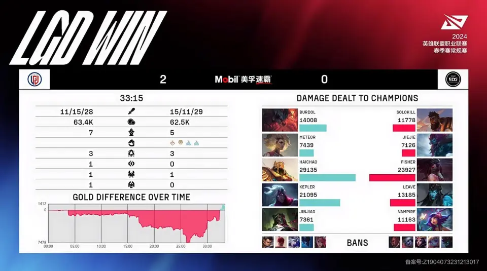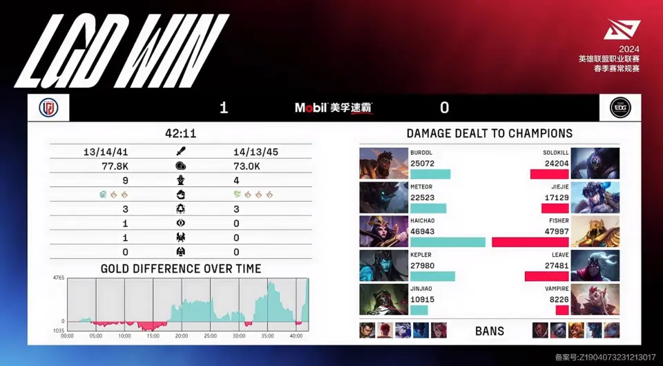 2024年1月30日,LPL春季赛第二周第二个比赛日,EDG对阵LGD,赛前猜测一众讲授都看好EDG在LGD手上拿到赛季首胜,但不意效果却出乎料想,EDG接连两局遭到了LGD的翻盘,赛季依然难求一胜,年前的末了一场他们将挑衅BLG,几无取胜大概。 别的EDG在这个BO3也是启用了小将Solokill作为首发上单。 首局BP,LGD提妖姬的优先级,一手抢下,在对手选择沙皇、维鲁斯的双C后又拿到了卡烈组合,阵容突出一个奥特曼了,第二轮上野也没思量拿个兜底核,而是继承强化前中期,拿到奎桑提、大树。EDG这边告急是第三手的洛个人感觉是挺抽象的,第二轮被BAN掉两个兵士打野后,突出一个对线打不外,打野来帮又感觉没啥伤害。 前期Jiejie发挥出色,上路变奏打出奎桑提一血,二龙团果断的先手击杀大树资助队伍断掉了LGD的龙魂节奏,这实在对LGD如许一套没啥后期本领的阵容来说挺致命的。 今后LGD干脆便放妖姬不绝带,对小龙失去了胃口,两边颠末漫长的运营期以及反复团战的交火,经济根本持平,EDG以致握有更多的小龙,这对于阵容更偏发育的EDG来说已然是上风在我了。 32分钟LGD大龙逼团,Leave化身礼物,明知妖姬在侧翼不绝骚扰的环境下,脱离大队伍直接被大树走脸捆绑,妖姬补足输出率先秒掉对手C位,LGD打出0换2吃大龙。 后续固然LGD依赖大龙BUFF拿到了肯定的经济领先,但EDG扎稳篱笆的团战还是自作粉饰的,LGD开得已经非常好了,但伤害严峻不敷,被EDG打出0换2破掉中路。39分钟EDG再次在中路团战打出0换2,吃下火龙魂。 原来以为这一次EDG的上风是真的很大了吧,但41分钟的大龙团Leave再次被秒,Jinjiao隔墙卡视野的大招开释非常美满,LGD顶着火龙魂打出0换3一波竣事比赛。 赛后数据,两边个位置的输出数据惊人的相似,经济曲线则是来回拉扯,固然LGD多数时间领先,但火龙魂但是实打实的提拔,Leave多次关键团被秒,成为了LGD最好的礼物。 MVP给到了Jinjiao的烈娜塔,LGD固然团战输出不敷,但对手足啊,烈娜塔大招这把真凑了挺多伤害的。 第二局EDG按掉妖姬,LGD一手抢沙皇,EDG这边BP好像是有所操持,没有选择抢卡烈,而是亮出卡莉斯塔后让LGD拆走烈娜塔第三手再点出妮蔻辅助,第二轮LGD比力通例,团战上野剑魔、芮尔,EDG则是在末了一手选择了巨魔打野。 前期EDG有些希奇的PICK取得了肯定的效果,妮蔻多兰戒出门,技能掷中率也极高,先行打出血量上风,3级Call来巨魔打出美满越塔,今后EDG维持着下路的压力稳固控龙。 17分钟三龙团,小将Vampire再次证实自己妮蔻的力气开出好团,绕后TP的阿卡丽游龙砍下三杀,带队打出0换3的完胜,EDG控下听牌风龙,上风已经很大了。 今后EDG继承扩大领先早早控下风龙魂,25分钟上半野区打出0换3吃下大龙后经济领先已经到达了7K5。 合法各人准备看决胜局的时间,Leave对加班说不,直勾勾的被芮尔走到脸上留住,交出闪现还被芮尔大招拉回白给,让EDG的打击势头戛然而止。 29分钟太古龙团,又是芮尔走脸直接开到Leave,LGD打出0换2后Rush太古龙,EDG上中野固然尽力制止,但也只能打成2换2后眼睁睁看着LGD拿到太古龙。 32分钟,LGD借着太古龙末了一点时间大龙逼团,发育成型的LGD双C正面输出已经非常给力了,阿卡丽出场难有作为,LGD打出1换3一波竣事比赛。 赛后数据,EDG险些领先了一整场,但Leave两次化身礼物给LGD奉上大谦逊原来已经胜券在握的EDG遭到翻盘。 MVP给到了国豪操刀的芮尔,可以大概频频走脸开到对手焦点C位,真的不知道是开得好,还是对手机遇给的好。 |