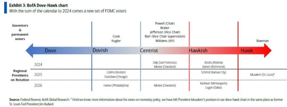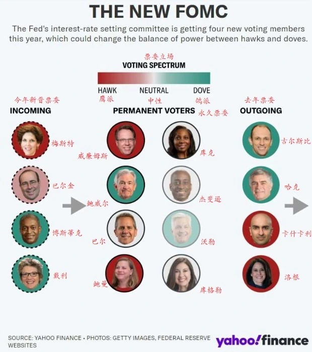 美联储“2024首秀”邻近,投资者更为急迫的想知道“美联储何时降息”,而按照惯例,本年联邦公开市场委员会(FOMC)将举行票委轮换,这也就意味着决定未来钱币政策走向的人变了。 FOMC一共由十二名成员构成,此中7位理事会成员在职期间拥有永世投票权为固定票委,剩余4个席位由11个地方联储主席每年轮值更换: 固定票委包罗:美联储主席鲍威尔(中性);美联储副主席杰斐逊(中性)和巴尔(中性);美联储理事沃勒、库克(鸽派)、 库格勒(鸽派)、鲍曼(鹰派)和纽约联储主席威廉姆斯(中性)。 而本年将被轮换调出的是芝加哥联储主席古尔斯比(鸽派)、费城联储主席哈克(鸽派)、明尼阿波利斯联储主席卡什卡利(新晋“鹰王”)和达拉斯联储主席洛根(鹰派)。 与此同时,美银在陈诉中指出,克利夫兰主席梅斯特(鹰派)、里士满联储主席巴尔金(偏鹰派)、亚特兰大联储主席博斯蒂克(偏鹰派)和旧金山联储主席戴利(中性)成为新票委。 美银以为,从近期博斯蒂克、梅斯特和戴利的言论来看,FOMC内部大概更为鹰派,但因美联储倾向于划一对外发声,且内部“反对票”也徐徐镌汰,以是票委轮换后鹰派态度是否会改变具有不确定性,FOMC“换血”对美联储而言影响不大。 四大轮值票委观点盘货起首从最具争议的博斯蒂克来看。 德意志银行经济学家以为,博斯蒂克态度相对鸽派,美银则以为博斯蒂克态度偏鹰派。 博斯蒂克曾体现美联储不能比及通胀率到达2%才降息,否则通胀将“超调,但他也体现,预计2024年下半年美联储将举行两次降息,基准利率降至4.75%-5%较为符合(这比点阵图和市场预期的都要少)。 他以为美联储可以或许实现软着陆,由于美联储有途径办理通胀题目而不会给劳动力市场带来太多痛楚。不外他也指出抗击通胀仍有一段路要走。 梅斯特和巴尔金两人都被视为鹰派,此中梅斯特的鹰派态度较为明确。 本年1月,在美国12月CPI超预期上行后,梅斯特给市场对联储3月降息的预期泼冷水。她说: “我以为,3月降息为时过早,我们须要看到更多的证据。12月的CPI陈诉只是表明,(美联储)尚有更多工作要做,这项工作将须要接纳限定性的钱币政策。” 梅斯特曾在客岁年底称,市场对于降息的预期“稍稍超前”于美联储,下一阶段关键在于钱币政策须要保持紧缩多久。 巴尔金也此前也体现,对在思量大概本年开始降息的联储官员而言,12月的CPI信息对通胀路径险些毫无资助。巴尔金重申他对降息持开放态度,不会预判3月的FOMC利率决定,将密切注意1-3月的PCE通胀数据。 戴利的态度不绝以来都较为中性。 在美联储静默期前,戴利曾称,美国经济和钱币政策处于精良状态,因此美联储可以保持耐烦,在通胀没有降回2%目标前过快降息将对经济造成伤害。 戴利夸大,与客岁的重点是对抗通胀差别,本年更须要关注美联储的另一项使命——实现最大就业。 因此有媒体分析指出,FOMC内部正在转向更为均衡的态度,原来部门偏鹰和偏鸽的委员也在渐渐朝中性态度倾斜。在通胀远景发生进一步厘革之前,美联储大概会继承保持审慎态度,这也意味着短期之内维持现状依然是最佳选项。 消散的美联储“反对票”从数据来看,鲍威尔继承美联储主席的近六年间,连合成为了常态,FOMC票委们投出反对票的比例不停降落,反对票只占总票数的2.6%,是保罗·沃尔克期间(1979年至1987年任美联储主席)以来的最低值。 达特茅斯大学经济学教授、前美联储官员Andrew Levin体现,FOMC现在看起来更像公司董事会,而非一个公共决定机构。 前美国圣路易斯联储主席布拉德(大鹰派)是继承FOMC票委期间多次投出反对票的官员之一。他体现,群体头脑大概是个题目。 布拉德还指出,没有持正式反对意见的FOMC成员实在也可以在演讲或采访中公开表达自己的观点。根据美联储的数据,布拉德曾在2013年6月、2019年9月和6月以及2022年3月投出反对票。 与此同时,有分析指出,一样平常投出反对票的通常是轮值的地域联储主席,因此当永世票委里的每个人都开始以同样的方式思考时,大概美联储早晚会犯错。 市场广泛以为,彻夜美联储一连第四次保持利率稳固。然而,真正的焦点将是美联储何时开启降息周期。从近来的集会纪要自己看,美联储内部仅对降息举行了开端的沟通,因此“换血”后的FOMC对美联储政策影响多少,大概这次集会将给出答案。 |