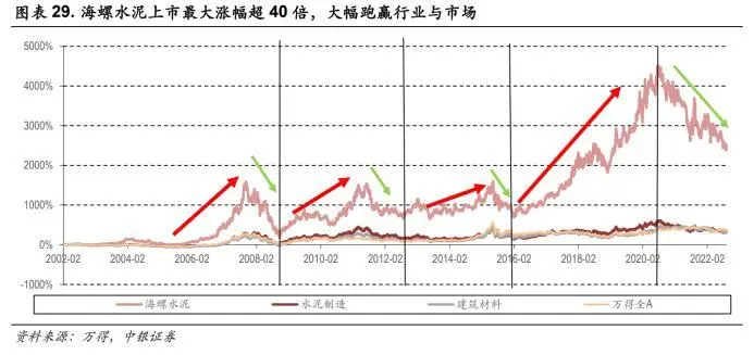 罗曼罗兰曾经说过,天下上只有一种好汉主义,就是看清生存的本相之后依然热爱生存。 近期的大A市场表现一言难尽,假如说资源疲软和信心低迷短时间内很难逆转,那我们当前必要做的,应当是回首并学习那些精良的企业,是如安在逆周期做到不卑不亢,深耕布局。 究竟只有深蹲才气跳的更高。 上周我们以后视镜的视角回看了质料龙头万华化学。本日我们以水泥行业最根本的供需视角往返顾下另一位质料巨头海螺水泥(SH:600585) :是 怎样通过焦点的资本壁垒穿越二十年牛熊,当下和未来,我们又应该怎样对待它在这轮逆周期下的长线代价。 01 水泥行业的四大命门水泥行业的周期颠簸在质料体系中相对比力简单,最焦点的周期逻辑围绕着四个主线: 供给侧的质料、运力、能耗和需求侧的地产。 要理清这四者的关系,我们还得回到水泥财产链的各个环节。 (1)制备工艺演进证明确供给侧的焦点 水泥的制成工艺重要有两类区别,按照生料制备方法可以分为干法和湿法,按照煅烧熟料窑的布局可以分为回转窑和立窑。 颠末了150年工艺演进,水泥制备履历了回转窑水泥、机立窑、湿法窑、半干法回转窑(立波尔窑)、干法窑(包罗悬浮预热器窑)、以及今世水泥最为常见的新型干法制作工艺。 无论是何种制程工艺,均围绕着“两磨一烧”的主线逻辑:即粉末制成生料(将石灰质、粘土质和校正质料通过肯定比例粉磨制成生料),煅烧熟料(将生料放入窑中煅烧,形成的以硅酸钙为重要身分的硅酸盐水泥熟料),再将熟料粉磨制成水泥(到场石膏和混淆质料),如下图所示。 早期的回转窑就是将生料煅烧成熟料的焦点场所,而立窑相对回转窑,煅烧熟料的场所加热速率更快,相对更节能。与此并行的,是20世纪初湿法窑对干法窑的替换,由于湿法窑质料添加了30%的水分,易搅拌熟料的配比质量更高,产能也更高,相对符合20世纪初城镇化需求量大的市场,运损相对低。 湿法窑履历了近20年的发展,渐渐暴袒露热消耗高(必要蒸发水分)、腐蚀污染等弊病,半干法立波尔窑在窑尾增设了煅烧炉篦,以窑尾的废气预热煅烧生料形成循环,相对的能耗有所优化,但是窑尾运送的电耗大,因此并没有完全替换湿法窑。 新型干法连续了立波尔窑预热生料的思绪,预热器的诞生进一步优化了能耗,简化装备优化了电耗,可谓集众家所长,水泥的质量和硬度也得到了更大的保障。我们本日的主角海螺水泥就是最早布局新型干法的水泥企业,早在本世纪初就已有90%的产能来自新型干法。 如今的水泥制备工艺,在强政策导向下,国内市场已经实现新型干法制备工艺的全线替换。固然各家企业制备技能不具备差别性,但是根据技能演进的门路我们可以看出,供给侧的技能升级始终围绕着质料粉磨 (预热、加水) 、煅烧能耗 (各类窑) 迭代,加之水泥短腿运输的特性,因此质料、能耗和运力共同构成了水泥行业供给侧的三大命门。 (2)需求侧只有一条主线:基建地产 相较于供给侧的多方作用,水泥的需求侧简单明确:与地产和城镇化强干系。这一点也比力好明确,究竟无论是水泥,照旧鄙俚的混凝土大部门产物实用面均围绕着地产和基建。 我们以几组数据对比来看,近十年水泥代价指数趋势与天下房屋新开工面积高度干系。在这一轮的颠簸周期中,2015-2019水泥指数随着地产新开工面积快速攀升,2019-2023又随着新开工面积陡降。 假如我们把时间拉长来看,2000-2004基建和地产投资短周期快速飙升的区间内,天下水泥产量增速相对应的由7%飙升至19%,2004年后地产开始调控,水泥产量增速又敏捷下滑至7.5%左右,2008年地产危急时,水泥产量增速更是下滑至3%以下。 同时,基建视角,以全社会固定资产完成额同比增速为例,2019至2020该指标增速下滑2.45%,水泥代价指数下滑6.67%,2020至2021该指标增长2.18%,水泥代价指数增长23.98%;客岁该指标下滑2.13%,水泥代价指数又下跌23.11%。 因此可以看出,水泥财产需求侧只有一个主旋律,那就是地产和基建固定资产投资额的景心胸。 能耗、运力、原质料资本以及需求侧的地产基建,这便是水泥行业四大命门。 02 海螺发家史:“天时地利”+逆风布局1978年绝对是质料行业市场化发展的分水岭,不但仅有备考七八操持但是的化工龙头万华化学,另有长江江畔来自安徽的另一位质料巨头:海螺水泥。 海螺水泥的前身是宁国水泥厂,1978年国家建委答应,原上海胜利水泥厂扩建工程移交给安徽省负责创建。与万华化学相似的是,宁国水泥厂的发展也沿革了日本引进产线技能,再到国产化的历程,这里不再赘述。 1996年宁国水泥厂吞并白马山水泥厂,组件海螺团体。相较于基于烟台合成革厂诞生的万华化学,海螺水泥的出发点更高一点,在建立伊始便港、沪两地上市。 但乐成没有偶然性,海螺水泥之以是能从偏安一隅的水泥厂发展为享誉天下的行业龙头,不但单靠出发点高,重要照旧自身可以或许放大天时地利的上风,牢牢把握了前文所述的供给侧三大命门,及需求侧的强需求周期+逆周期布局的头脑逻辑: (1)运力——海螺水泥最具差别性的上风 水泥是无库存强半径的“短腿产物”,天下的水泥市场根本盘都围绕着地方龙头,好比华北的金隅、东北的亚太、西北的新天山和祁连山、上峰等等。 而天下都会化率最高的华东、中南、西南市场根本是中国建材和海螺水泥二分天下。海螺之以是可以或许发展为与中字头抗衡的地方龙