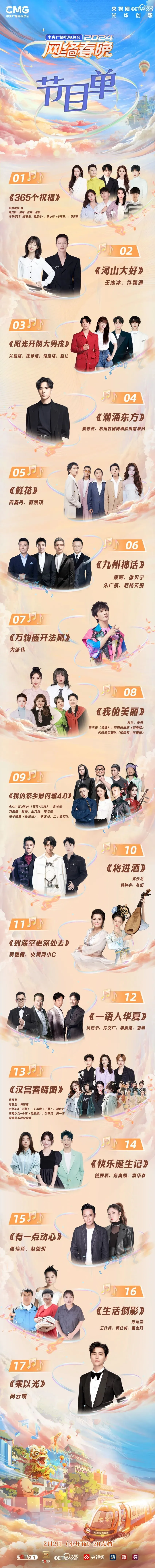 小年夜,“开新”时!《中央广播电视总台2024网络春晚》将于2月2日20:00播出。 “网络春晚”是中央广播电视总台于2011年开办的晚会,参演职员不光有明星,更有一些草根大众。 本年网络春晚的录制地落在了北纬37°一座漂亮的海滨都会、亚洲唯一的“国际葡萄·葡萄酒城”——山东烟台。 看点速览: “央视boys”又来“整活”了!《九州神话》将数个中国神话故事融入歌词,激起你的文化DNA共鸣。 王冰冰、许魏洲成为骑行搭子演唱《国土大好》,与你一起突破时空限定,轻松浪漫穿越故国山河。 何洛洛、赵让、徐梦洁与不老男神关智斌演绎《阳光开朗大男孩》,将青年意见意义集会搬上舞台。 湖南艺术职业学院门生们“复活”古画《汉宫春晓图》,与当代开新网友张舒越、利路修、高卿尘于舞台交错,闪烁文化传承创意的光点。 力气派演员吴启华、许文广、成泰燊、范明齐聚,用《一语入中原》为开新之旅注入了“语言”的力气。 “外卖书生”王计兵、“农妇书生”韩仕梅、“矿工书生”曹会双在苏运莹的歌声中抒写《生存倒影》的诗篇。他们为网络带来的多彩能量注入了网晚的舞台。 阿云嘎带来的全新主题曲《乘以光》,鼓励青年朋侪们向光而行、为理想而歌。 多样、多元的高朋将带来怎样的舞台?2月2日18:30网络春晚小年夜特别节目《集结吧!网晚开新局》抢先上线。 快来看看节目单: 2月2日晚20点档,央视2024网络春晚将在央视综合频道(CCTV-1)、综艺频道(CCTV-3)及央视网、央视频、央视消息、央视财经、央视文艺等总台新媒体平台同步播出。 芳华聚力,共赴“开新”! 泉源丨综合央视网、央视消息、@CCTV网络春晚等(版权归原作者全部,如有侵权请接洽删除) |