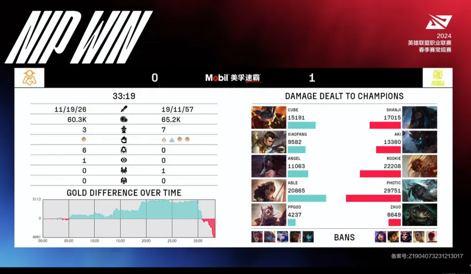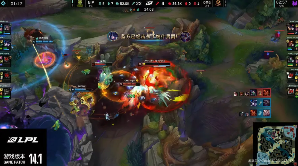 LPL春季赛通例赛NIP和OMG的角逐,双方大战2局之后,NIP以2-0的战绩击败OMG,拿下第4胜! 第一局OMG上单兰博,打野赵信,中单阿卡丽,下路莎弥拉加洛;NIP上单乌迪尔,打野大树,中单岩雀,下路赛娜加塔姆。3分钟NIP上野包中,击杀angel阿卡丽,Rookie岩雀拿下了一血。14分钟NIP包夹下路,不外OMG增援的人更多,五打四打出一波1换3,而且推掉了下路一血塔。前期OMG经济领先2K。中期19分钟双方争取小龙,OMG包夹乐成,able莎弥拉进场击杀photic赛娜,OMG拿下小龙,而且团灭NIP。24分钟双方再次争取小龙,这次NIP拿下听牌龙,photic赛娜完善输出,NIP打出1换2。29分钟双方在此次争取小龙,Aki拿下小龙,NIP拿到土龙魂,OMG想要秒photic赛娜,但是NIP完善防守,击杀OMG四人后,拿下第一条大龙。后期32分钟NIP携带大龙buff推上OMG高地,在高地击杀四人后,拿下第一局的胜利。双方首局的输出如下,Photic赛娜打出了全场最高伤害,OMG这边伤害最高的是Able莎弥拉。 第二局NIP上单乌迪尔,打野猪妹,中单岩雀,下路赛娜加塔姆;OMG上单兰博,打野皇子,中单阿卡丽,下路莎弥拉加洛。3分钟NIP上中野在野区包夹,击杀xiaofang皇子,shanji乌迪尔拿下了一血。14分钟OMG在中戮营团,但是伤害不敷,NIP反打击杀OMG两人后,推掉了中路一血塔,同时shanji乌迪尔在上路单杀cube兰博。前期NIP经济领先4K。中期18分钟NIP在下路推进的时间,OMG上头混战,但是zhuo塔姆完善掩护,NIP反打打出1换5,团灭OMG。19分钟NIP拿下听牌龙。22分钟双方野区混战,固然Photic赛娜被击杀,但是shanji和Rookie收割,NIP打出3换5,再次团灭OMG,随后推掉了OMG中路高地。24分钟NIP拿下第一条大龙,OMG则是在野区开团击杀NIP双C,终极shanji乌迪尔收割,NIP再次团灭OMG,山鸡乌迪尔战绩超神。终极27分钟,NIP那些下电龙魂后,在高地击杀OMG四人,拿下了角逐的胜利。 那么,对于这场角逐,你们有什么想说的吗?欢迎在品评区留言探究。 |