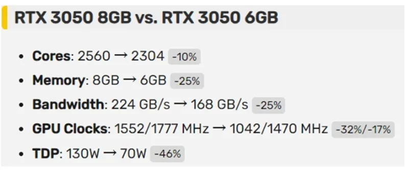 对于轻度游戏用户而言,这段时间确实有那么一丢丢的尴尬。 年初推出的三张新显卡,固然对比此前的RTX 40系显卡有着不错的提拔,但是团体处在4000-8000元的中高端价位段,对很多用户来说,这个代价险些是一台完备的电脑预算。 什么都想要吧,那钱包肯定是顶不住的;妥协买老卡吧,又用不了DLSS技能,这也让如今只是想买张显卡的轻度游戏用户,处在一个「高端显卡太贵,低端又没有新品」的两难地步。 兄弟们,以为言之有理的,把「明确」打在公屏上! 绝不浮夸地说,老黄、苏妈实着实在凭二人之力拉高了整个行业的消耗水平。 在我看来,大伙儿已经等不及英伟达推出定位在GTX1050/GTX 1650这一档的甜品卡了。 如果你也是此中一位的话,那么我有一条好消息,和一条不那么好的消息。 好消息是,就在昨天晚间,英伟达公布正式推出旗下新一代入门级独显,这张显卡不光拥有RTX系列显卡的诸多特性,在性能和能耗上也有了较显着的提拔,订价仅有169美元,克日起正式上架各大平台。 (图源:微星) 不那么好的消息是,这张显卡名为RTX 3050 6GB,是一张定位于RTX 3050 8GB版之下的入门级显卡,也是如今已知最低端的RTX系列显卡型号,原版预计会在近期进入停产阶段。 只能说,没有等候中的RTX 40系列、RX 7000系列入门新卡也就算了,能在这节骨点整出上一代入门卡的阉割版... 到底是我们没有看破市场,还是老黄这波使用真的很迷惑? 而且这块显卡怎么说呢,还不光是将原来8GB显存阉割成6GB这么简单,而是在硬件设置上举行了全方位缩水。 原版RTX 3050 8GB,小雷算是首发评测过的。 GA106-150 GPU核心,配备2560个CUDA核心、80个张量核心、20个光追核心、80个纹理单元、32个ROP光栅单元,参考频率1552-1777MHz,搭配128-bit 8GB GDDR6显存,等效频率14GHz,带宽224GB/s,整卡功耗130W。 固然团体参数平平无奇,但在谁人挖矿风靡的年代,这张显卡确实给轻度游戏玩家提供了一个可供参考的选择。 而RTX 3050 6GB,上来就把核心单元给砍了。 (图源:Videocardz) RTX 3050 8GB采取的GA106-150核心,着实就是把完备的GA106核心屏蔽1组GPC得来,在产物工艺和筹划上和RTX 3060是根本保持同等的。 而RTX 3050 6GB则改成了最小的GA107核心,和移动版RTX 3050保持同等,只有2304个CUDA核心、64个张量核心、16个光追单元、64个纹理单元,ROP单元也缩减为20个。 单论核心规格,根本上就是移动端RTX 3050Ti和RTX 3050的差距。 (图源:NVIDIA) 核心规格缩水10%,同时官方参考频率也下来了,基准只有1042MHz,最高加快不外1470MHz。 显存同样全面缩水,只管规格还是6GB GDDR6,但是位宽剩下96-bit,在等效频率没变的环境下,带宽只剩下168GB/s。 就这显存带宽,感觉2K渲染都会遇上瓶颈。 (图源:Videocardz) 好消息嘛,肯定还是有的。 在规格全面缩水的环境下,整卡功耗大幅降至70W,险些少了一半,因此不再必要辅助供电接口。 别说独立供电了,连独立散热都省了,从某种意义上来说也是挺牛的。 (图源:同德) 设置上的减少,最直接影响的就是跑分体现。 根据外媒ComputerBase公布的显卡测试效果,RTX 3050 6GB比8GB版本跑分低落了近20%。 仅有4869分的Time Spy图形分,哪怕间隔GTX1660的体现都有一段间隔。 (图源:ComputerBase) 在实际游戏中,性能的丧失会进一步提拔。 在《赛博朋克 2077》(FHD、高预设、无 FSR)的测试中,RTX 3050 6GB比8GB版本均匀帧数低了10帧左右,实际体现和笔电端RTX 3050相差不大,只比GTX1650/RX5600略胜一筹。 这都2024年了,在这个靠近RTX 50系列推出的节点,我们居然还能看到一张2021年的移动端显卡换皮上市。 难不成老黄出这么一块显卡就为了跟核显抢占市场? 你还别说,大概各人寻常不咋关注,但是如今这中低端显卡市场,它还真就有这么奥妙了。 就以英伟达和AMD这两家为例子吧,两家新品之中最低端的型号,RTX 4060与RX 7600,代价都是直接来到两千左右起步的,如今市面上险些就不存在代价一字开头的入门级甜品显卡。 如果拿每月Steam硬件观察榜单做参考,你会发现不光有GTX 1060、GTX 1650等多年前入门卡恒久牢居榜单前三,就连英特尔的Xe核显和UHD核显也能在前二十待着。 (图源:Steam) 这也阐明,很多用户对显卡性能真没那么高需求,主打一个自制实惠。 而RTX 3050 6GB的出现,固然看起来很抽象,但终归是给这类消耗群体提供了一种「非二手产物」的新选择。 固然,那是在这张显卡卖到999元左右时才会发生的环境。 在官方发布这款产物后,一众硬件厂商纷纷推出自家的RTX 3050 6GB显卡,代价从1399-1599元不等。 这么说吧,哪怕不提RX6600,如今RTX 3050 8GB版也就1600元上下。 (图源:京东) 这代价锚定,确实是有点自大的。 幸好,得益于市场的自我调治,RTX 3050 6G预计也会在肯定时间内颠簸到它应有的代价区间。 个人以为,在千元以下的价位段,RTX 3050 6G至少会是一个相较于RX6500/intel A380更加稳妥的选择。 固然,面临英伟达的搅局,信任AMD与英特尔也正在盘算怎样应对,而贬价大概将高规格显卡缩减后重新上市都是简单有用的方案。 (图源:某显卡厂商) 总之,如果能将产物定位在公道的价位,哪怕这就是在清算老核心库存根本上大幅阉割的显卡,也依然能在中低端市场揽获应有的受众。 但你要说,这张显卡是什么「光追新选择」之类的。 那我只能说,祝福、明确与恭敬了。 |