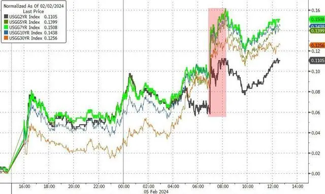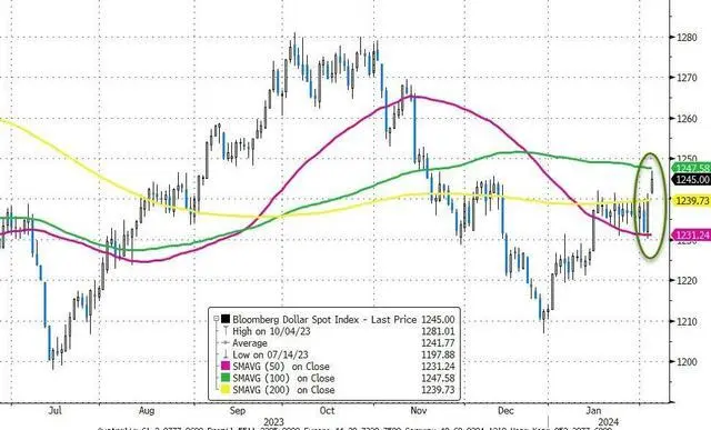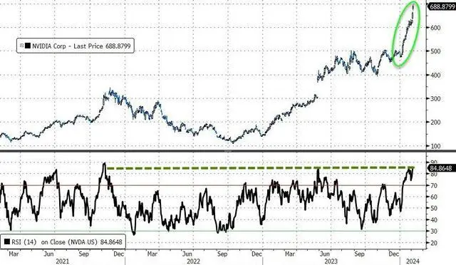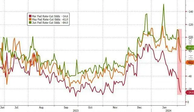 美联储主席鲍威尔上周末表现,美联储本年将审慎举行降息,大概比及3月后再降息,重申联储盼望看到更多经济数据,确保通胀降至目标2%,称过早降息的伤害在于,低落通胀的使命还未彻底完成。今后,有“新美联储通讯社”之称的记者Nick Timiraos发文称,何时降息成为美联储当前焦点,鲍威尔夸大了两点:1.不会比及通胀率到达2%才降息;2.盼望对通胀降到2%更有信心。 鲍威尔再次给3月降息的市场预期泼冷水。继上周五公布的非农就业增长不测强劲后,美股盘初公布的数据又表现经济较预期火热:美国1月ISM非制造业指数超预期回升至四个月高位,新订单和物价指数创近一年新高。 鲍威尔发言和经济数据公布后,互换合约订价表现,投资者对美联储的3月降息的预期概率盘中险些降为零,5月降息概率也继承低落。美国股债双杀,美国国债代价连续上周五跌势,美债收益率再度大幅上行、连续两个买卖业务日盘中攀升至少高出10个基点,对利率敏感的两年期美债收益率升至一个月来高位。连日上涨的三大美股指团体回落。而美元指数在降息预期减退之际进一步走强,革新客岁11月中以来高位。 大宗商品中,美元走强的压力下,伦铜等根本金属和黄金等贵金属齐跌。而连日下跌的国际原油盘中转涨,在中东局面告急和俄乌辩论加剧供应担心的助推下,盘中曾涨超1%,走出三周来低谷。据新华社报道,乌克兰媒体称,上周末,俄罗斯最大炼油厂之一伏尔加格勒炼油厂的低级炼油办法遭到两架无人机打击,打击将对炼油厂产能造成严峻影响,该炼油厂起火系乌克兰国家安全局筹谋的打击,乌国家安全局将继承打击俄方炼油厂。 三大美股指止步两连阳 七大科技股中特斯拉表现最差 芯片股逆市续涨 英伟达三日连创汗青新高三大美国股指早盘低开低走。道琼斯工业均匀指数早盘曾跌超430点、日内跌逾1.1%。标普500指数早盘曾跌逾0.8%。纳斯达克综合指数早盘曾跌1%,今后收窄至少近半数跌幅。 终极,三大指数均在连涨两日后收跌。道指收跌274.30点,跌幅0.71%,报38380.12点,跌落连续两日革新的收盘汗青高位。上周五革新收盘汗青高位的标普收跌0.32%,报4942.81点。上周五收创2022年1月3日以来收盘高位的纳指收跌0.2%,报15597.68点。 代价股为主的小盘股指罗素2000早盘曾跌超2%,收跌1.3%,连续两日至1月18日以来收盘低位。科技股为重的纳斯达克100指数早盘曾跌近1%,收跌0.17%,跌落上周五所创的收盘汗青高位,权衡纳斯达克100指数中科技业成份股表现的纳斯达克科技市值加权指数(NDXTMC)盘初涨近0.5%后早盘曾转跌,革新日低时跌超0.5%,收涨0.51%,革新上周五所创的收盘汗青高位。 道指成份股中,公布四序度营收低于预期、表现中东辩论打击业绩的麦当劳(MCD)盘中曾跌4.6%,收跌3.7%,创2022年5约以来最大跌幅,发现部分未交付 737 Max飞机存在新的质量题目、大概因此推迟约50架飞机交付后,波音(BA)早盘曾跌3.5%,收跌1.3%,而四序度红利高于预期的卡特彼勒(CAT)盘初曾涨超6%,收涨2%,创收盘汗青新高。 标普500各大板块中,周一只有芯片股地点的IT和医疗两个收涨,前者涨近0.6%,后者涨0.3%。收跌的九个板块中,质料跌逾2.5%领跌,公用奇迹和房产均跌2%紧随厥后,特斯拉地点的非必须消耗品跌1.3%。 龙头科技股涨跌各异。在包罗苹果、微软、Alphabet、Meta、亚马逊、英伟达、特斯拉在内的七大科技股中,特斯拉表现最差。被PiperSandler其目标价大幅下调23.7%至225美元、且媒体称德国软件巨头SAP将其从自身汽车供应链中剔除后,特斯拉早盘曾跌近6.9%,收跌近3.7%,连跌两日至2023年5月以来收盘低位。 FAANMG六大科技股中,上周五公布财报后大涨20%的Facebook母公司Meta收跌3.3%,跌落连涨两日所创的收盘汗青高位;上周五财报后收涨近8%创三年新高的亚马逊早盘曾跌超1%,收跌近0.9%;上周五连涨两日、收创汗青新高的微软收跌近1.4%;盘初涨近2%的奈飞早盘转跌,收跌近0.5%;而上周五在美国开卖Vision Pro、CEO库克等高管预计该混淆实际头显将给商界带来巨大机会后,苹果早盘涨超1%,收涨近1%;谷歌母公司Alphabet也收涨近1%,连涨三日,继承脱离上周三公布财报后跌超7%革新的1月8日以来收盘低位。 芯片股总体逆市续涨,费城半导体指数和半导体行业ETF SOXX分别收涨近1.2%和1.4%,连涨三日,革新1月25日以来收盘高位。个股中,被高盛上调目标价至800美元、较上周五收盘高近21%、看好其本月将公布的季报业绩后,英伟达早盘涨幅曾略高出5%,收涨约4.8%,连续三个买卖业务日创收盘汗青新高;四序度营收和红利高于预期的安森美涨9.5%,高通涨超1%,英特尔早盘转跌后小幅转涨,收涨0.4%,收涨2.8%的恩智浦盘后公布四序度红利和营收高于预期,盘后曾涨近7%,而盘初涨超1%的AMD早盘转跌,收跌近2%。 AI概念股涨跌不一。到收盘,C3.ai(AI)和BigBear.ai(BBAI)跌超3%,SoundHound.ai(SOUN)跌超4%,Adobe(ADBE)跌近0.7%,而超微电脑(SMCI)涨超14%,革新停止上周四连续四日所创的收盘汗青高位;收跌1.7%的Palantir(PLTR),盘后公布四序度营收高于预期、初次实现年度红利,称AI需求强劲,盘后股价拉涨,盘后涨超10%。 热门中概股多数反弹。纳斯达克金龙中国指数(HXC)盘初曾跌逾0.9%,早盘小幅转涨,收涨0.2%,在上周五回落至1月22日以来收盘低位后反弹。中概ETF KWEB和CQQQ分别收涨逾1%和0.2%。个股中,收盘时,阿里巴巴涨近4%,京东涨近3%,腾讯粉单涨超2%,网易、B站涨超1%,百度涨0.8%,而小鹏汽车跌近4%,蔚来汽车跌约3%,拼多多跌近3