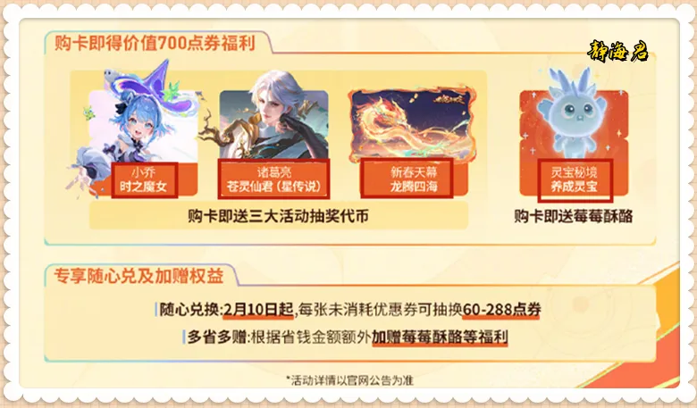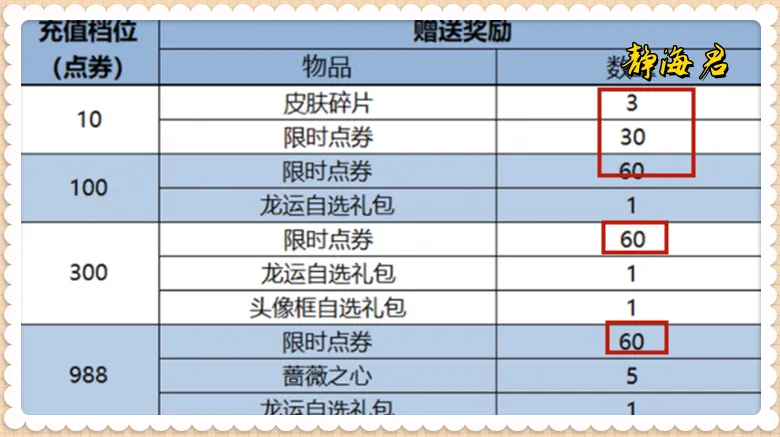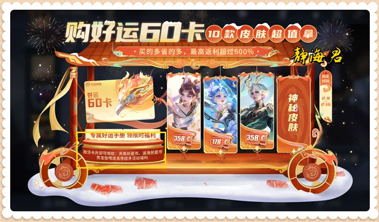 文/静海君 本年的好运60卡与时俱进,连合龙年的活动,做出了许多的改进,为了让有爱好的小搭档不花冤枉钱,让我们来各人详细相识一下。 ps:文中尚有关于吕布、貂蝉最新情限的爆料。 好运60卡解读从以往的履历来看,好运60卡是买了就赚到的典范。 ⑴根本环境 本年的好运60卡会在2月9日(除夕夜)上线,上架首日仅售680点券,后续(2月10日~2月16日)规复至880点券。在除夕夜当天,玩家还享受一个特权:先买皮肤后买卡,原价返还点券。 别的,还给玩家罗列了四组数据: 首周单款皮肤折上折,节流40%。 节流及获赠总值最高超6倍。 购买皮肤可省超2480点券。 购卡即送福利代价700点券。 接下来,就是上面四组数据的详细解读。 ⑵细节解读 现在已经确定到场扣头的皮肤共有10款,已经公开了详细消息的有7款,只公布了名字的2款: 传说限定:孙尚香的乘龙-问璇玑、赵云的乘龙-铭钟鼎、孙策的乘龙-淬吴钩。 平常传说:典韦的战鼓燎原。 史诗限定:大乔的乘龙-忆丹青、安琪拉的乘龙-聚宝船、百里玄策的超元猎域。 待定:貂蝉的曦玄引、吕布的曦玄引。 在好运60卡的加持下,传说限定只需1072点券(享受358点券优惠)、直售传说只需1012点券(享受338点券优惠)、史诗限定只须要532点券(享受178点券优惠)。 以赵云的乘龙-铭钟鼎为例,他原价是1788点券,首周扣头后是1430点券,再由于好运60卡的358点券优惠,实际是1072。 1072÷1788≈59.95%,首周单款皮肤折上折后,确实是凌驾40%。由于尚有3款皮肤的风致未公布,以是还不知道末了实际优惠多少,但大概率应该是2480点券,按这个来倒推。 已经公布的优惠了1074+338+534=1946,还剩下534点的额度。534÷3=178 思量到筹谋加了个「超」字,大概率反面这3个皮肤里尚有传说,但100%有史诗,这一点毋庸置疑。 在购买了好运60卡后,玩家会立刻得到三大抽奖活动的代币(包罗小乔的时之魔女、诸葛亮的苍灵仙君、龙腾四海新春天幕)以及莓莓酥酪。固然还不知道送几个莓莓酥酪,但筹谋已经明白阐明,购卡后得到的福利会凌驾700点券。 好运60卡的购买代价是680点券(首日),10个皮肤全买节流超2480点券,赠予的福利超700点券,这么一算,只有4.676倍,间隔前面所说的6倍尚有差距,为什么会如许呢? 请看上图中末了一句话:多省多赚,根据省钱金额,体系会额外加赠莓莓酥酪等福利。以是,加赠的福利总代价应该会凌驾900点券(如果是15个莓莓酥酪就好了,但感觉不大大概)。 好运60卡的锋利之处我个人是发起各人买好运60卡的,这么发起的最根本缘故原由是,买了就是赚,为什么这么说呢。 除夕夜当天买卡是680点券,如果后续一个皮肤都没买就会得到10次兑换的时机,每次会在60点券~288点券之间恣意得到一个。 退一万步讲,你每次都是抽到的60点券,如许加起来就是600点券,加上买卡时送的代价700点券的礼包,赚的真不少。 思量到有部分小搭档以为礼包没用,那我再提示各人一个细节。 在2月9日~2月18日之间,玩家充值的话尚有大量的额外嘉奖,就比如充值10点券可以得到3个皮肤碎片+30点限时点券;充值100点券可以得到60点限时点券+龙运自选礼包等等。 在如许的条件下,哪怕你只充了300点券,也可以额外得到150点限时点券+3个皮肤碎片。充值嘉奖+额外700点券的礼包+返利的600点券,你觉着这套组合拳打下来,是不是稳赚不赔? 以上,我是静海君,在这里提前祝各位小搭档新年快乐,万事顺遂。 |