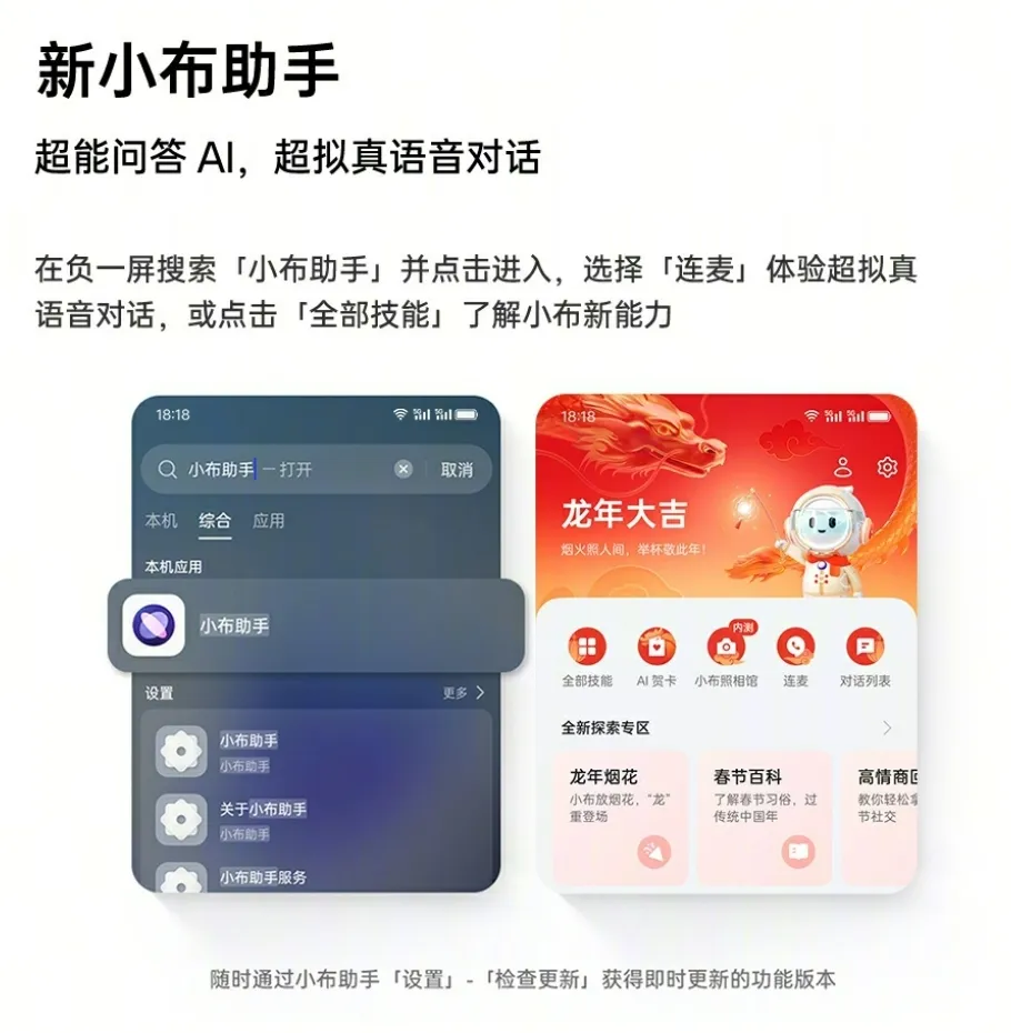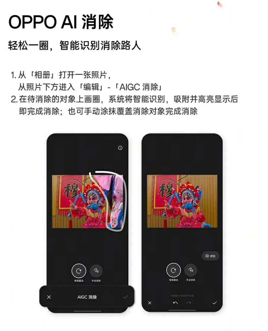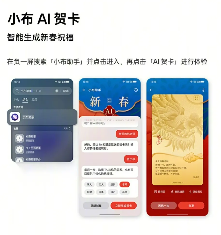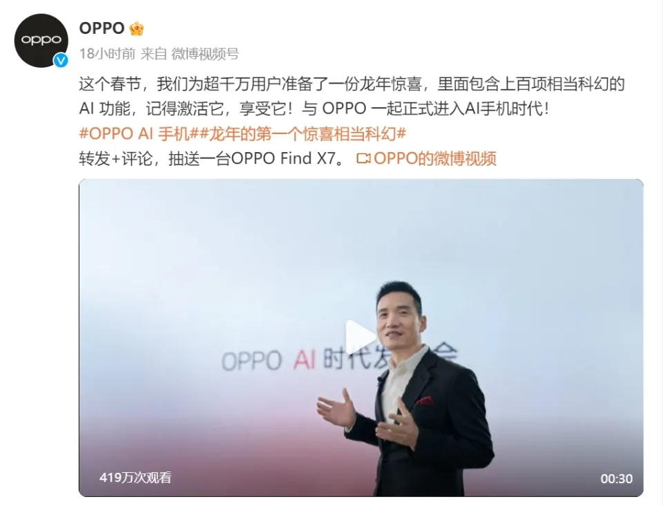 昨日晚间,OPPO举行了OPPO AI期间发布会,发布会全程仅30秒,号称“OPPO史上最短发布会”。 OPPO首席产物官、一加首创人刘作虎公布,OPPO正式进入AI手机期间,并向超千万用户推送一版新软件,内里包罗上百项AI功能。 OPPO官方表现,本次ColorOS AI 新春版升级机型包罗OPPO Find X7、OPPO Find X7 Ultra、OPPO Find X6、OPPO Find X6 Pro、OPPO Find N3、OPPO Find N3 Flip、OPPO Reno11、OPPO Reno11 Pro、OPPO Reno10、OPPO Reno10 Pro、OPPO Reno10 Pro+、一加 12、一加 11、一加 Ace 3、一加 Ace 2、一加 Ace 2 Pro。 用户可以进入「设置」-「关于手机」,检测更新体系到ColorOS AI 新春版;在设置界面下拉找到「小布Al」-「大模子功能众测」报名体验新版本。 据OPPO官方的先容,ColorOS AI 新春版带来AI消除、AI通话择要、新小布助手、小布照相馆、小布AI贺卡等巨大更新。 OPPO AI消除:轻松一圈,智能辨认消除路人。用户从「相册」打开一张照片后,在照片下方进入「编辑」-「AIGC消除」,在待消除的对象上画圈,体系将智能辨认,吸附并高亮表现后即完成消除;也可手动涂抹覆盖消除对象完成消除。 OPPO AI通话择要:智能辨认通话内容,天生重点信息择要。用户可在恣意通话界面,点击「智能择要」开启此功能。通话竣事,点击状态栏可检察择要天生过程,或直接进入便签检察择要效果。 据悉,新小布助手提供高情商复兴、亲戚关系、春节百科、春节菜谱、文案天生、脚本创作、用机服从等全新探索专区。 同时,新小布助手也参加了小布照相馆、小布AI贺卡等功能。 别的,OPPO龙年新春水印已经于上月尾连续上线,用户在完成照片拍摄后,照片上的水印为春节定制水印。 小布AI贺卡可智能天生新春祝福。用户可在负一屏搜刮「小布助手」并点击进入,再点击「AI贺卡」举行体验。 体验改善功能方面, 新增了禁用摇一摇广告,新增装备传感器权限管理,禁用后不再触发摇一摇广告。 一加12、一加11等机型还新增了支持黑屏指纹解锁功能。屏幕黑屏时,手指触碰指纹地区可以在不点亮屏幕的情况下直接完成解锁,提拔解锁体验。 综合来看,ColorOS AI 新春版提供了较为丰富的新功能,为用户带来了更便捷的体验。而随着OPPO正式进入AI手机期间,后续应该还会推出更多AI有关的新功能,感爱好的朋侪可以保持关注。 |