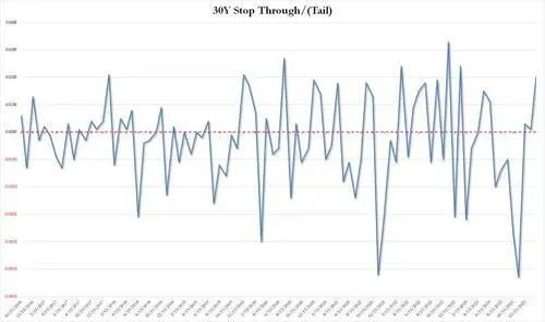 美国当地时间周四,美国财务部拍卖250亿美元30年期国债。本次30年期美债250亿美元的拍卖规模,比新冠疫情期间创记录的270亿美元拍卖规模仅低20亿美元。 美国财务部最新拍卖的30年期美债的得标利率为4.360%,前次1月11日为4.229%。预发行利率为4.380%,比终极的4.36%高2个基点,没有体现需求疲软的“尾部”环境出现。得标利率低于预发行利率的幅度,创下2023年1月以来最大,凸显需求强劲。 本次拍卖的投标倍数为2.40,高于前次的2.37,也高于近来六次拍卖的均匀水平2.38。 作为衡量美国国内需求的指标,包罗对冲基金、养老基金、共同基金、保险公司、银行、当局机构和个人在内的直接竞标者(Direct Bidders)获配比例为14.5%,低于近期均值的17.2%,国内需求平平。 不外外洋需求是亮点。作为衡量外洋需求的指标,通常由外国央行等机构通过一级买卖业务商或经纪商参加竞标的间接竞标者(Indirect Bidders)获配比例为70.7%,创2023年6月以来最高,大幅高于1月时的67.8%,表明外洋需求非常强劲。 作为承接全部未购买供应的“接盘侠”,一级买卖业务商(Primary dealers)本轮获配比例为14.8%,固然高于上个月的14.5%,但仍低于近期均值17.2%。 拍卖效果出炉后,30年期美债收益率短线下挫约莫4个基点,至4.34%一线,使得日内团体涨幅收窄至约莫不敷2个基点。 这是继昨天持平于记录规模的10年期美债拍卖后,恒久美债又一次妥当的拍卖,外洋需求是支持美债的紧张动力。 |