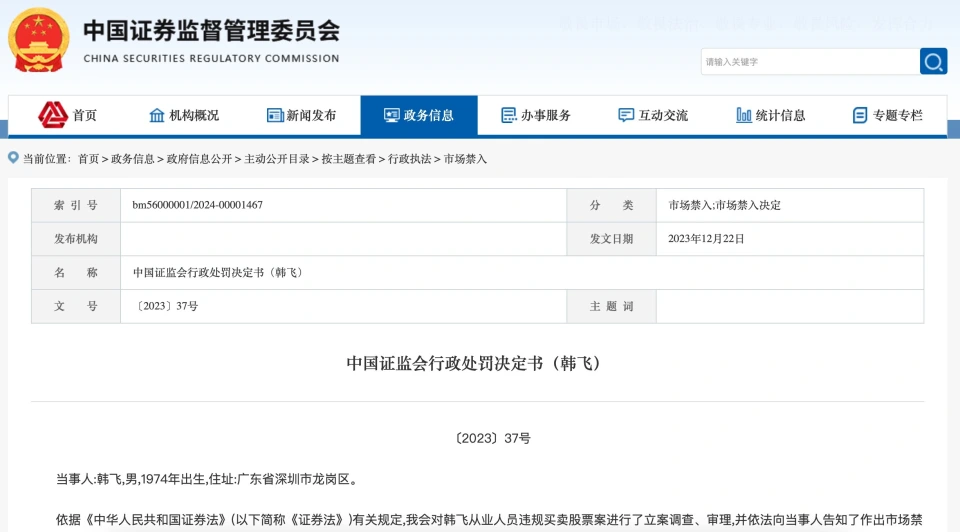 红星资源局2月16日消息,2月7日,证监会迎来了第十任掌舵者吴清。除夕当天,羁系在节前末了一个生意业务日对券商及干系从业职员会集发出了一波罚单,重要对准“证券从业职员违规炒股”红线,还涉及私募资管业务及投行业务。 据红星资源局不完全统计,被公开点名的券商共有5家,涉及数十人,仅招商证券就有63人被罚;券商高管违规炒股被罚案中,长城证券原副总裁韩飞被罚没上亿元。春节前夕,另有中山证券私募资管业务遭罚,申万宏源证券、安全证券投行业务收罚单。 羁系一天开出14张罚单 仅招商证券就有63人被罚 除夕当天,证监会、深圳证监会对准“证券从业职员违规炒股”红线,一天内会集发布了14张罚单,此中招商证券领罚最多。 据证监会消息,克日该会构造稽察执法、一样平常羁系力气会集核办了招商证券多名从业职员交易股票等违法违规举动,共对63人作出行政处罚,合计罚没8173万元;对1人作出终身证券市场禁入步伐;将1人涉嫌黑幕生意业务举动移送司法构造处理惩罚;对46人采取行政羁系步伐,此中拟对3人采取认定为不适当人选,对5人采取羁系发言、38人采取出具警示函。 此中,招商证券时任实验董事兼总裁熊剑涛被采取终身证券市场禁入步伐。熊剑涛于1995年6月入职招商证券,继承过招商证券首席信息官、首席运营官、副总裁、总裁和招商资管董事长等职位,于2021年10月辞职。从1995年开始,熊剑涛就通过“熊剑涛”“任某礼”“崔某利”证券账户违规生意业务股票。羁系根据前述熊建涛对各账户生意业务决议的比例分别,认定其生意业务股票总成交金额5.19亿元,红利3357万元。 吴光焰于2008年至2016年历任招商证券运行管理部副总司理、私人客户部总司理、资产管理部总司理、招商证券资产管理有限公司总司理等职务,在此期间利用过“余某梅”证券账户生意业务股票。深圳证监局认定吴光焰为不适当人选,自羁系步伐决定作出之日起3年内不得继承证券公司董事、监事、高级管理职员和分支机构负责人职务或现实推行上述职务。 宗长玉在继承招商证券投资银行部项目负责人、投资银行业务十部负责人期间,于2014年10月至2017年6月控制利用“宗某炎”证券账户生意业务股票。深圳证监局认定宗长玉为不适当人选,自羁系步伐决定作出之日起1年内不得继承证券公司投资银行业务团队负责人职务或现实推行上述职务。 招商证券深圳南山南油大道证券业务部存在以下标题:一是部门从业职员于2021年至2022年间私下委托他人举行客户招揽;二是未能实时妥善处理惩罚投资者投诉和纠纷。因此,深圳证监局决定对该业务部采取出具警示函的行政羁系步伐。 别的,证监会对负有从业职员管理责任的招商证券,采取责令增长合规查抄次数的行政羁系步伐,对公司董事长采取出具警示函、2名时任合规总监采取羁系发言的行政羁系步伐,并督促招商证券启动内部问责,约谈干系违规职员,落实问责全覆盖。 长城证券原副总裁违规炒股罚没1.17亿元 另有42名证券从业者被罚 除招商证券外,除夕当日公布的券商高管违规炒股案还点名了长城证券。证监会披露的行政处罚决定书体现,长城证券原副总裁韩飞因违规利用化名、借他人名义持有并交易股票,被采取10年证券市场禁入步伐,罚没累计达1.17亿元。 韩飞从1997年6月开始任职于长城证券,于2004年5月取得中国证券业协会一样平常证券业务执业资格。2005年2月至2022年4月涉案期间,韩飞历任长城证券南宁民族大道证券业务部总司理、长城证券创新产物开发部副总司理、长城证券营销管理总部副总司理、长城证券广州天河北路证券业务部总司理、长城证券南宁民族大道证券业务部临时负责人、长城证券广东分公司总司理、长城证券经纪业务总部总司理及长城证券副总裁等职务。 证监会指出,韩飞共控制利用了“韩浩”等六个证券账户(简称“证券账户组”),涉及其父亲、二嫂、妻子、妻妹等人。经观察,上述证券账户组具有生意业务品种会集、生意业务限期长、生意业务轨迹会集、生意业务频率偏低的特点,且账户之间生意业务品种高度重合,资金行止均为韩飞投资、购房和消耗等。 据观察,2016年1月至今,证券账户组共有140笔广东省外下单、生意业务金额高达1.22亿元,此中137笔生意业务与韩飞出行纪录匹配,匹配金额1.18亿元,匹配度96.93%。在2005年2月至2022年9月的17年时间里,上述证券账户总生意业务金额到达了43.8亿元,停止2022年9月30日红利5868.49万元。 综合干系证据,证监会以为,韩飞的上述举动违背了《证券法》第四十条第一款关于克制证券公司从业职员直接大概以化名、借他人名义持有、交易股票的规定,构成《证券法》第一百八十七条所述违法举动。终极,证监会责令韩飞依法处理惩罚非法持有的证券,充公违法所得5868.49万元,并处以等额罚款。同时对其采取10年证券市场禁入步伐,期间不得继承在原机构或其他任何机构中,从事证券业务、证券服务业务大概继承原证券发行人的董监高职务。 2月9日,深圳证监局还公布了一批针对证券从业者的处罚名单,共计42人被罚。红星资源局注意到,处罚缘由包罗曾存在利用他人证券账户的举动、曾存在借用他人证券账户交易股票的举动、担当他人委托交易股票的举动等,此中37人被出具警示函,5人被分别采取羁系发言。 中山证券私募资管业务遭罚 申万宏源