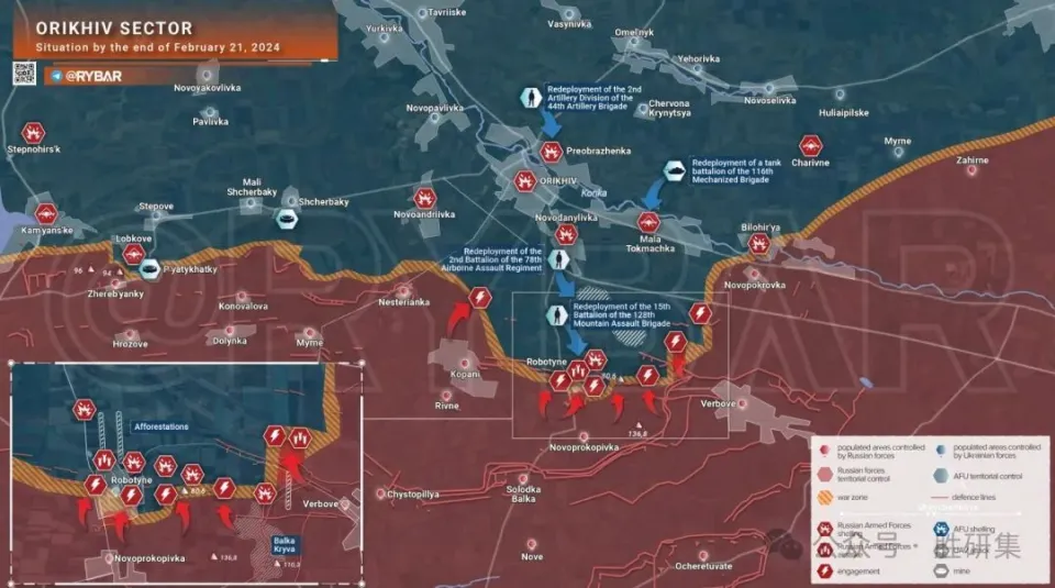 大量的俘虏大大延误了阿夫杰耶夫卡俄军的推进速率! 现在终于明确希尔斯基突然下令退却,把大量游兵散勇留给俄军的用意了。21 日,阿夫杰耶夫卡俄军已经抓获了高出 950 名乌军俘虏,在清算焦化厂时发现地下室里尚有别的 58 名士兵。 直到 21 日竣事,城内还传出零星的枪声。 对于乌军一字长蛇阵防御,掐头去尾,中心斩成数段,让乌军顾此失彼,然后分割困绕。 赫尔松大河太宽,扎波罗热的拉博蒂诺就是蛇头,而库皮扬斯克就是蛇尾,被俄军重兵团体牢牢摁在地上动惮不得。 中心的利曼、巴赫穆特、阿夫杰耶夫卡、米海洛夫卡、乌格勒达尔等节点,就是俄军要堵截的一个个防御要塞,从而把乌军防线撕得粉碎! 南顿涅茨克2024 年 2 月 21 日 各方面都确认了俄军的关键性胜利,完全控制波贝达,并开始向外着花。 昨日,俄军在波贝达村中心的一栋房屋上方悬挂了赤色旌旗,此前,该村的战斗已经连续了数月。 在波贝达四周,乌军沿马林卡-波贝达-“动物园”线创建了防御工事,该堡垒拦阻了俄军对乌军后勤枢纽康斯坦丁诺夫卡的打击,该枢纽也是乌格勒达尔补给中心。 乌军试图尽力守住该堡垒去。在已往几周的战斗中,乌第79空降旅和乌第95空降旅以及乌第33步兵旅连续反击,21 日也派出了两个突击群举行反击,但没有乐成。 现在乌军后撤到波贝达以西,位于小山坡上的阵地,依托地形继续防守。 安诺夫卡和卡捷琳尼夫卡的乌军炮兵阵地,可以随机炮击俄罗斯阵地,并遏制打击。不外,随着俄军向新米哈伊洛夫卡地区进一步推进,康斯坦丁诺夫卡-新米哈伊洛夫卡线上乌军的阵地变得越来越困难。 有消息称,俄军扩大该村南部以及东北部的控制区,由于“动物园”早已在俄方控制之下,俄军可以沿着00531号蹊径逼近。 随着波贝达村被控制,堵截乌格莱达尔乌军后勤并不是俄军唯一的目的,俄军的选择很多。 短期内,乌军应该会试图夺回失去的阵地,由于这地方太关键了,以是俄军还不能掉以轻心,必须先巩固阵地。 乌第 33 旅将大量军力摆设在墟落西北角,以及在山上创建较为结实的防御工事,对俄军继续推进造成拦阻,同时还保存了反扑的时机。 但现在俄军不但可以向西前去康斯坦丁诺夫卡,还可以向南沿着 H15 高速公路前去格奥尔基耶夫卡。 格奥尔基耶夫卡位于水库附近的低地,那里的阵地很容易被击穿。H15公路在一座小山上,假如控制住这座小山,俄军将对格奥尔基耶夫卡形成高低差,俄第46旅的两个突击小组前几天已抵达那里。 假如俄军攻入格奥尔基耶夫卡,将对新米海洛夫卡乌军形成合围,这将动摇整个防线。 到现在为止格奥尔基耶夫卡的火线没有发生任何庞大变革,不外从北部的克拉斯诺戈罗夫卡附近传来一些消息,俄军已经在墟落南部站稳了脚跟,将沿着地质街向加油站方向进步。 固然俄军对该村也是两路夹击,但是推进速率不会太快,克拉斯诺戈罗夫卡位于一座小山上,铁路也穿过该山。在村内有一些构筑已经被乌军打造成防御堡垒,比方防火工厂。 扎波罗热在奥列霍夫,2月21日乌军大规模支援队伍已经抵达。 俄军继续攻击拉博廷斯基岩架地区,并乐成在拉博蒂诺南郊和西郊取得了驻足点,并扩大了涅斯特扬卡-科帕尼-拉博蒂诺-韦尔博沃线沿线的“灰色地带”。 假如乌军不反攻,当俄罗斯部队逼近重要其补给线时,驻扎在“壁架”上的队伍被俄军困绕。 在此配景下,乌军指挥部正在告急向火线调派支援队伍。 团结兵种预备队第128独立突击旅营调往拉博蒂诺,第78独立突击旅2营调往丘边科夫大梁。 乌军丧失是肉眼可见的。由于反攻失败火线职员不敷,导致“马伦”战术团体被遣散,已经消散在汗青中。 同时,两个月前组建的乌第141独立步兵旅的队伍预计将抵达拉博蒂诺和韦尔博沃伊。现在,乌第141特种旅的分遣队驻扎在谢尔巴基,但局面已经不允许他们继续训练,被迫派往火线。 在乌军防御团体的预备队中,乌第116呆板化旅已经就位,其坦克营于前一天抵达马来亚托克马奇卡,乌第44旅的炮兵师驻扎在普列奥布拉任卡。 从这些摆设可以看出,由于担心士气降落,乌指挥部渴望维持夏日霸占的阵地。 根据两少校频道的陈诉称,在拉博蒂诺,乌军的队伍数目到达了亘古未有的水平,现在这些队伍已发起反击,并试图夺回阵地。 战斗仍在继续。 从种种迹象看,俄军在预备一场决斗,直接将乌军有生气力清除在扎波罗热。 但是,也有大概是出奇制胜,利用拉博蒂诺将乌军牢牢拖住,并斲丧其有生气力,导致其他防线空虚,然后捉住时机在某点突然一击。 利曼战线在利曼方向,俄部队继续清算通往特尔尼的蹊径,渐渐逼近该桥头堡。 据未经证明的报道,俄军想法扩大了该地区的控制区,将与墟落的隔断紧缩至1公里。 |