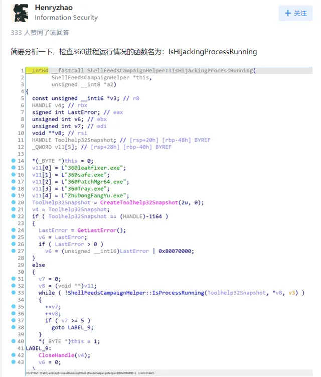 不知道差友们如今另有多少人还在用 Win 10 呢? 前两天 Win10 20H2 的体系更新失事了,不少小同伴更新完之后跑到知乎上大呼: 我桌面呢??? 图片源自知乎 @ 风筝 这些丢了桌面的小同伴一番探索之后发现,本身电脑上的 explorer.exe 步调不见了。 给不知道的小同伴表明一下,在 win11 之前, explorer 这个体系步调总管电脑里的使命栏、桌面、开始菜单、以及文件管理器。 它没了,桌面自然就没了。 再一番追查之后,各人发现这个体系组件居然是被本身装的第三方杀毒软件火绒给杀掉的! 好好的,为啥本来该给体系当保安的火绒会忽然开始反过来攻击 “ 本身人 ” ,把更新之后的体系组件给删了呢? 抱着好奇,世超接着往下翻,看看有没有大佬来分析一下到底是怎么回事。 结果不看没关系,一看更疑惑了——这整个乌龙事故里,不但涉及到刚才我们谈到的主角 Windows 和火绒,竟然另有一个看起来八竿子打不着的 360 。 不知道各人有没有注意过,从 Win 10 开始,底部使命栏默认状态下会有一个搜索框。 显然 Windows 并不满意于使命栏搜索之前的功能,以是在内里参加了不少资讯、爱好类的内容。 360 也看上了使命栏这个 “ 好地段 ” ,强行往使命栏里也塞入了本身的搜索栏。 图片源自知乎@大贤者早春令月 一山肯定不能容二虎,使命栏就这么大, 360 再强插一脚进来很难不出现题目。 据有的小同伴儿说,这两个功能都启用的时间,会有概率死机、瓦解。 Windows 自然不能放着如许的事故不管,但它不知道出于什么缘故原由,没有对 360 重拳出击,反而是出了个补丁,来避让 360 。 根据知乎用户 @Henryzhao 分析, Windows 的这个补丁特地在使命栏里做了一个叫 “ IsHijackingProcessRunning ”( 挟制步调是否运行 )的函数查抄 360 进程运行情况。 各人可以看一下截图中的检测函数代码。 它扫描的 360 Safe 、 ZhuDongFangYu 这些,都是 360 系步调的经典进程。 假如检测到 360 的产物正在运行,就会主动让 Windows 本身的使命栏资讯功能克制工作,也就是代码中的 SellFeedsCampain = 0 。 如许做克制了出现 360 的搜索栏和 Windows 使命栏相互辩论的情况。 但是 Windows 的这段代码,本身就是新参加的内容,实现的又是检测其他进程这么敏感的动作,加上名字里 “ 挟制 ” 这个词听起来也很敏感,全部的因素叠加起来很自然就引起了火绒的注意。 末了的结果就是杀毒软件火绒把 Windows 的这个补丁举动直接当成了病毒来处置惩罚,给杀掉了。 然后各人的桌面就没了。。。 不外火绒这边的动作也非常快,很快就发了公告,更新完特性库了。 以是各人如今可以放心更新体系了。 回过头来看,整个事故无非是 360 想要强行在体系使命栏里贴赚流量,结果和微软自家搞的流量口子辩论了。 微软想着给 360 擦屁股,反而被火绒打了手。 说来也巧,这种体系给应用擦屁股的举动着实并不是第一次出现。 我们各人认识的 iPhone 和微信,也有过这么一档子乐子。 苹果之前就发现,微信的性能监控方案里调用了一个体系功能 API —— stack _ logging _ enable _ logging 。 这个 API 在很早之前的 iOS 版本当中可以启用堆栈日志,但是厥后苹果把这个功能迁徙到了别的 API 上, stack _ logging 这个 API 就没有任何实际意义了。 然而微信的步调员并没有随着苹果在体系中做出的调解来调解本身的代码,仍旧会在微信中调用 stack _ logging 。 结果就导致苹果的遥测背景会收到大量的 “ 无效 API 调用 ” 报错。 固然这个报错不会对 App 的正常使用造成任何影响,但估计全中国 2 亿多的 iPhone 用户都在跟苹果 “ 报错 ” ,把苹果后端的工程师也给看无语了,以是厥后的 iOS 更新当中,又特地把这个 API 作为一个 “ 空壳子 ” 加了返来。。。 这一次,苹果工程师直接把 stack _ logging _ enable _ logging 的解释改成了:这串 API 什么用也没有,鬼知道为什么微信还在调用它。 然后把包罗这个 API 更新的文件定名为了 “make tapi happy”( 让腾讯 API 开心 ) 很显着,这次 Windows 和 360 并没有像苹果和微信一样得到一个 “ 开心 ” 的了局,反而把火绒也卷了进来,闹了一个大笑话。 这内里有两家在碰到辩论的时间,没有沟通好的缘故原由。 假如, Windows 可以或许实时告知 360 并克制它如许的举动,而不是吭哧吭哧地给它打补丁擦屁股。 大概就不会有如许的笑话了。 再退一步,假如 Windows 和 360 都不往使命栏里加搜索、资讯这些牛皮癣一样的内容,题目是不是就在源头办理了呢? |