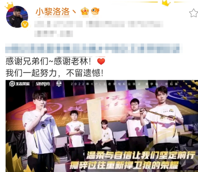 迩来重庆狼队在KPL夏日赛季后赛半决赛的比赛中克服了北京WB战队,在赛后可以看到选手们还黑白常激动和开心的,尤其是狼队小胖,更是直接泪洒现场,对于狼队小胖来说这次的总决赛确实黑白常紧张和关键了,固然其他队友的反应也非常故意思。 起首是狼队刺痛,作为重庆狼队曾经的首发冠军选手,刺痛在本身本事不敷之结果断让位置,没有给队伍带来任何的贫苦,现在也在重庆狼队的台甫单中,看到重庆狼队得胜之后,刺痛也直接表达了本身想要支持狼队的心意,用“带我混个戒指”来表达渴望狼队夺冠的想法。 不得不说,刺痛也算是狼队真正的自家人了,渴望刺痛这次可以大概完成心愿,和狼队一起得到总决赛的戒指吧,而从狼队妖刀的赛后采访和赛后发文可以看到,狼队妖刀着实已经早早的准备好了克服北京WB战队之后的采访,发文险些克隆了赛后采访的原话。 在赛后采访中被英凯问到想要在什么皮肤上署名的时间,妖刀直接体现想要在小章鱼的皮肤上署名,而在发文中也完备表明了缘故因由,狼队妖刀体现本身很喜好“章鱼恶霸”这个称呼,而且体现本身在赛场上就是要做“恶霸”,做队伍的强势继续。 从文本中可以看到,妖刀还黑白常自尊的,但是遐想妖刀的寻常的语气和心情,这么霸气的发生显得有点点可笑了,而帆帆则和狼队小胖是差不多的心态,都是想要证明本身的选手,之前帆帆被讽刺不会玩大乔,以是帆帆就想要在大乔的猫狗日志皮肤中署名证明本身。 而狼队向鱼和黎洛的发言也很真实,狼队向鱼本身在本赛季就有轮换,毕竟轮换就代表着本身自身是有缺陷的,以是狼队向鱼更想要的还是证明本身,没有思考太多皮肤的题目,而狼队黎洛也把本身的职位摆的很端正,本身就是林锻练团队的人,黎洛也单独感谢了林锻练。 个人观点: 总的来说,回首整个夏日赛,狼队打得还黑白常艰巨的,不像是春季赛一样,从通例赛开始就有很强的统治力,但是在艰巨的赛程中,选手的提升黑白常显着的,渴望这次总决赛重庆狼队可以大概战到末了,拿到想要的光彩吧! |