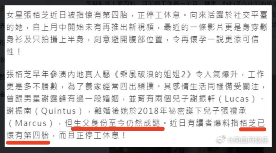 1前几天,看到一个消息。 张柏芝又双叒叕有身了。 凤凰网娱乐发文称,张柏芝听说已怀上第四胎,如今歇工休养一个月。 近期拍摄的视频中,也只袒露上半身,未露腹部。 提抵家里有多少人时,张柏芝没有直接答复。 而是绕着回应:“在香港的全部家人。” 2月15日,港媒接洽张柏芝经纪人。 对方缄默沉静。 没认可,也没否认。 孩子生父是谁? 和之前第三子一样,依然成谜。 消息一出,震惊全网。 有人祝福。 更多人不解。 “为什么不好好搞一下奇迹?” 确实,近十年来,张柏芝的形象一年不如一年。 拍烂片,上综艺,炒作好妈妈人设,三胎父亲成谜更是把她的“疯”拔到制高点。 她的公众形象,早已不复当年。 于是有人遗憾和痛惜。 但我们忘记了,张柏芝人生空想,一是做个好演员,二是生很多孩子。 而在这两者上,她好像都做到了。 2二十年前,张柏芝出道。 颜值惊艳四方。 厥后虽操行争议,但在演出上,却拿到了扎踏实实的奖项。 2004年。 她两部影戏入围金像奖,末了凭《忘不了》封后。 而在生子上,她不绝有着偏执的向往。 她曾经说:男子劈叉是很正常的事。 “不外遇的男子是白痴。” 但她不担心。说男子脱离自己是他们的丧失。 每次走了之后才发现自己的好。 断言“男子就是犯贱。” 她要的是什么? 要小孩。 要帅。 要有钱。 她说过,一生只会做两件事:演戏和当妈妈。 如今只剩下一件。 2018年,她生下第三胎。 孩子生父成谜。 她曾说:“我是喜欢小孩才想完婚。” 老公外遇也没关系,“小孩留给我就ok了。” 蔡康永惊奇,“意思是他是个种猪?” 张柏芝颔首。 厥后,她的选择,也险些是按着自己的想法来实行的。 嫁了超等帅的谢霆锋。 有了很多钱。 固然离了婚,但孩子归自己。 她得到了自己想要的,但也付出了极重的代价。 这个代价一是名声,二是奇迹。 3生完第三子后,张柏芝曾试图复出。 风光大不如前。 与小沈阳互助《河东狮吼2》,豆瓣3.3分。 拍《杨门女将》,被郑佩佩品评。 “工作态度不好,给我们香港演员丢脸。” 断港绝潢时,找上了前东家向太。 向太把她先容到《3D封神》演哪吒。 几个月后又把她踢出剧组。 放话“永不互助”。 向华强说,天天都接到监制的投诉电话。 “从前工作不好的态度变本加厉。” 向太也跟着爆料,说张柏芝与刘德华拍《大只佬》。 刘德华在上面吊威亚,她在下面打电话买包。 这件事刘德华也说过,只是没有指名道姓。 演技降落,张柏芝扎入综艺圈。 光是2016年,她就到场了11档综艺。 但真人秀并没有令她翻身。 反而加速翻车。 网友发现,张柏芝大话连篇。 说自己拍戏三个月不睡觉。 简直是逾越人体极限。 从来不吃肉。 现实上微博晒过早餐。 肉片照旧很好认的。 最经典的莫过于在《天天向上》。 说两个儿子的早餐都是自己做的。 被大张伟较真,“那分别喜欢什么菜?” 穷追猛打下,才憋出一句。 大儿子吃米饭,小儿子吃汉堡。 瞬间全网群嘲。 立人设。 撒谎精。 昔日女神拽下神坛。 于是,各人扫兴地发现,天赋与仙颜是罩在她身上的薄纱。揭开之后,是浮浅是无知,是矫揉造作的博人眼球。 还记恰当年《笑剧之王》里。 柳飘飘在车上抱书痛哭的经典画面。 感染力惊人。 2018年,她演《假如,爱》。 一场哭戏,哀嚎半天,愣是没有挤出半滴眼泪。 网友们直呼,柳飘飘回不来了。 奇迹上的消灭,没能反抗住她的生养欲望。 她从小缺爱,心田空虚。像海中流落的溺水人,捉住一根浮木便冒死往上爬。 她一生再生。 固然养育方式,不绝备受质疑。 好比2017年,大儿子lucas生日。 她全程直播。 过后媒体把焦点放在“谢霆锋未出席”,“张柏芝记恨王菲”等话题上。 张柏芝二话不说。 拉上儿子录了一段视频。 不绝让他重复答复:“是不是至心祝福?是不是?” 儿子只有无奈共同。 是疯狂?照旧作秀?不得而知。 但被摆到台面上的小孩,何其无辜。 假如能好好对待孩子,又有充足的养育资金,和充足的生养欲望,去不绝生殖,着实也是选择的一种。 固然生养代价极重。 固然陪同孩子发展压力山大。 但一个母亲确定要,也有资源要,作为路人,我们也恭敬。 说到底,真正的自由,不光指有不生的自由,也有不绝去生的自由。 从这个意义上说,我们可以议论张柏芝。 但叱责谴责或讽刺大可不必。 恭敬个人运气,明确个人选择。 只盼望,假如有一天她生够了,想重新归来,粉丝尚有充足的耐烦、观众尚有充足的爱好在期待她。 |