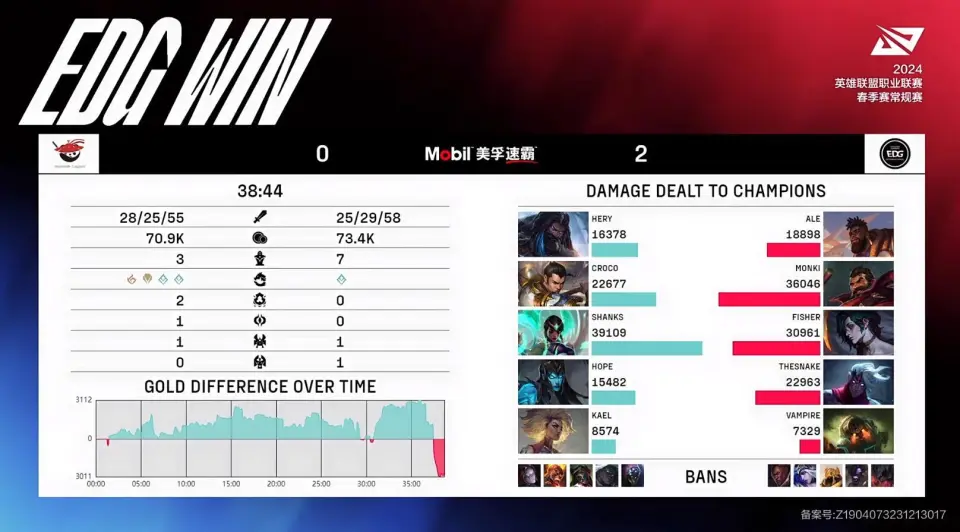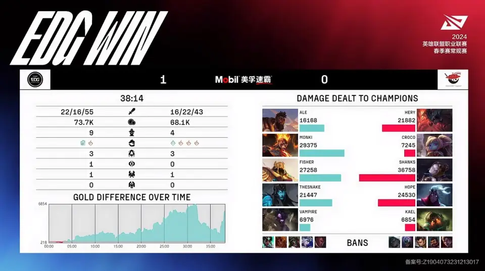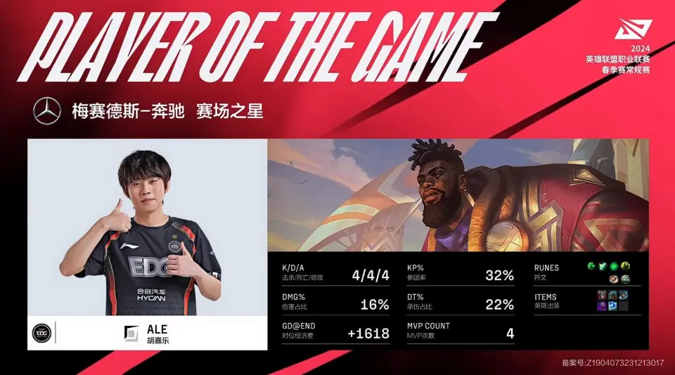 2024年2月25日,LPL春季赛第附近末了一个角逐日,EDG对阵AL。赛前EDG已经是遭遇了7连败,在加上Jiejie场外不测受伤,间隔0-16不胜竣事赛季已经不远了,AL本赛季引入了前WE双C后战绩有了显着转机,赛前拿到5胜2负的战绩位列积分榜第六,EDG想要击败AL取得赛季首胜难度还是比力大的。 但不意EDG在本场角逐发作了小宇宙,Ale两场奎桑提砍下二连MVP,EDG一连两场完成翻盘,不可思议的拿下了赛季首胜。 首局EDG拿了一套偏保排的体系,第二轮锁下火男打野,双AP中野比力难威胁到发条,先手本事也比力有限。AL阵容更加主动,对线期三路都会更好打一些,波比有机遇依赖线权在野区完成对火男的压抑。 4分钟下路3V3,固然波比先手壁咚到火男,但还是让Monki交出闪现打出全套技能,卡莉斯塔砍下双杀,EDG打出1换2,在下半区打出了上风,后续又完成了线杀控下小龙。 但EDG很快便将上风送了归去,14分钟下河流团战,Thesnake闪现贴剑魔脸想收残血,被Hery直接三刀吸满完成反杀,AL打出1换3。 后续的团战Hery剑魔太想绕后了,一连给到EDG机遇,Ale奎桑提主宰团战资助EDG劳绩多波团战小胜,经济差也是一度拉开到了7K。 32分钟风云突变,EDG在上风之下大龙逼团,牛头硬开对AL毫无威胁,维鲁斯反手大招共同发条大招直接拉死火男,AL打出0换3吃大龙,将经济差追到只差3K,后续的龙魂团EDG被打出1换2,AL吃下火龙魂,上风已经来到了AL手上! 37分钟局面再一次逆转,Shanks发条在非常伤害的位置回城白给,Ale奎桑提断后顶回AL三人,EDG打出0换3直接一波竣事角逐。 赛后数据,EDG固然全程保持经济领先,但在丢了火龙魂后一度让人想起了EDG本赛季多次被翻盘的回想,但幸亏还是Shanks抬了一手,非常离谱的回城位置白给,直接送掉了角逐。 MVP再度给到了Ale,EDG赛季三个小胜场,Ale包办三场MVP。 第二局AL拿了一套奥特曼阵容,前中期必要打出比力大的上风,阵容后期上限偏低,EDG则是在末了一手给Monki锁下野核男枪。 角逐开局EDG下野辅三个人便埋进了AL野区,但却被AL敏锐的发觉,Call来乌迪尔后打出1换2,4分钟下路发作4V4,固然AL先手击杀了泰坦,但慧的增援闪现打出一整套AOE资助队伍打出1换3前将局面扳回。 今后男枪带队一连在下路搞事,固然人头亏了,但气魄出来了。13分钟小龙团,Hery乌迪尔绕后搅翻EDG后排,带队打出1换3吃小龙扩大经济领先。 20分钟小龙团,双方经典赛马空掉了非常多的技能,Hery乌迪尔再次绕后进场打残了EDG多人,但Kael闪现撞墙Q空,追击战中慧的反手把AL拉扯麻了,龙坑附近Ale单杀了赵信拖住AL中辅非常多的时间,终极EDG2换3吃小龙,将局面咬住了。 今后AL多次逼大龙,却在有卡莉斯塔的环境下没有打到底而是选择去开团,错失了太多次一锤定音的机遇,终极固然AL在28分半拿下大龙,但却被EDG打出惨胜,还被破掉中路高地。 31分钟龙魂团,AL打出0换3吃下电龙魂,局面好像又一次倒向了AL。然而局面很快再一次迎来逆转,Ale抓到机遇大招将乌迪尔带回,EDG拿到人数上风吃下大龙,随后的太古龙团率先处置处罚好兵线的EDG占住龙坑,赵信进场拼惩失败,EDG顺势追击打出0换4,但Shanks背靠门牙塔打出了惊人的伤害,险些制止EDG一波竣事角逐,但终极还是棋差一着。 赛后数据,固然Shanks送出全场最高输出,AL也险些全场保持领先,但他们在大龙坑附近错过了太多一锤定音的机遇,后期男枪乐成发力,EDG不可思议的翻盘取胜。 MVP再次给到了Ale。 |